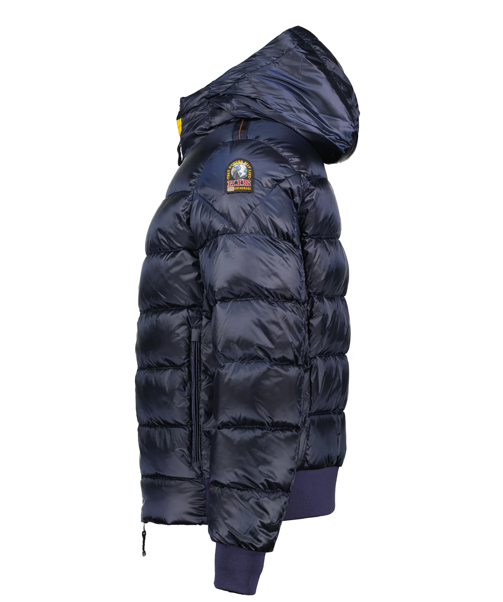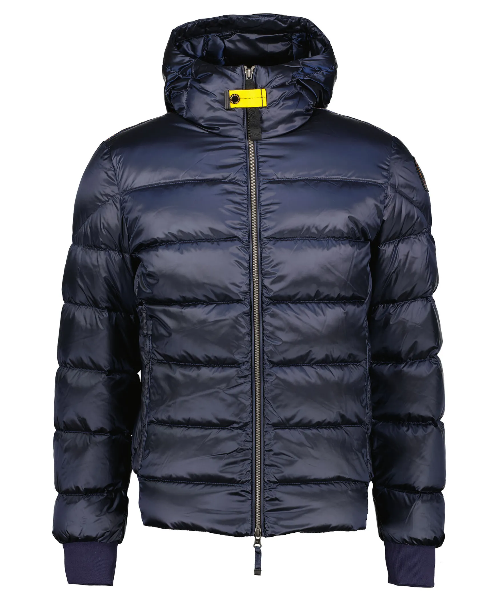 Marinbla Jacka Med Huva Fran Parajumpers. Tillverkad I Glansande Nylon-Polyestertwill. Jackan Stangs Med Tvavagsdragkedja Och Har En Patch-Logotyp Pa Vanster Arm. Tva Dragkedjefickor Pa Utsidan Och Tva Fickor Pa Insidan. Pharrell-Jackan Ar En Superlatt Pufferjacka. Cool, Praktisk, Evig.