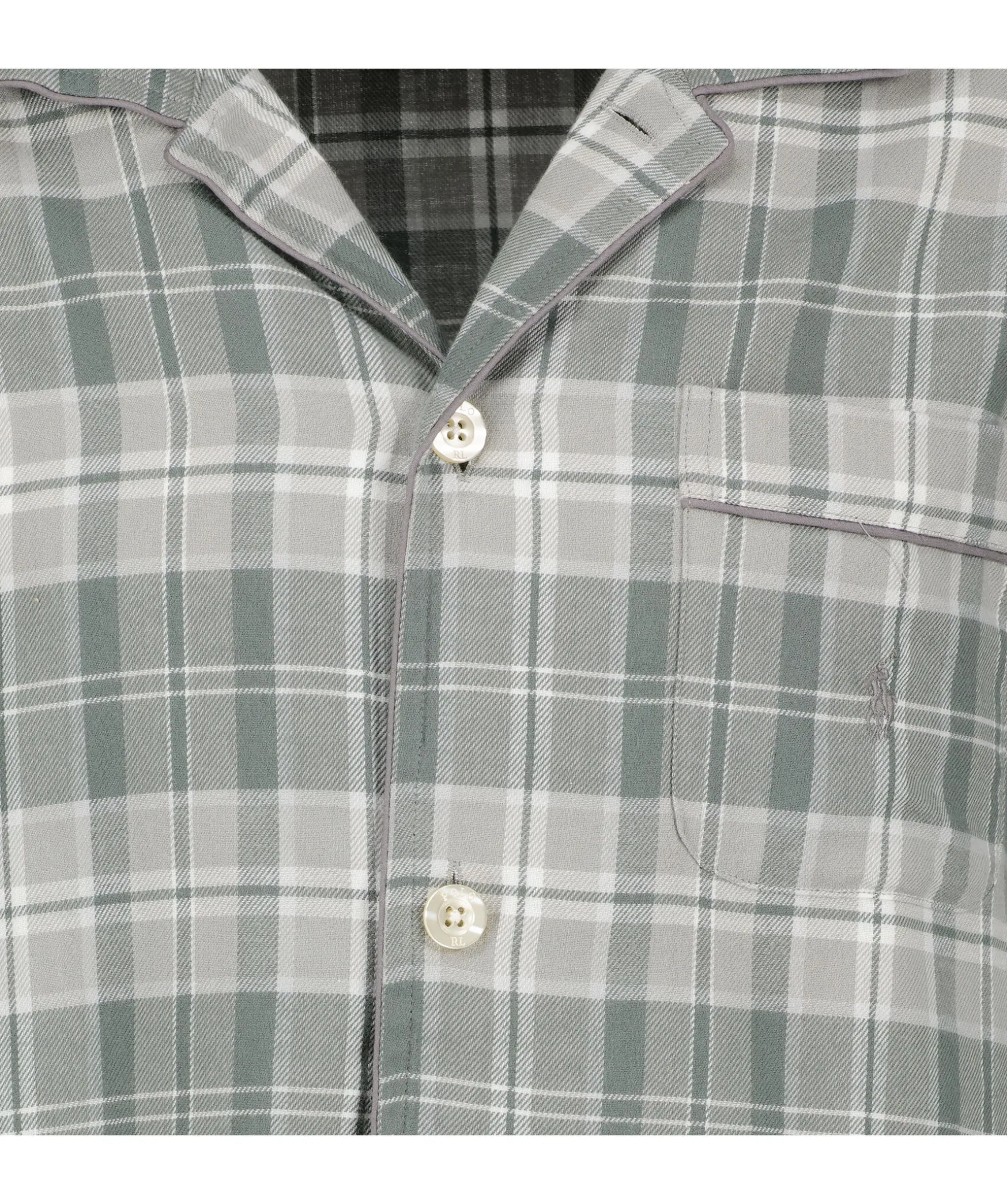 Gra Rutigt Pyjamas Set Fran Polo Ralph Lauren. Skjortan Har En Brostficka Och Stangs Med Knappning. Byxorna Har Resar Och Snorning I Midjan Samt Tva Sidfickor. Tillverkade I 100% Bomull.