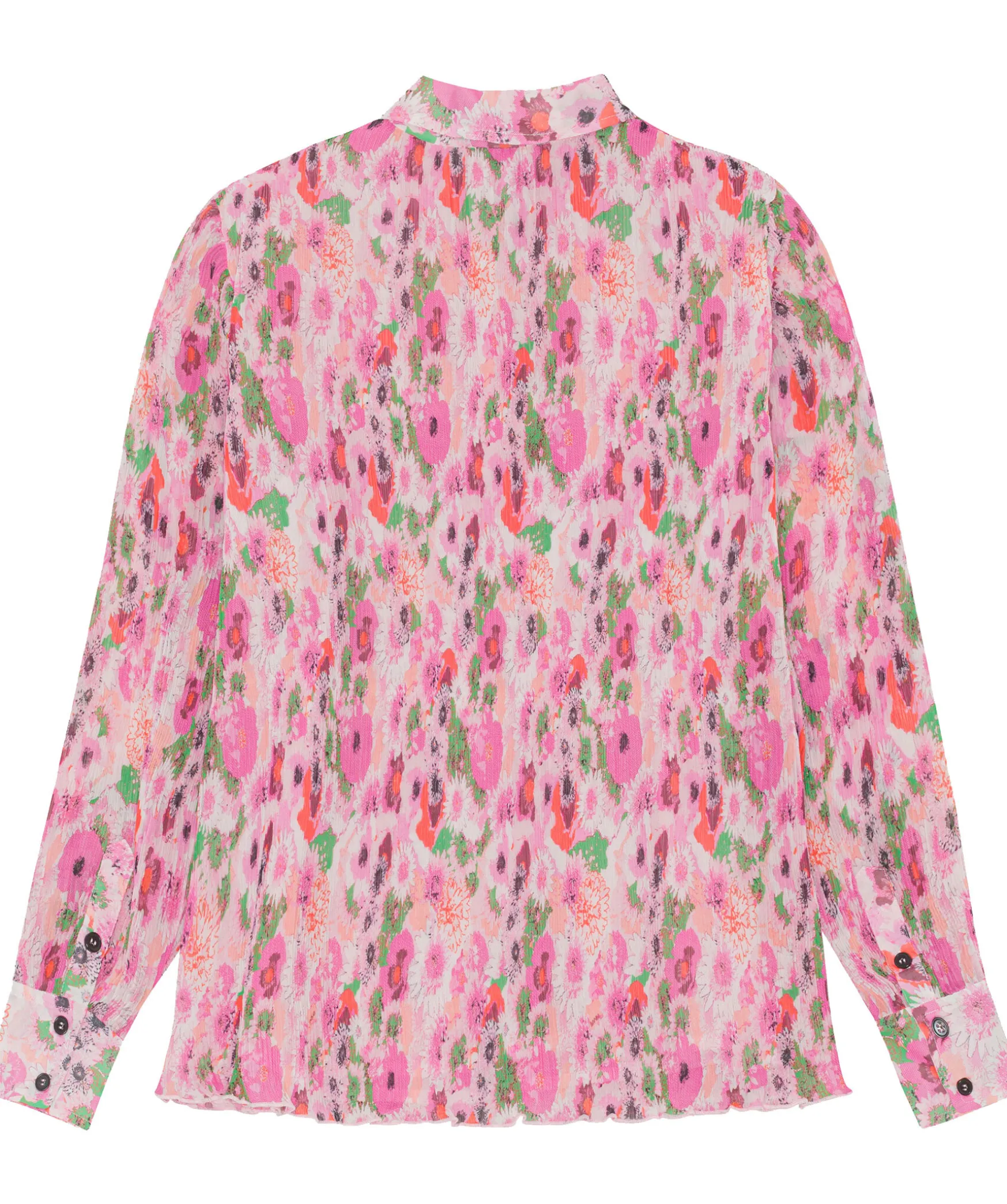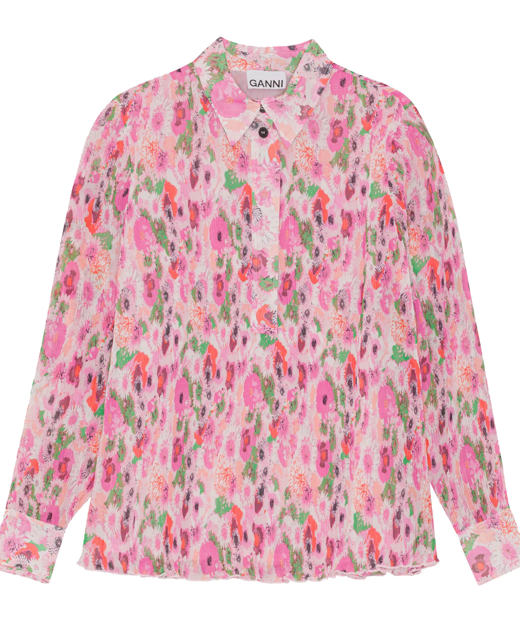 Rosa, Multifargad Monstrad Plisserad Blus Fran Ganni. Blusen Har En Avslappnad Passform. Spetsig Krage, Manschetter Vid Armslut. Fall Med Volang.