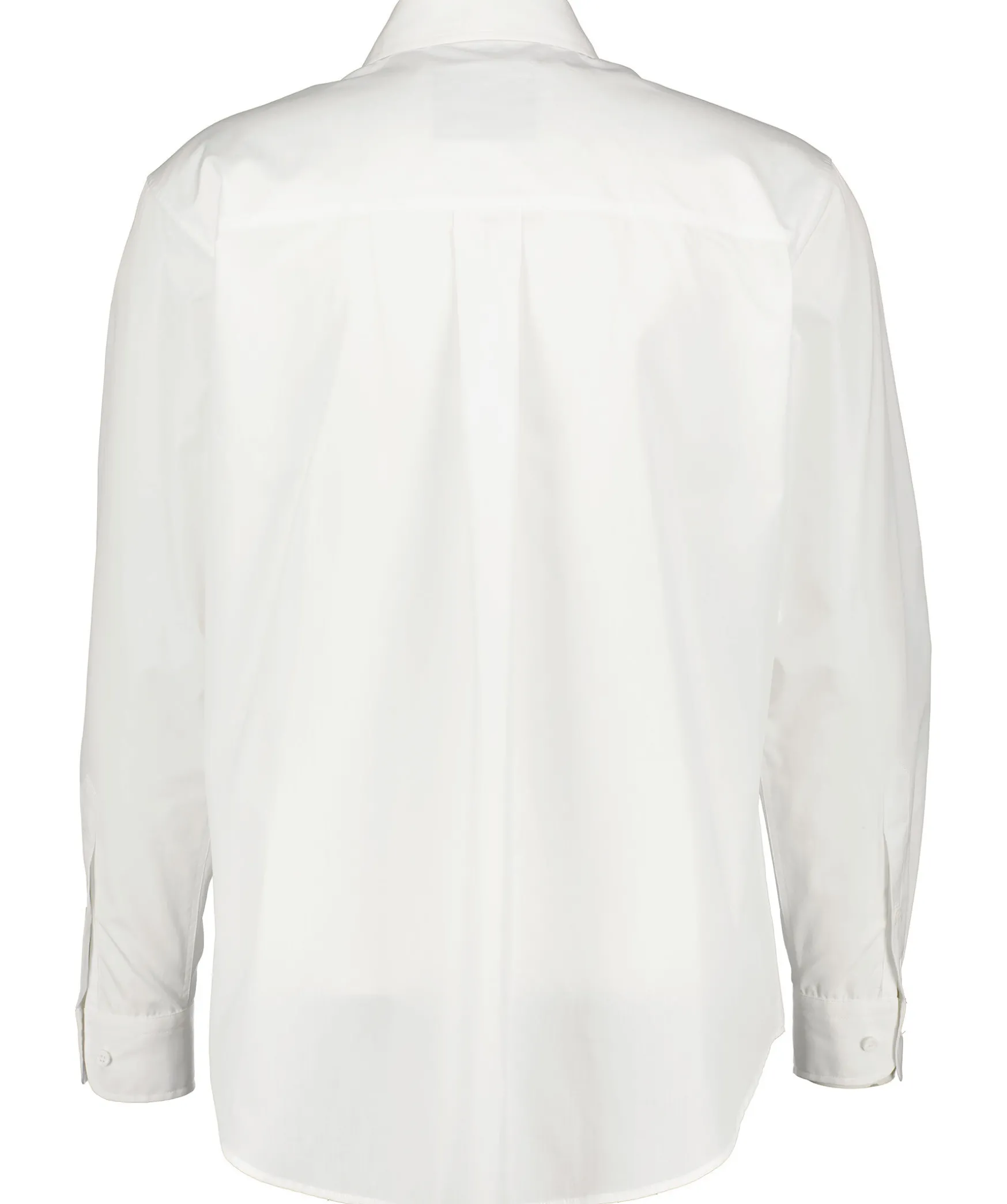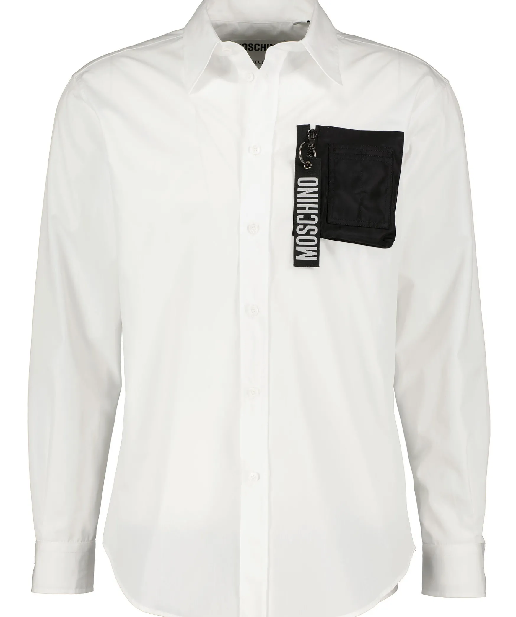 Vit Skjorta I Regular Fit Fran Moschino. Spetsig Krage, Vita Knappar Fram Och I Armslut Samt En Svart Ficka Med Dragkedja Och Flarp Med Logotyp Pa Vanster Sida Pa Brostet. Tillverkad I 100% Bomull.