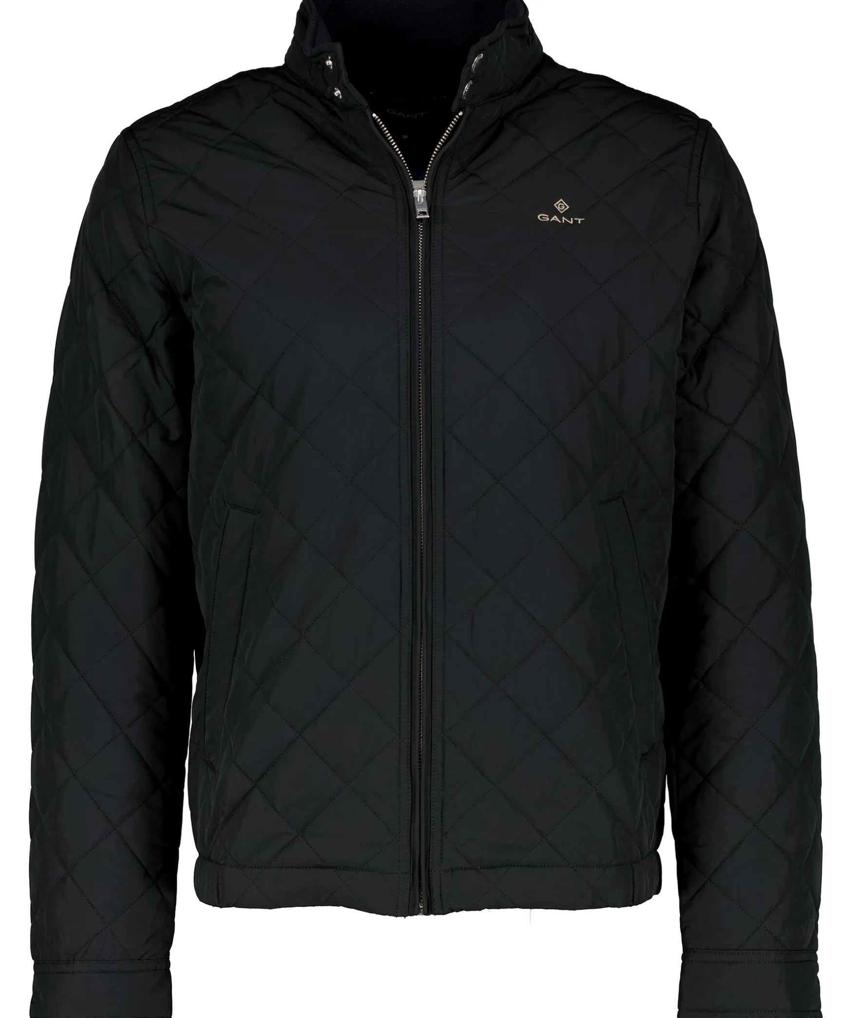 Svart Quiltad Jacka I 100% Polyester Fran Gant. Fodrad I Polyester Och Har En Hog Krage Krage Med Tva Tryckknappar. Tva Fickor Fram Med Tryckknapp, Diskret Logga Broderad Pa Vanster Sida Av Brostet Och Har En Innerficka Med Dragkedja. Tryckknappar I Armslut Och Stangs Med Dragkedja Fram.