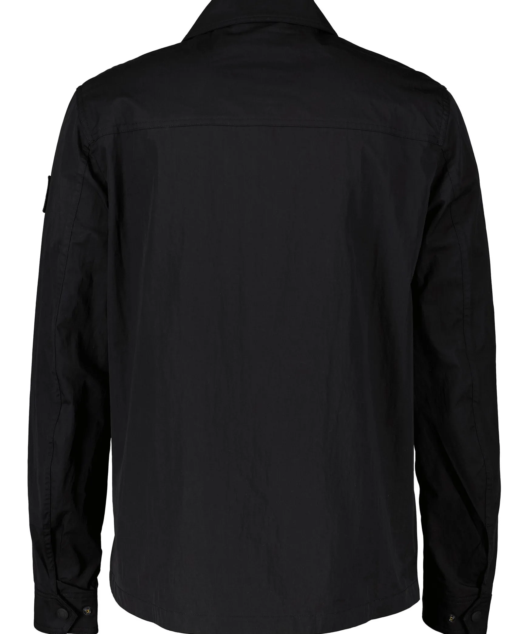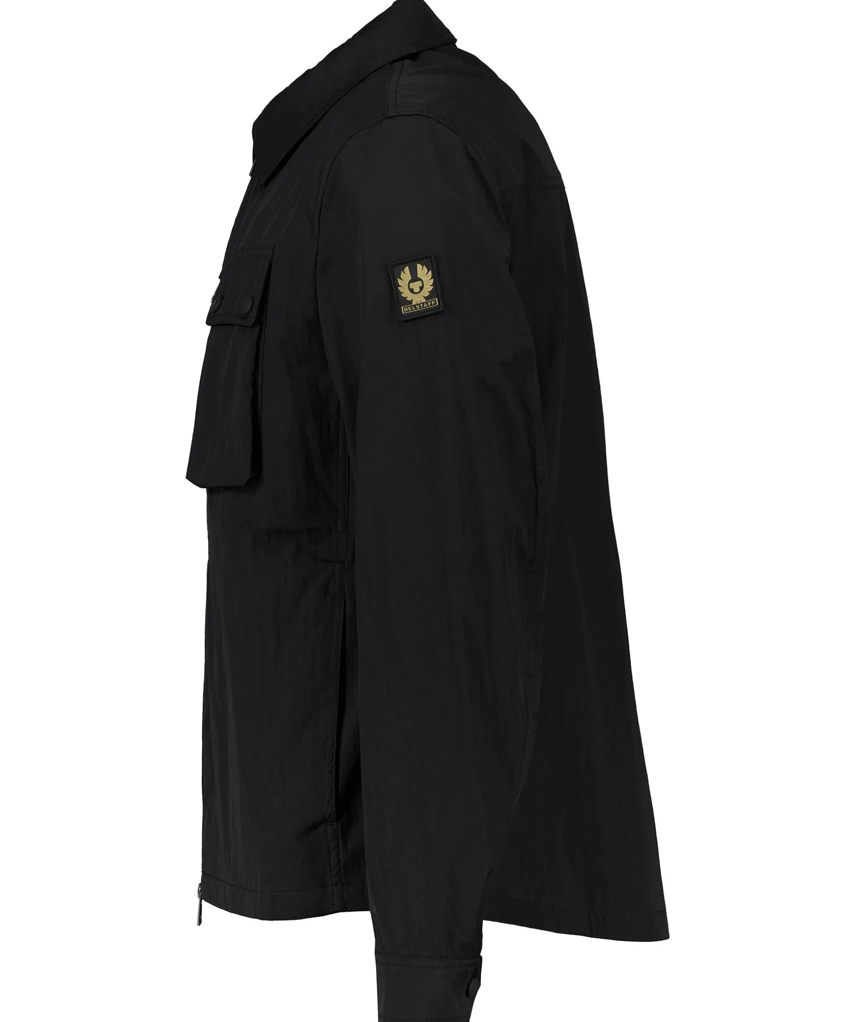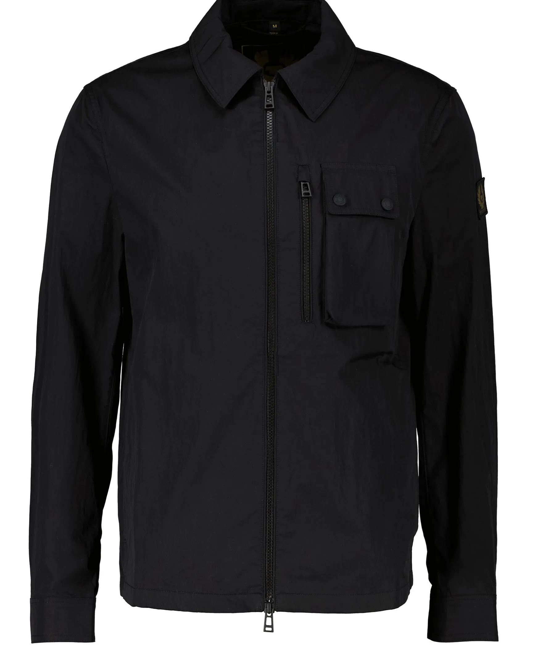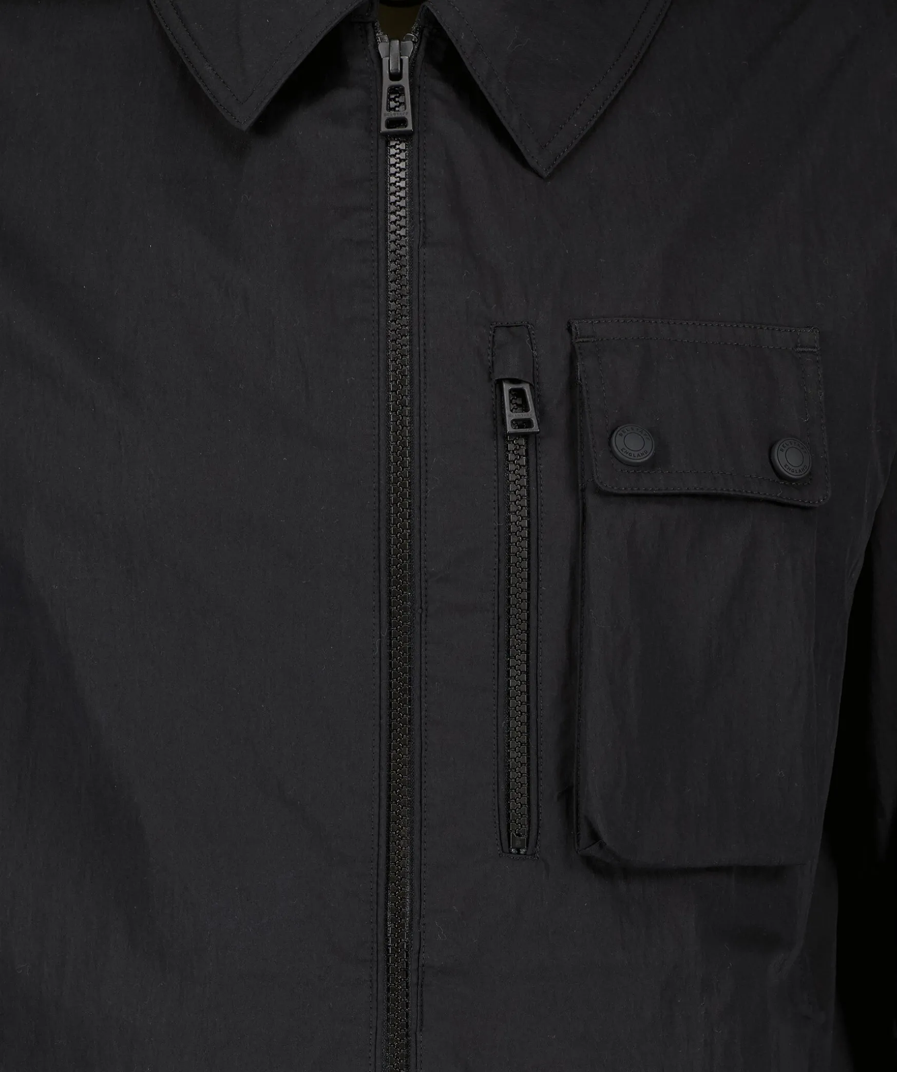 Svart Overshirt Fran Belstaff. En Lattsam Gabardinjacka I Bomull. Dess Skrynkliga Yta Och Matta Gummilister Refererar Till Nautiska Texturer, Och Ventiler Under Armarna Haller Det Luftigt. Tvavags Dragkedja Framtill. Fickor Med Dragkedja Och Knappning Pa Brostet. Logotyp Patch Pa Armen Samt Tva Sidfickor.
