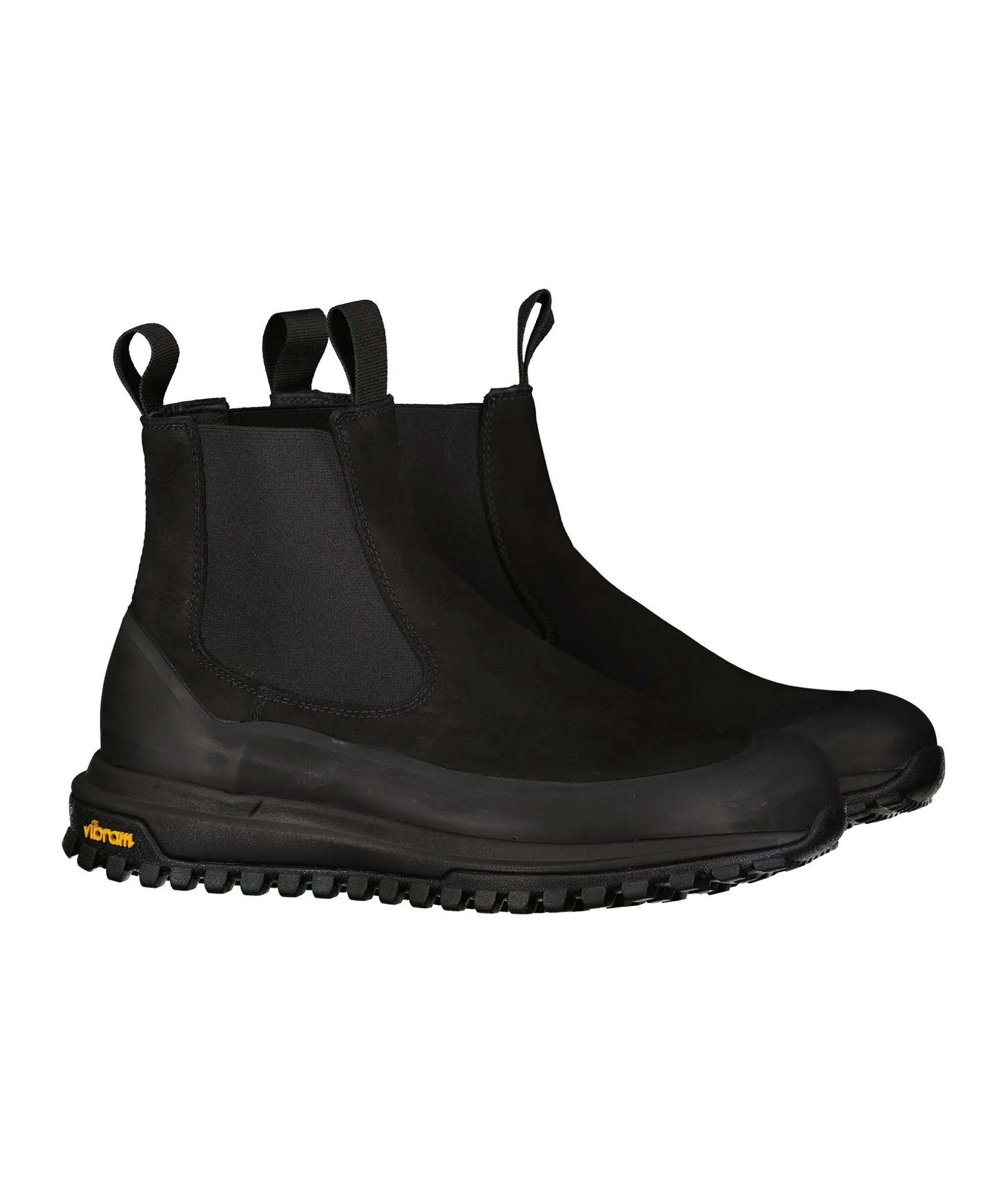 Svarta Chelsea Boots I Mocka Fran Diemme. Greppvanliga Och Extra Slitstarka Latta Vibram-Gummisulor. Gummerad Kant Som Gar En Bit Upp Over Skon Nedtill Sa Skorna Haller Sig Torra. Skorna Ar En Halv Storlek Storre Sa Ar Du Mellan Storlekar Ta En Mindre Om Du Vill Ha En Tajtare Passform.