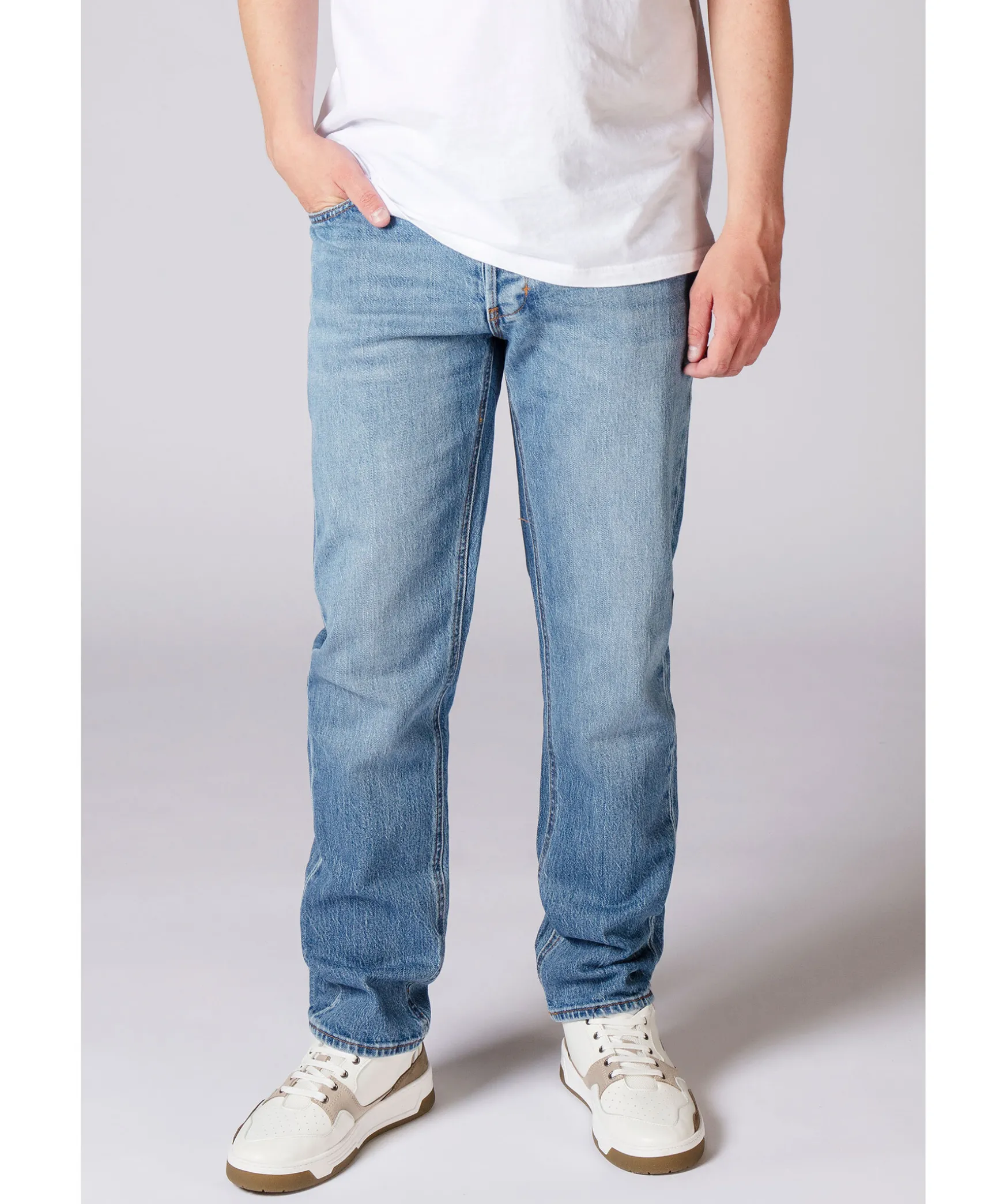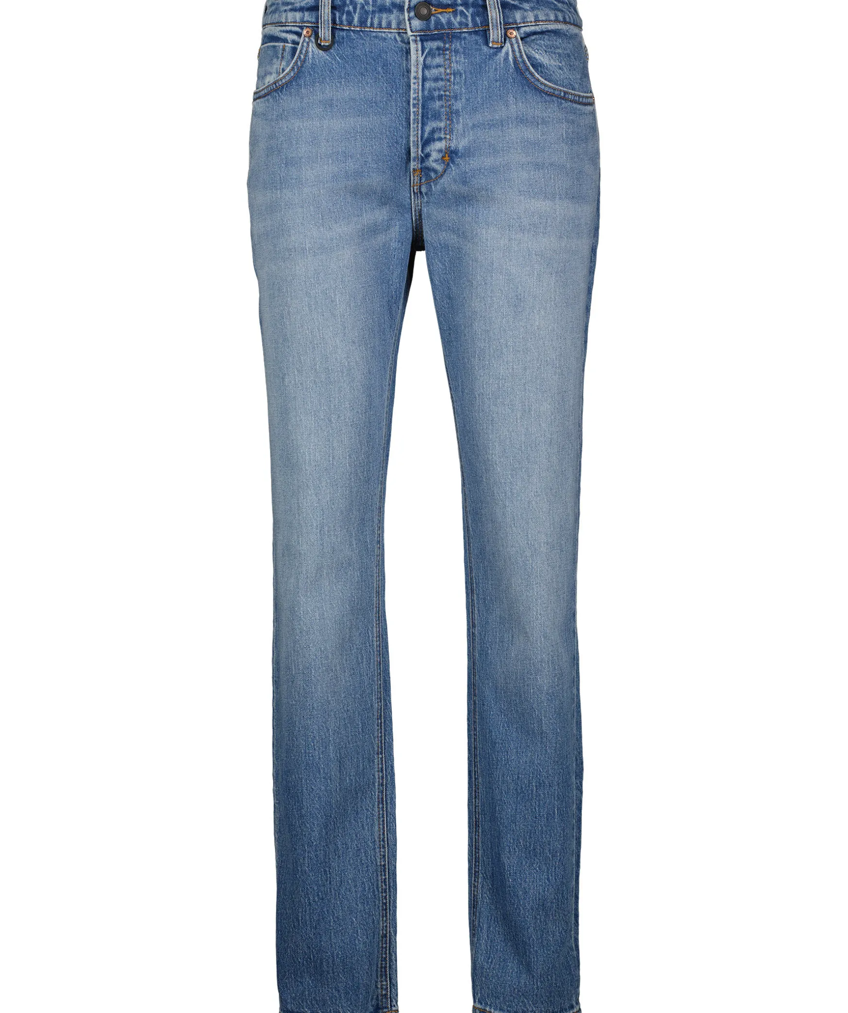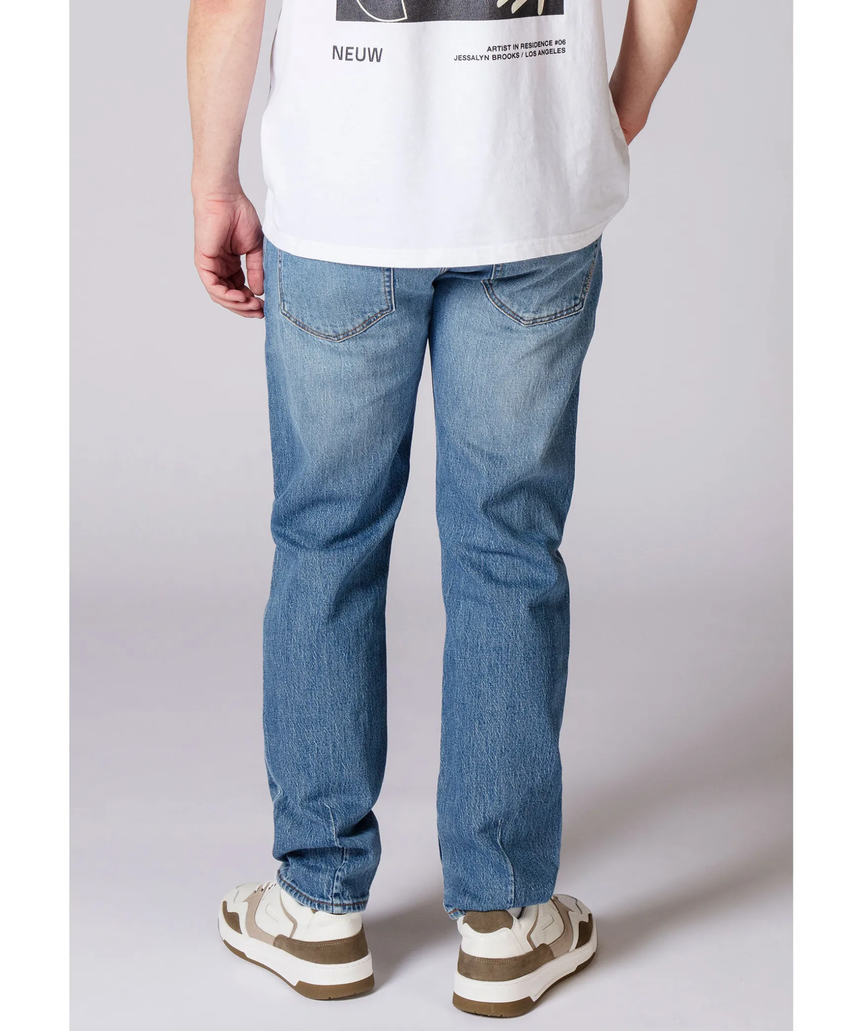Blaa Jeans Med Avsmalnande Ben Fran Neuw. Stretchjeans I Femficksmodell Och Hallor For Balte I Midjan.Ben Som Gradvis Smalnar Av Nar Det Nar Ankeln. Modellen Har Pa Sig 180Cm Lang Och Har Pa Sig Storlek 32″32.