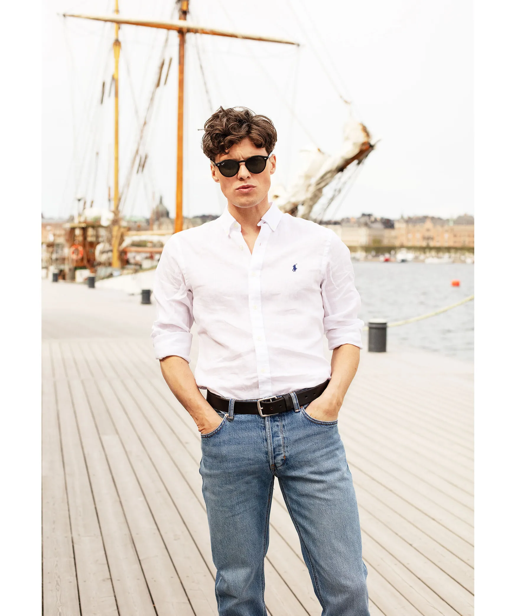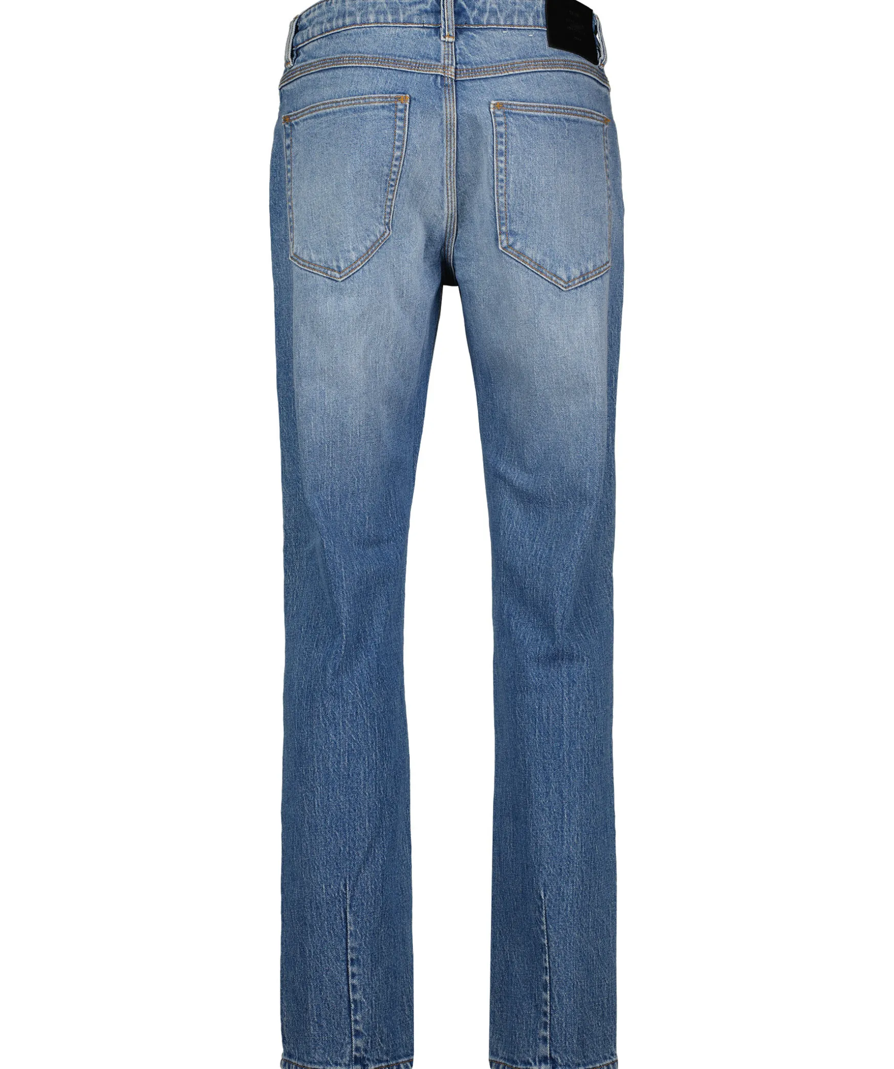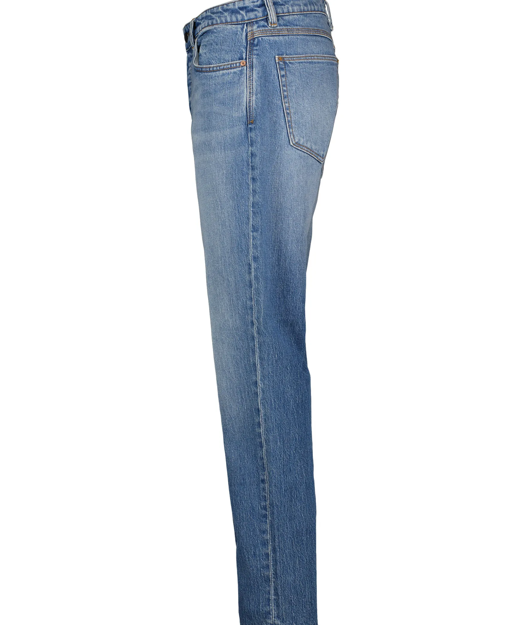 Blaa Jeans Med Avsmalnande Ben Fran Neuw. Stretchjeans I Femficksmodell Och Hallor For Balte I Midjan.Ben Som Gradvis Smalnar Av Nar Det Nar Ankeln. Modellen Har Pa Sig 180Cm Lang Och Har Pa Sig Storlek 32″32.