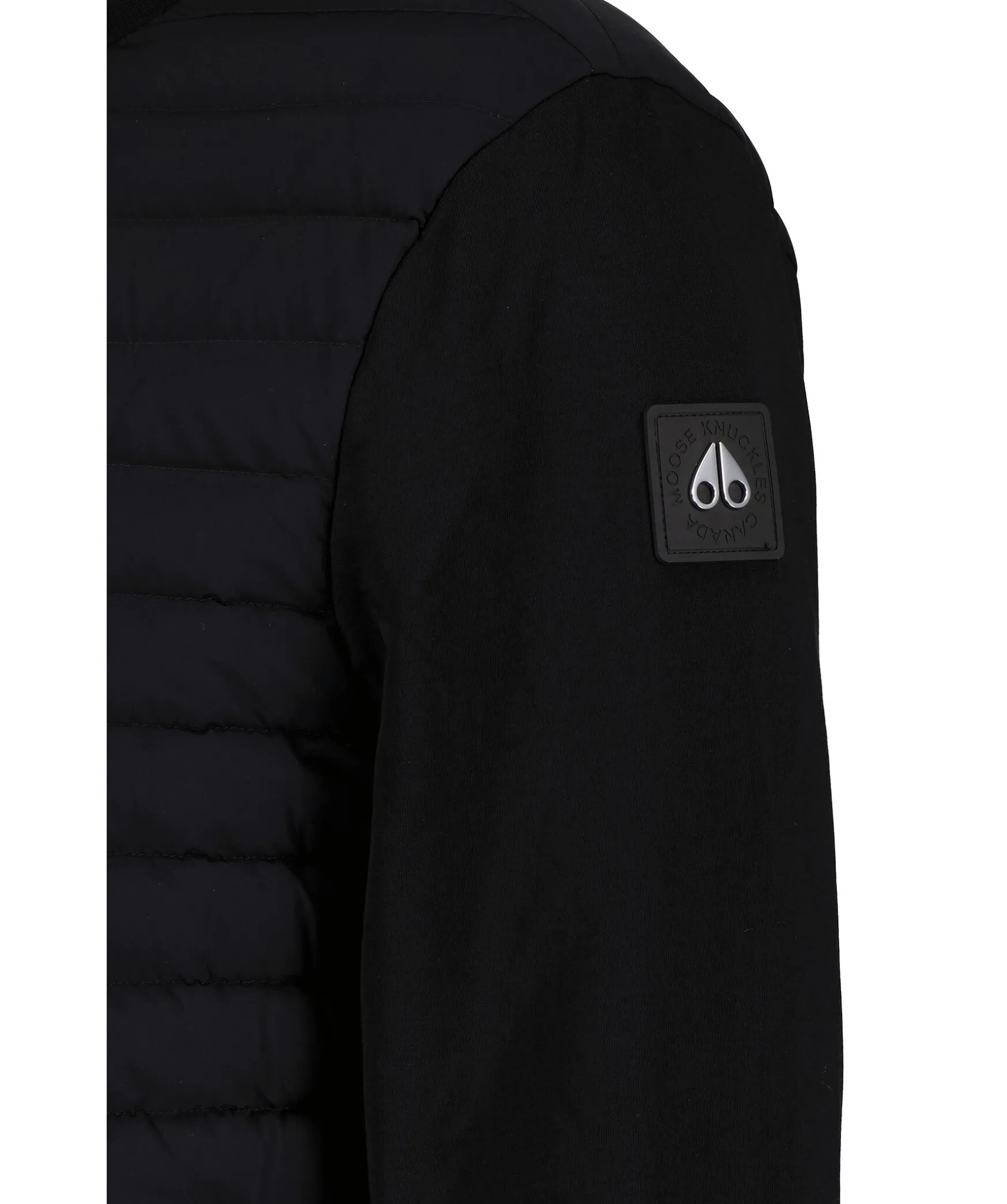 Svart Hybrid Jacka Fran Moose Knuckles. Quiltad Dunfylld Panel Pa Jackans Framsida Och Over Axlarna Pa Jackans Baksida. Tva Fickor Framtill Som Stangs Med Dragkedja. Gummerad Patch Med Logotyp I Metall Pa Vanster Arm. Mudd Vid Armslut.