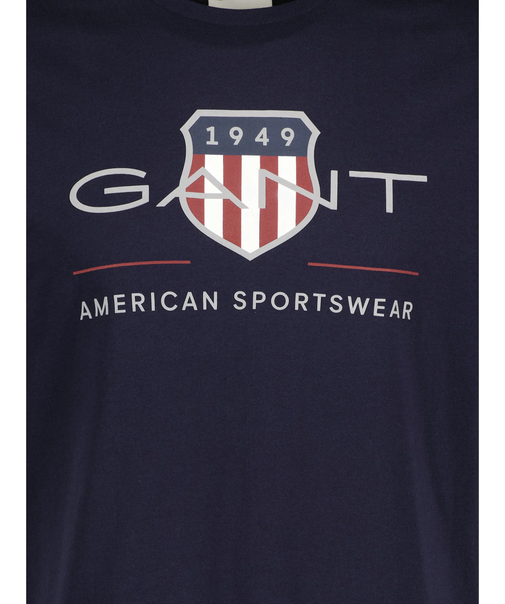 Morkbla T-Shirt I Stretchig Bomull Fran Gant. Rund Halsringning Och Rak Modell. Tryckt Logotyp Och Skold Mitt Pa Brostet. Tillverkad I 100% Bomull.