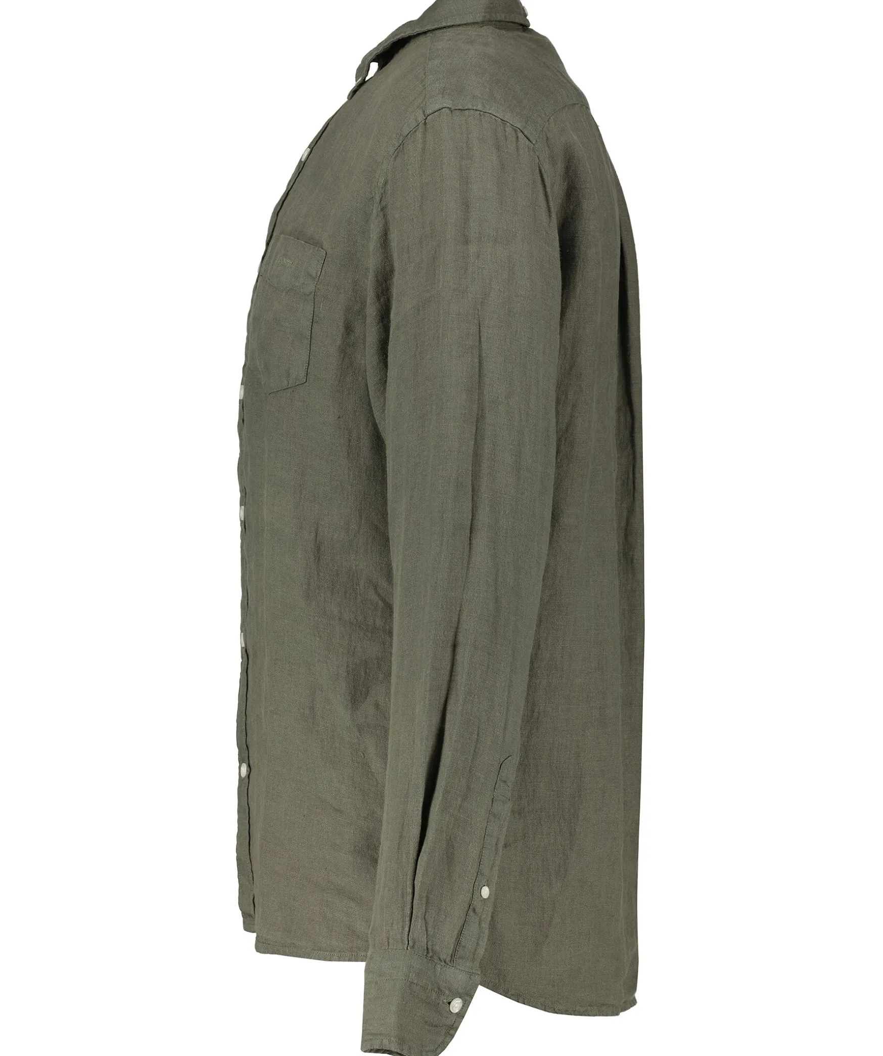Skogsgron Skjorta I Regular Fit Fran Gant. Tillverkad 100% Linnetyg. Har Vita Knappar Hela Vagen Fram, Button Down Krage Och Dubbla Manschetter. Liten Broderad Logotyp Pa Vanster Brost.