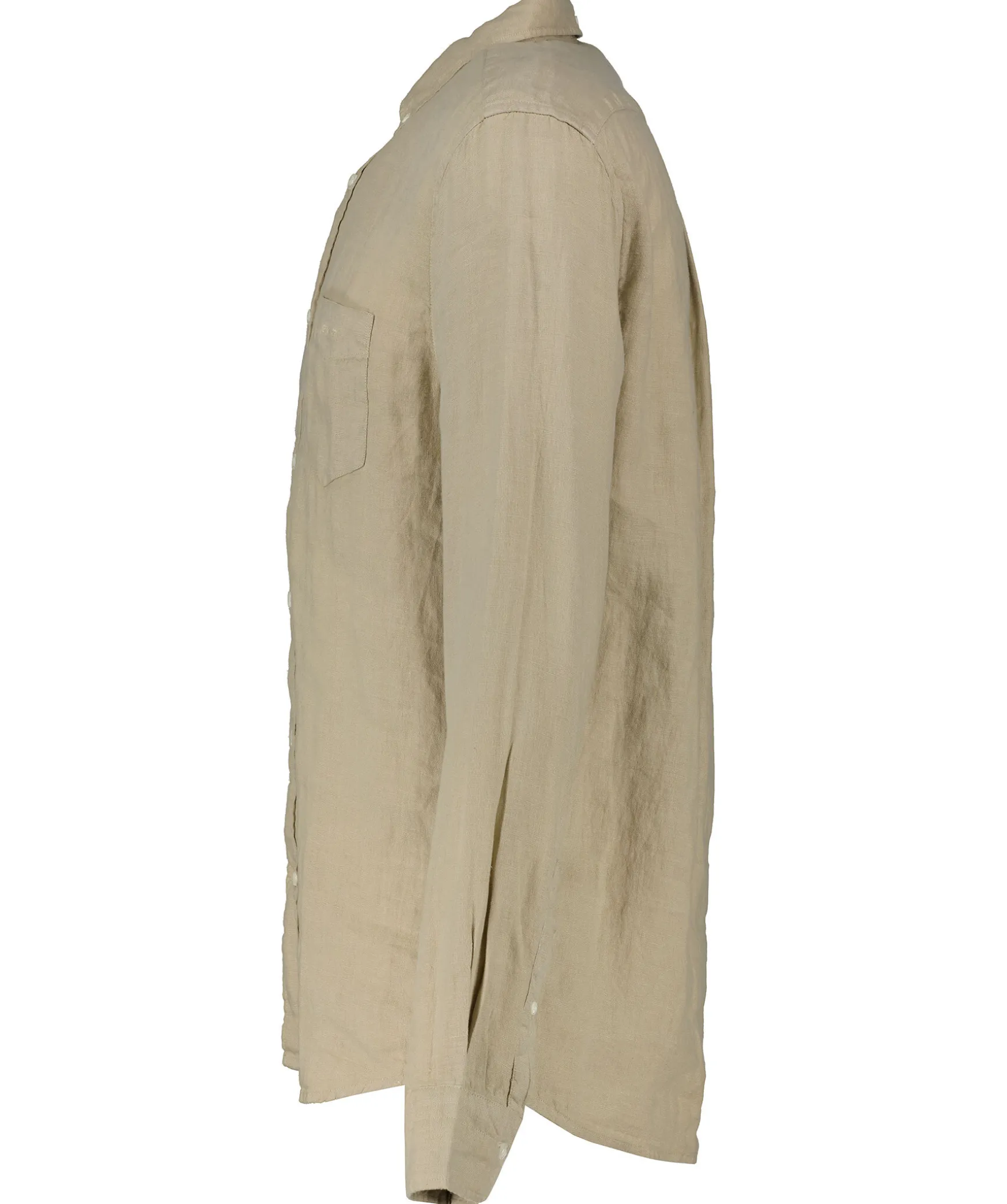 Beige Skjorta I Regular Fit Fran Gant. Tillverkad 100% Linnetyg. Har Vita Knappar Hela Vagen Fram, Button Down Krage Och Dubbla Manschetter. Liten Broderad Logotyp Pa Vanster Brost.