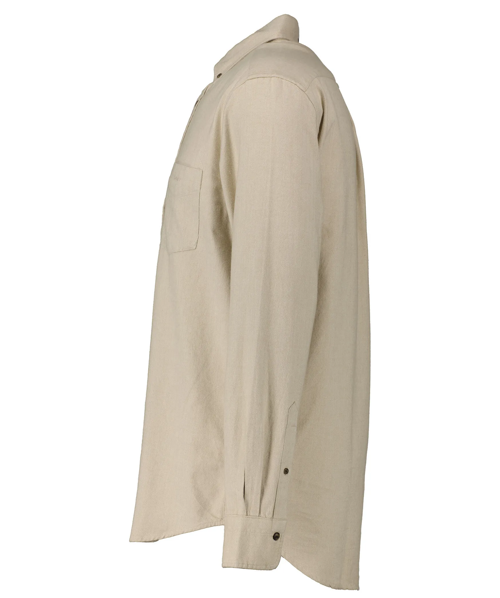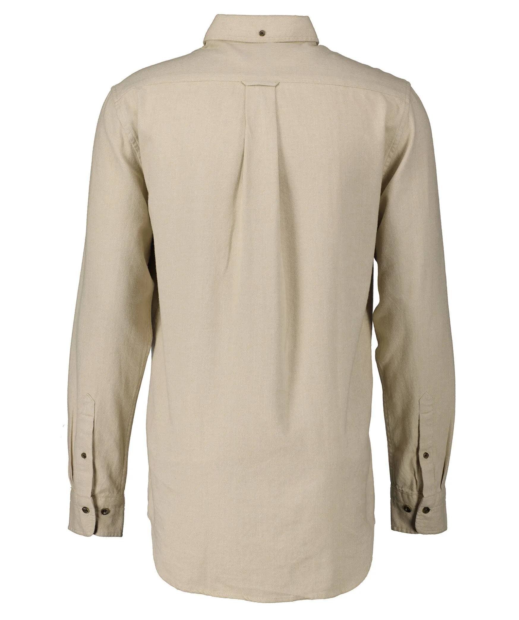 Beige Fiskbensmonstrad Flanellskjorta Fran Gant. Brostficka Pa Vanster Sida Med Broderad Logotyp. Enkla Manschetter. Button Down-Krage. Tillverkad I 100% Bomull. Boxpleat Med Locker Loop I Ryggen.