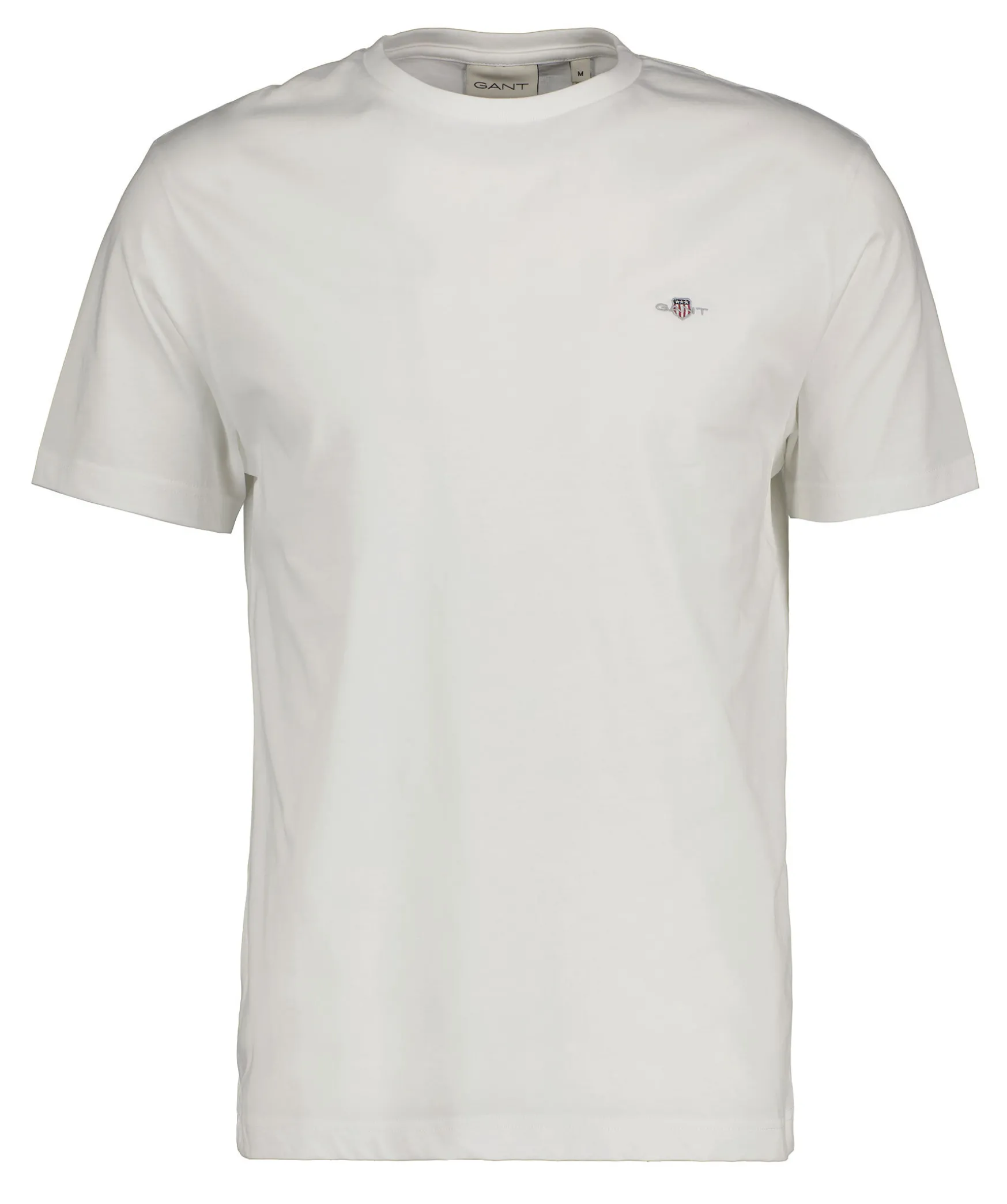 Vit T-Shirt Med En Liten Skoldlogotyp Broderad Pa Brostet Fran Gant. Tillverkad I Bomull Med En Fin Ribbstickning I Halsringningen For Ultimat Komfort. Ett Fantastiskt Basplagg Du Kan Anvanda Separat Eller Under En Stickad Troja, Jacka Eller Matcha Med Jeans, Chinos Eller Shorts.