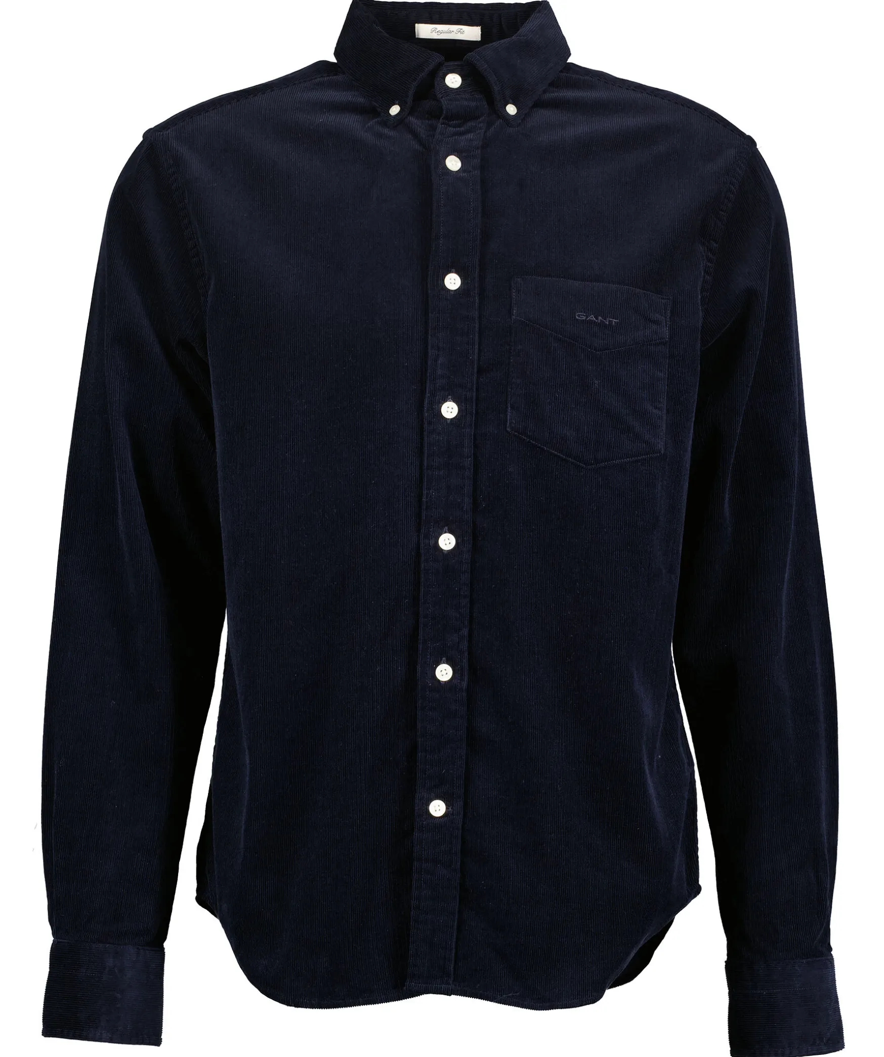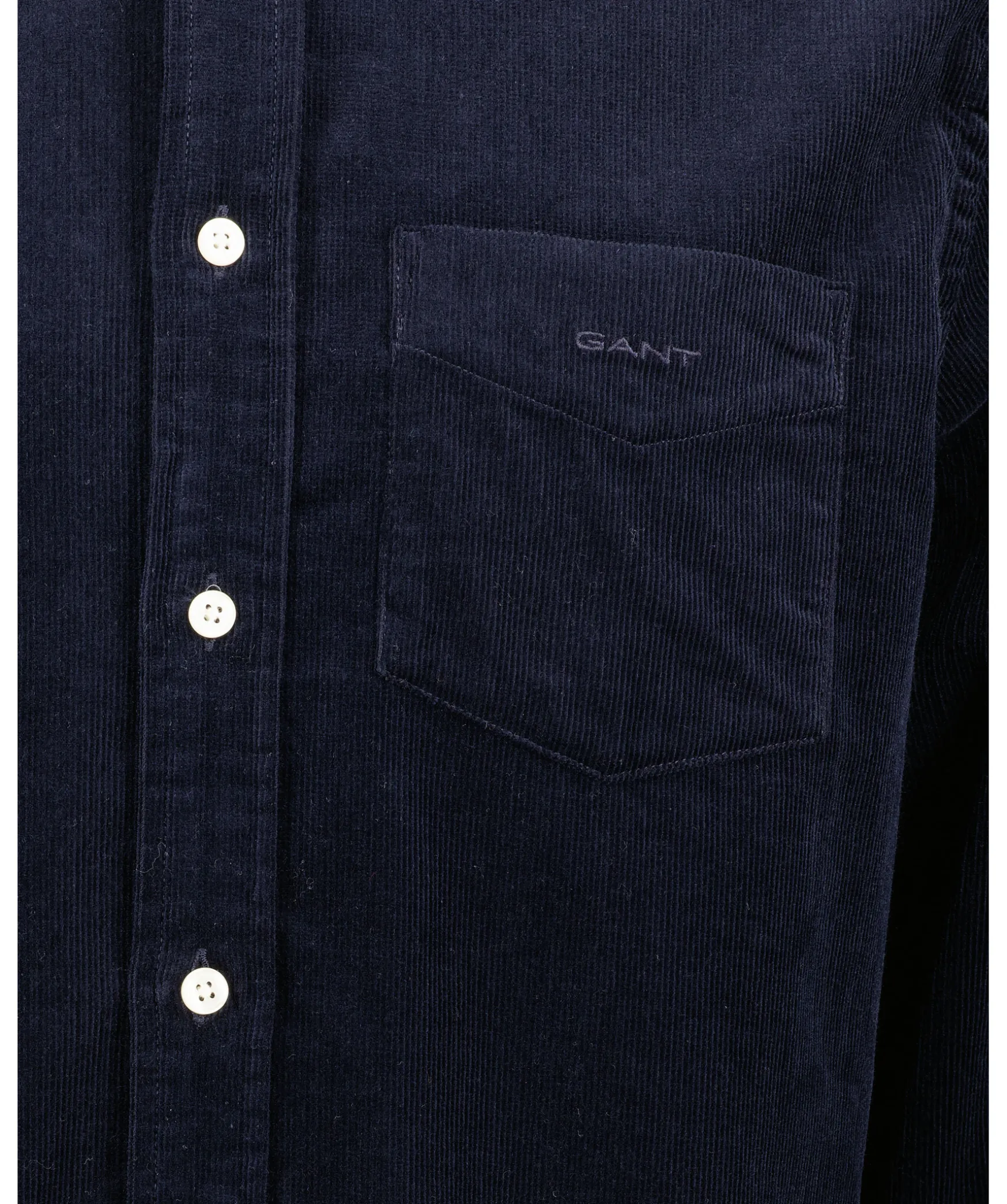 Morkbla Skjorta I Manchester Fran Gant. Brostficka Med Broderad Ton-I-Ton Logotyp. Button Down Krage Med Vita Knappar. Tillverkad I 100% Bomull.