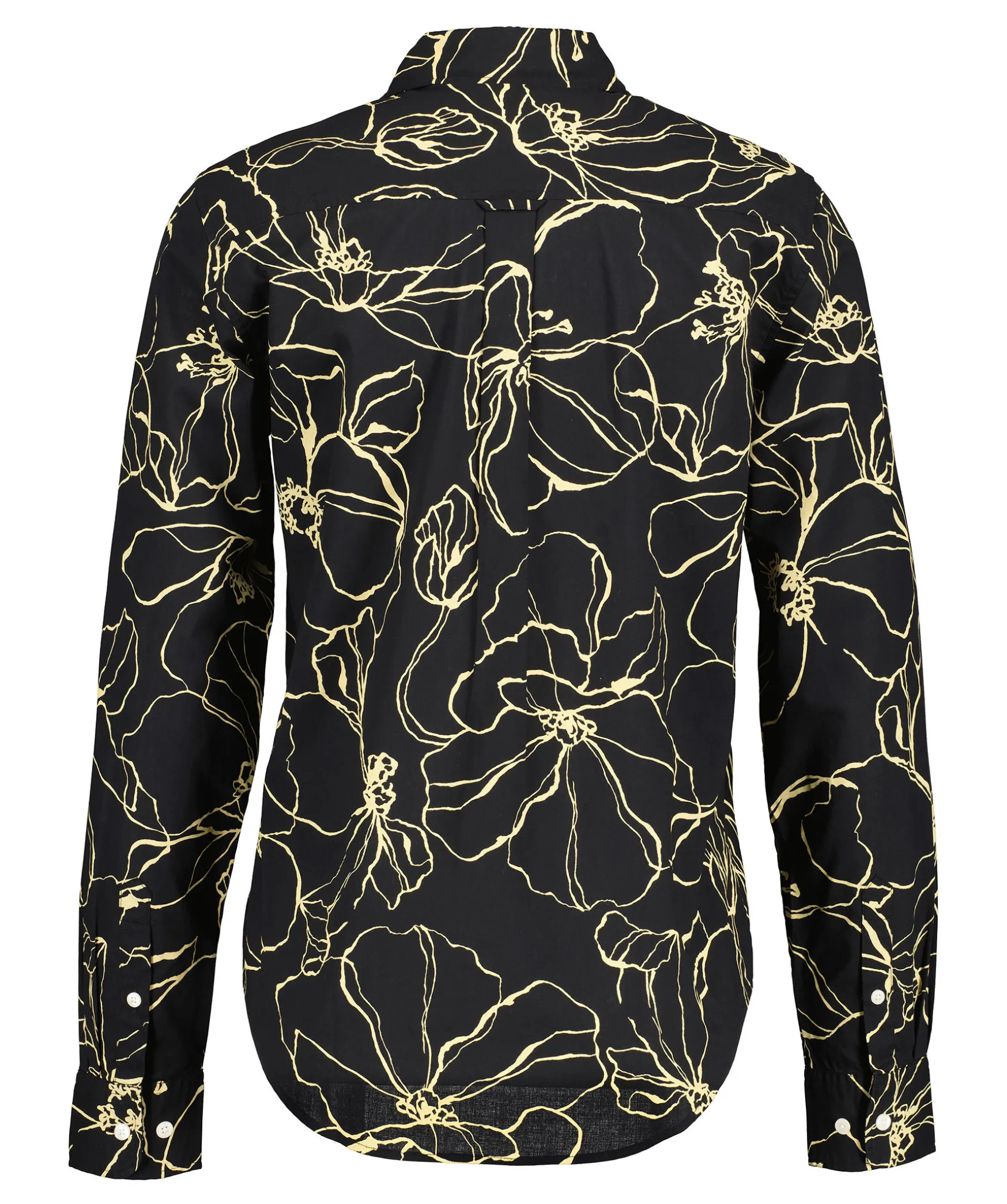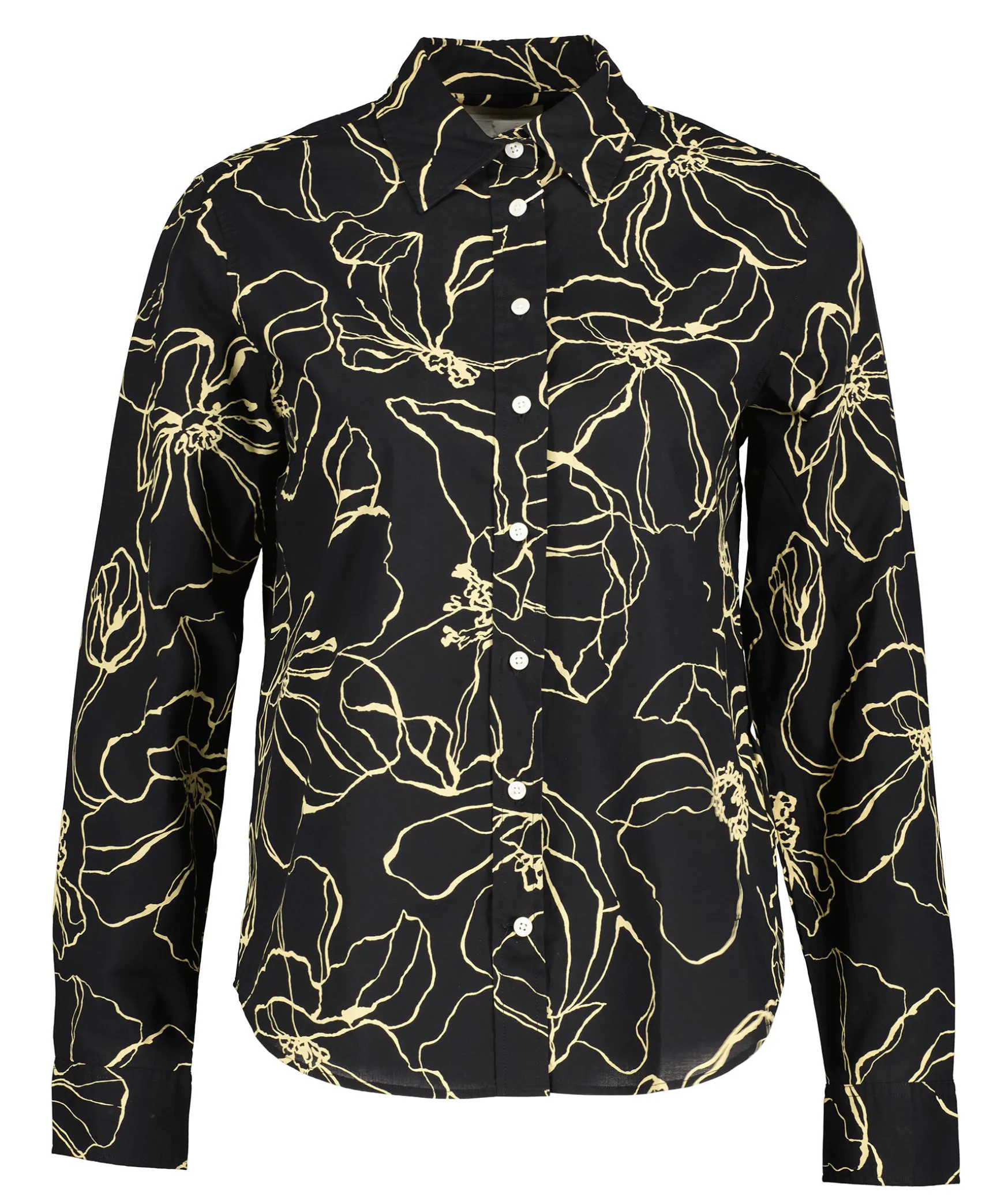 Svart Skjorta Med Heltackande Monster Fran Gant. Tillverkad I Bomullsvoile. Monstret Har Utvecklats Av Deras Egna Designteam Och Handmalats Med Pensel Och Black. Skjortan Har En Normal Passform, Point-Krage, Justerbara Manschetter Samt Deras Klassiska Locker Loop Med Boxpleat I Ryggen.