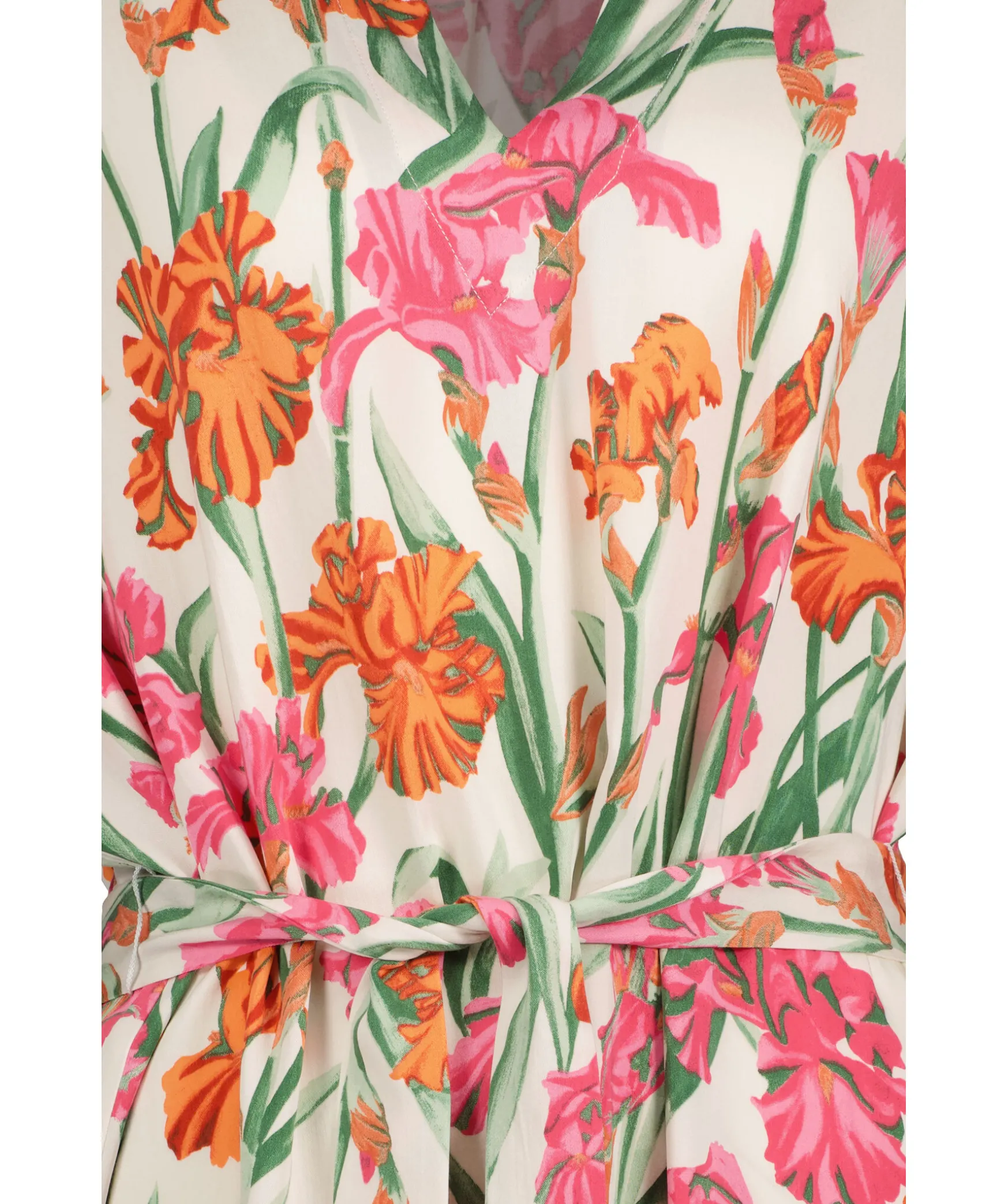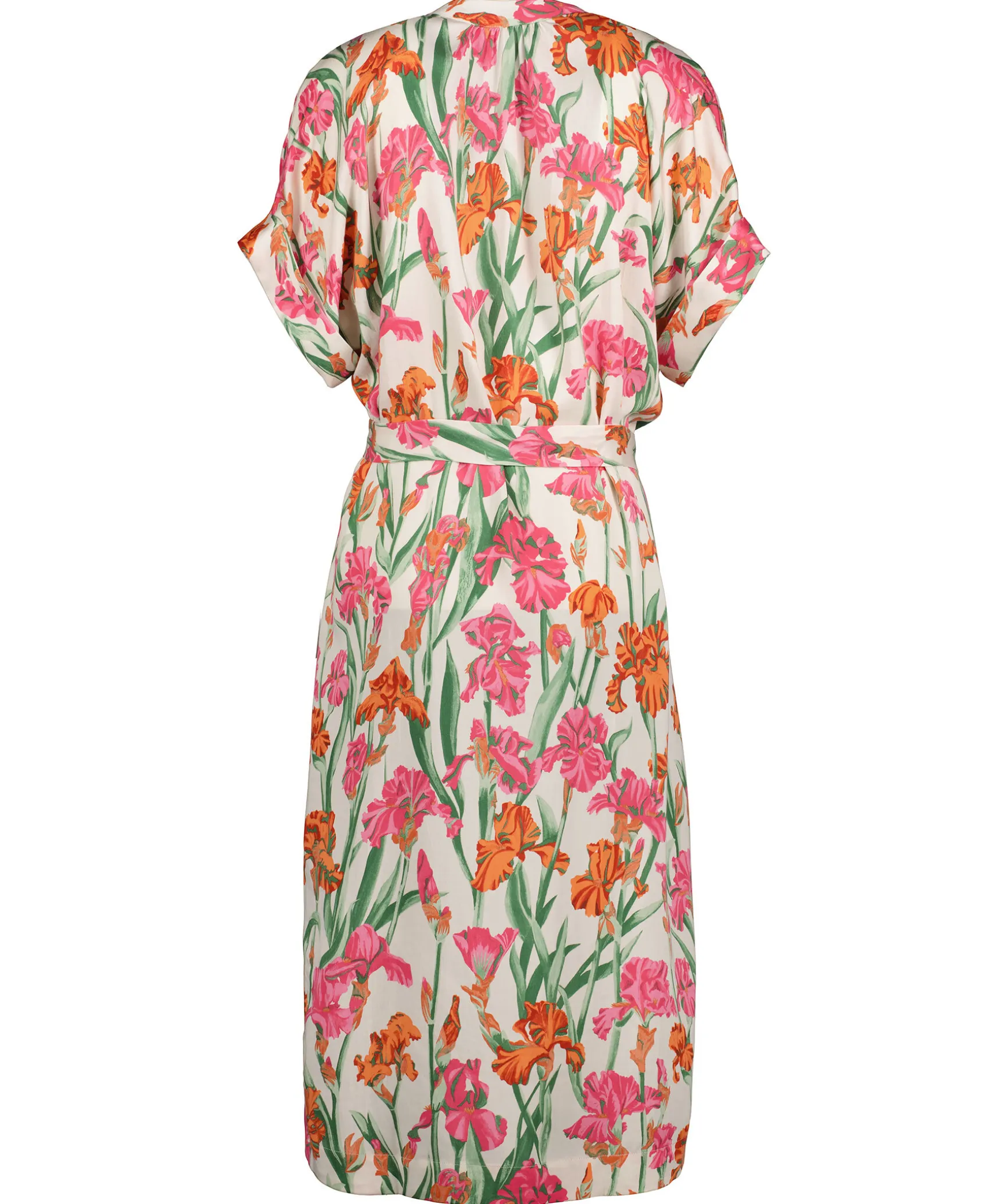 Multifargad Kaftanklanning Med Blommonster Fran Gant. Tillverkad I 100% Lyocell. Korta Armar, V-Ringning Med Stakrage Och Sprund I Sidorna. Den Har Balte I Midjan For En Mer Figurnara Profil Och Rynkade Detaljer, Slutar Strax Nedanfor Knaet. Avslappnad Passform.