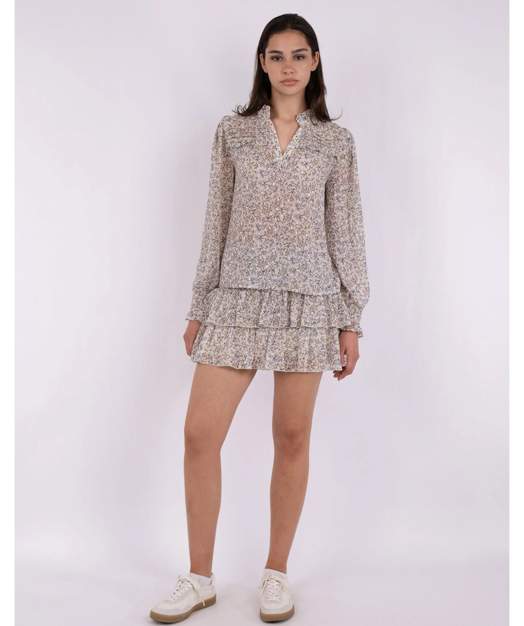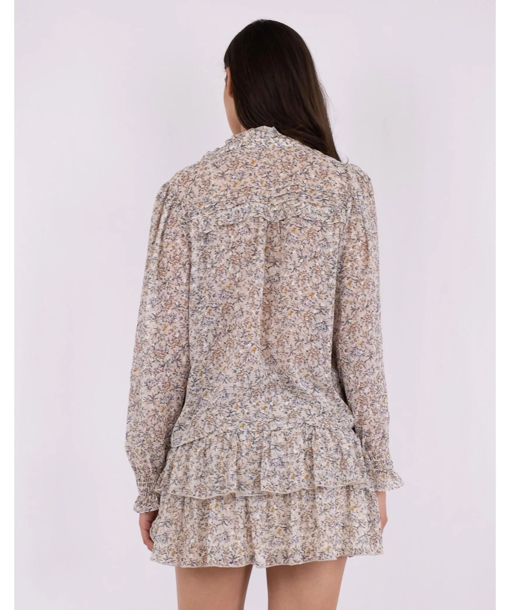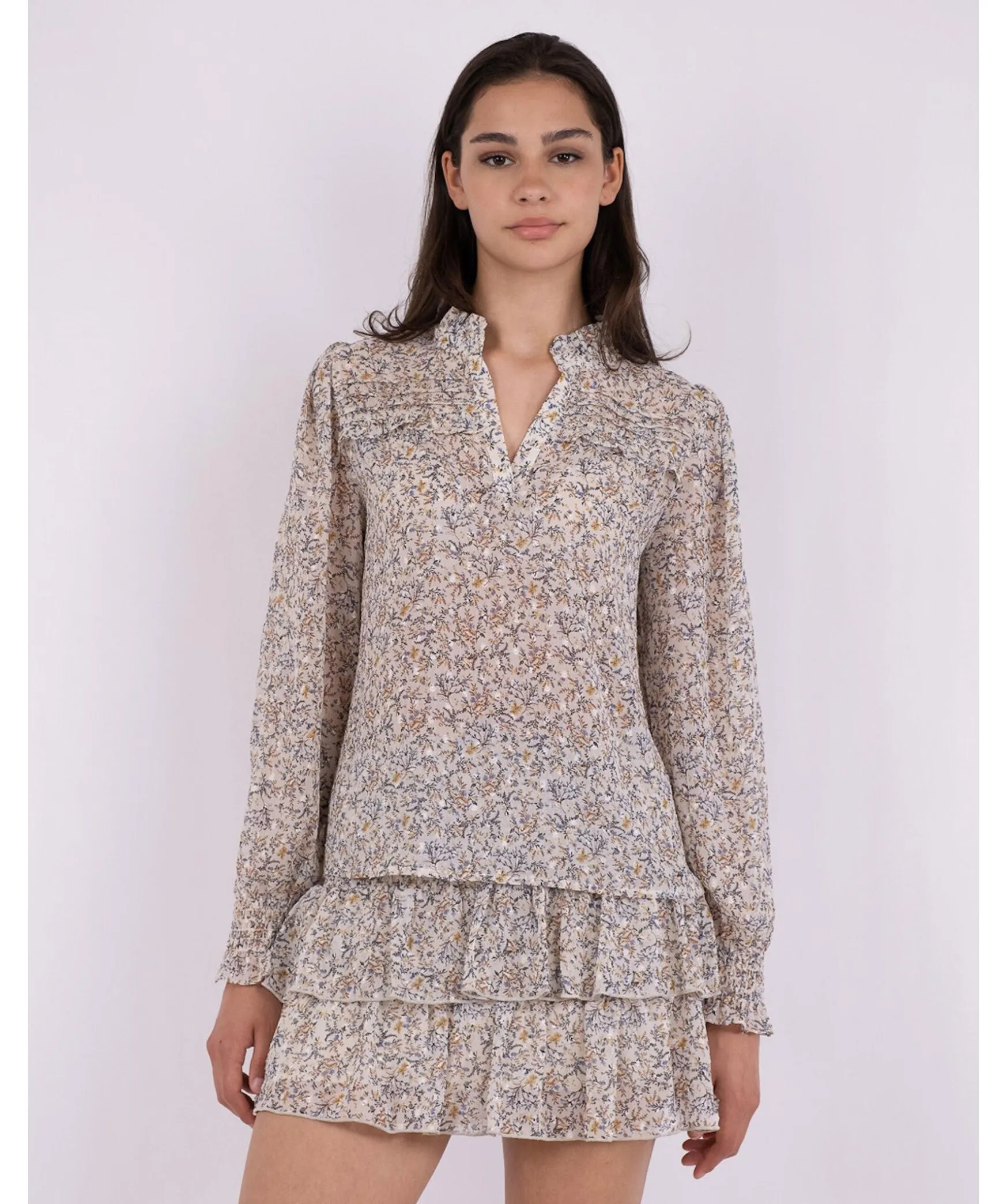 Blommig Blus Fran Neo Noir. V-Ringad Med Hog Krage. Ballongarmar Med Smock I Armslutet Och Plisserade Detaljer Vid Axlarna.