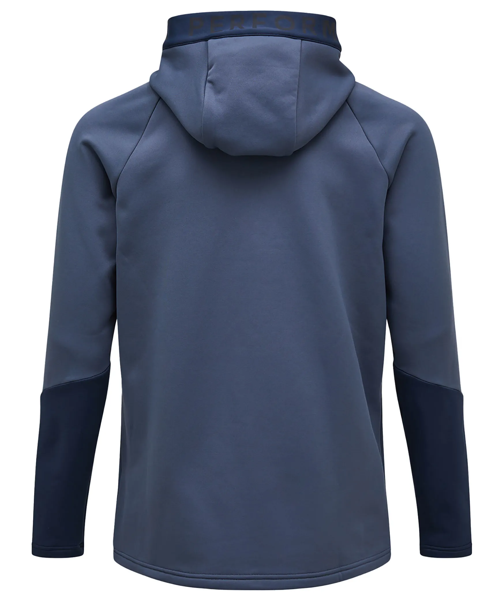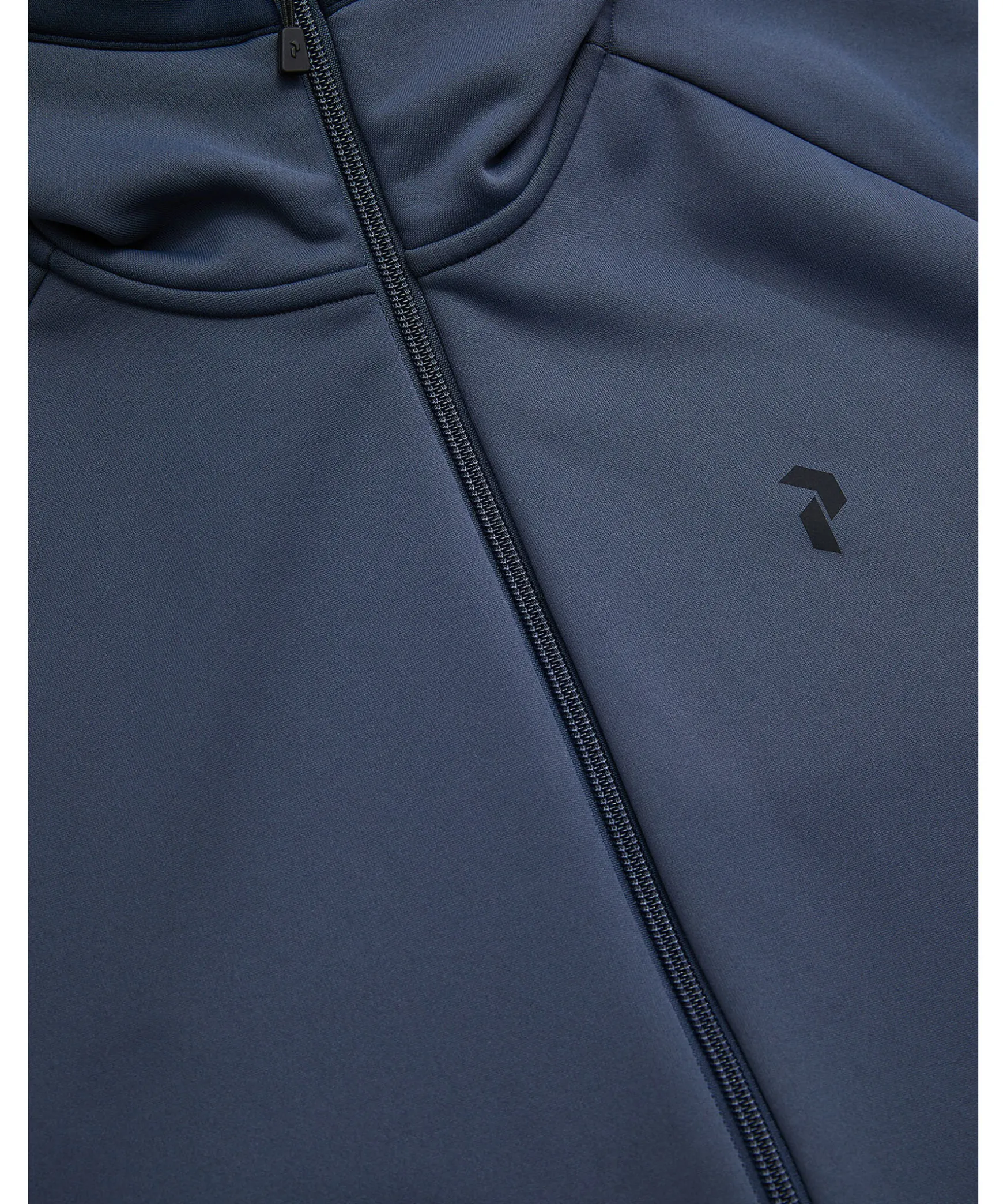 Morkbla Hoodie Fran Peak Performance. Stangs Framtill Med Dragkedja. Tryckt Logotyp Pa Vanster Brost, Trycktlogotyp Runt Luvan. Tva Fickor Framtill Som Stangs Med Dragkedja.
