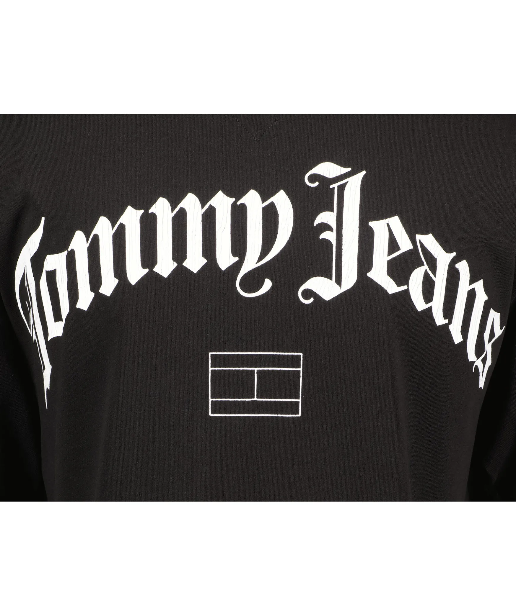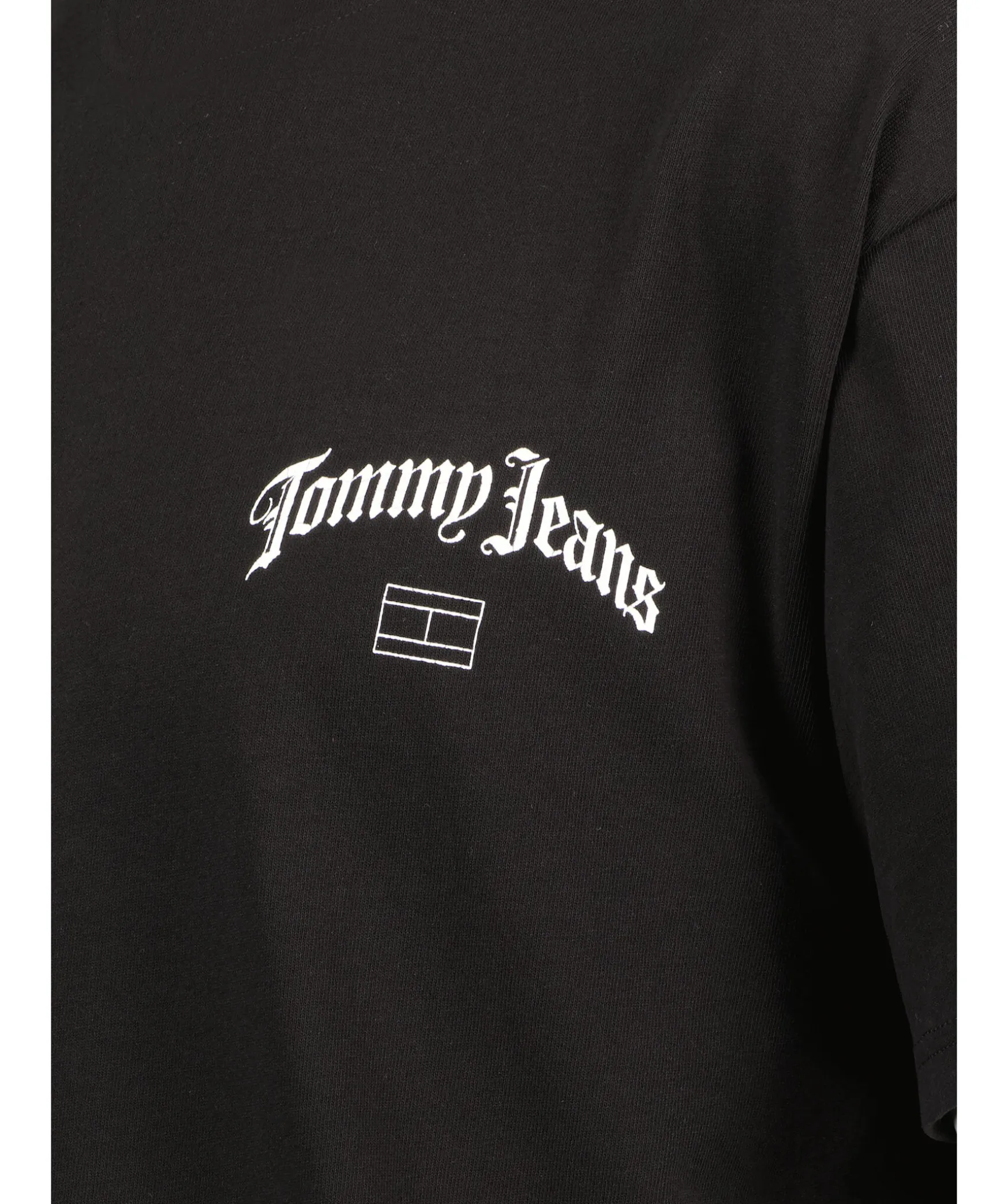 Svart, Enkel Och Avslappnad T-Shirt Fran Tommy Jeans. T-Shirten Har Latt Tappade Axlar Och Ar Tillverkad I Ren Bomull. Crewneck, Tommy Jeans-Logotyp Pa Brost Och Rygg Samt En Broderad Tommy Jeans Flagglapp Pa Armen.