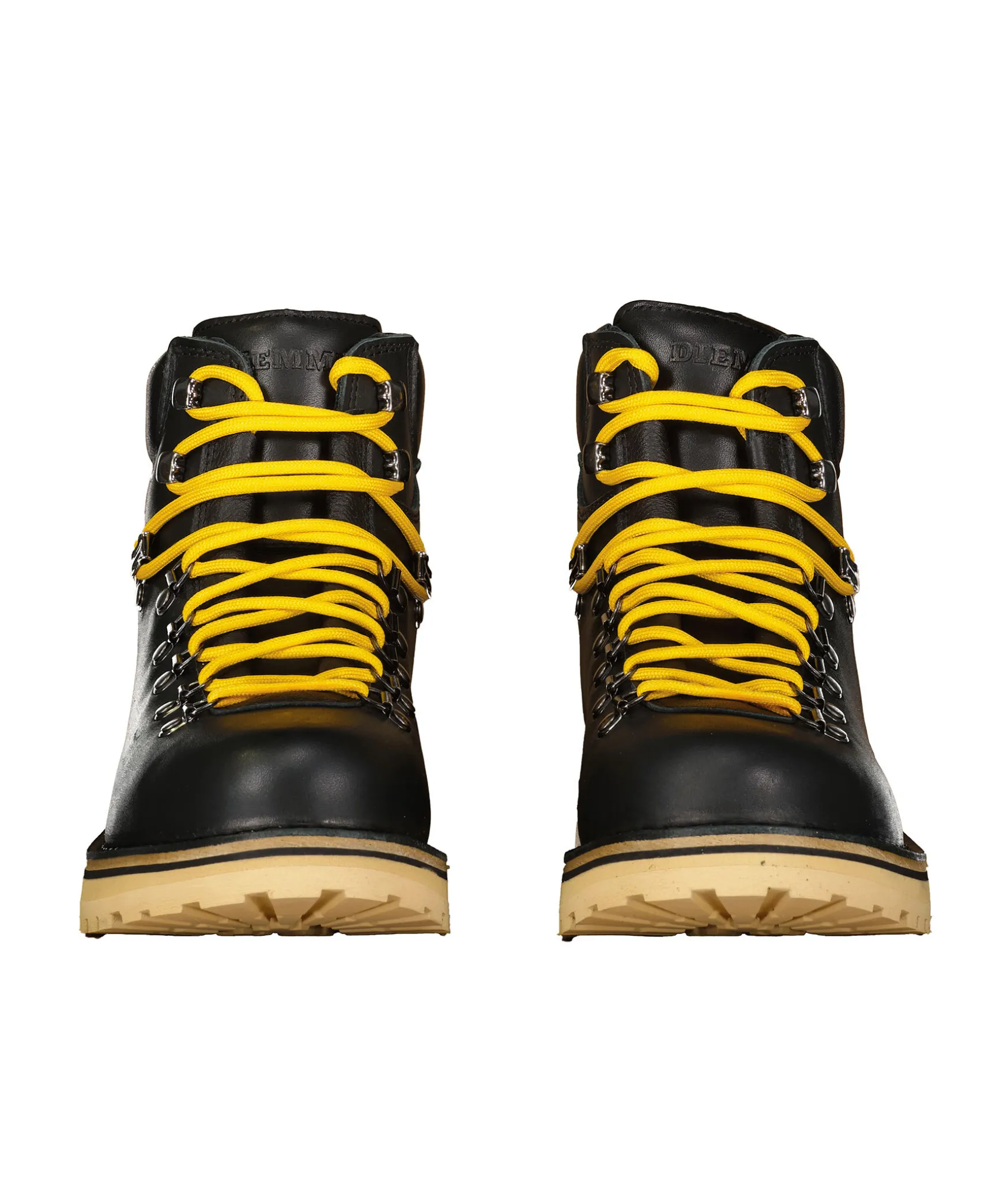 Svarta Kangor I Lader Fran Diemme. Inspirerade Fran Klassiska Italienska Vandringskangor. Kangorna Har En Latt Sula Och Har Fotledsstod.
