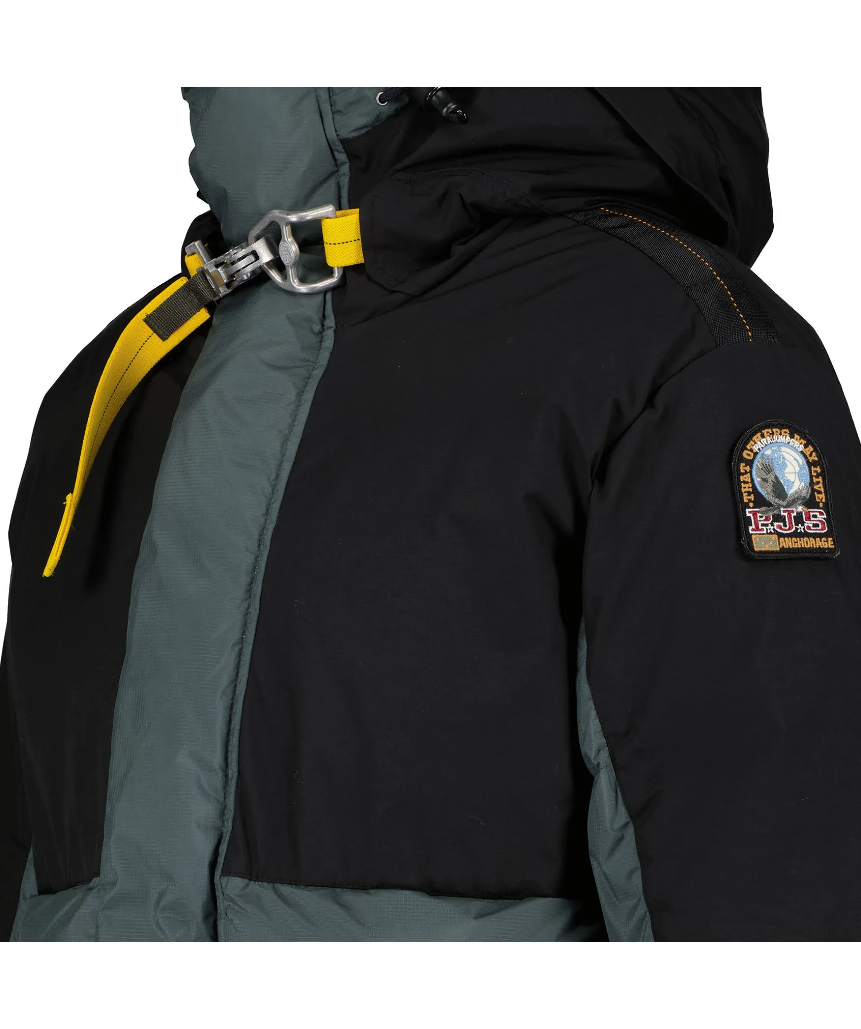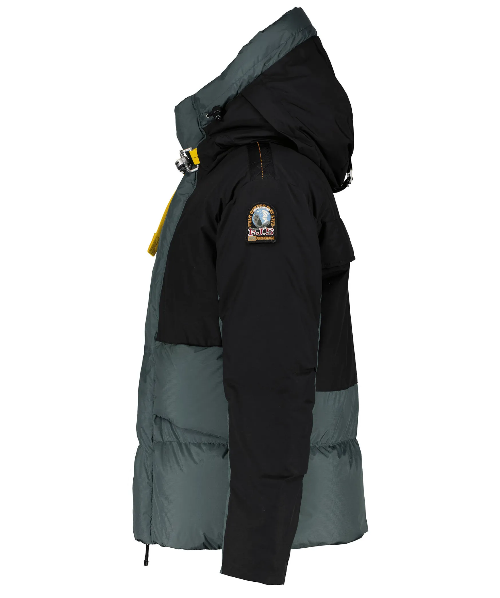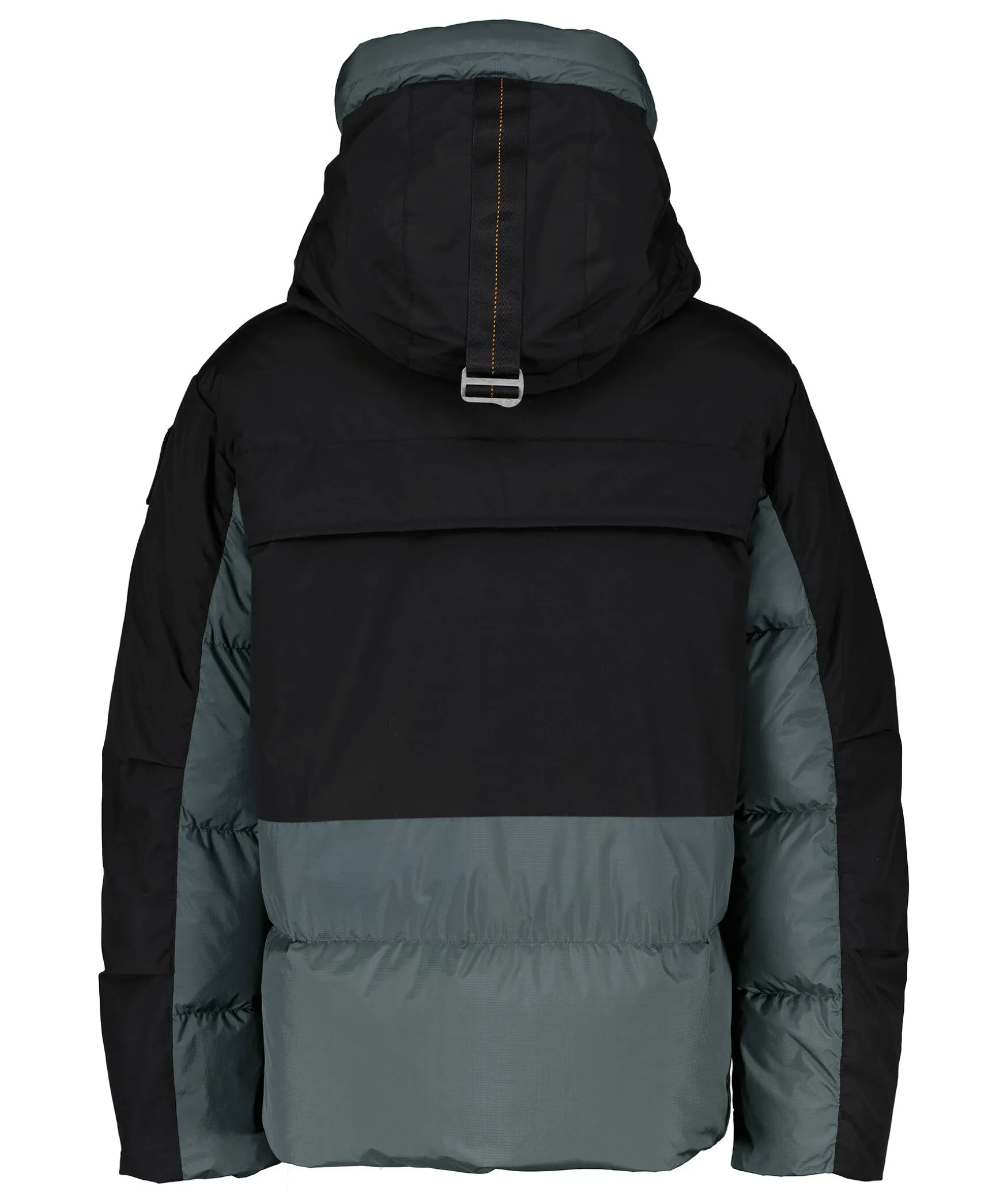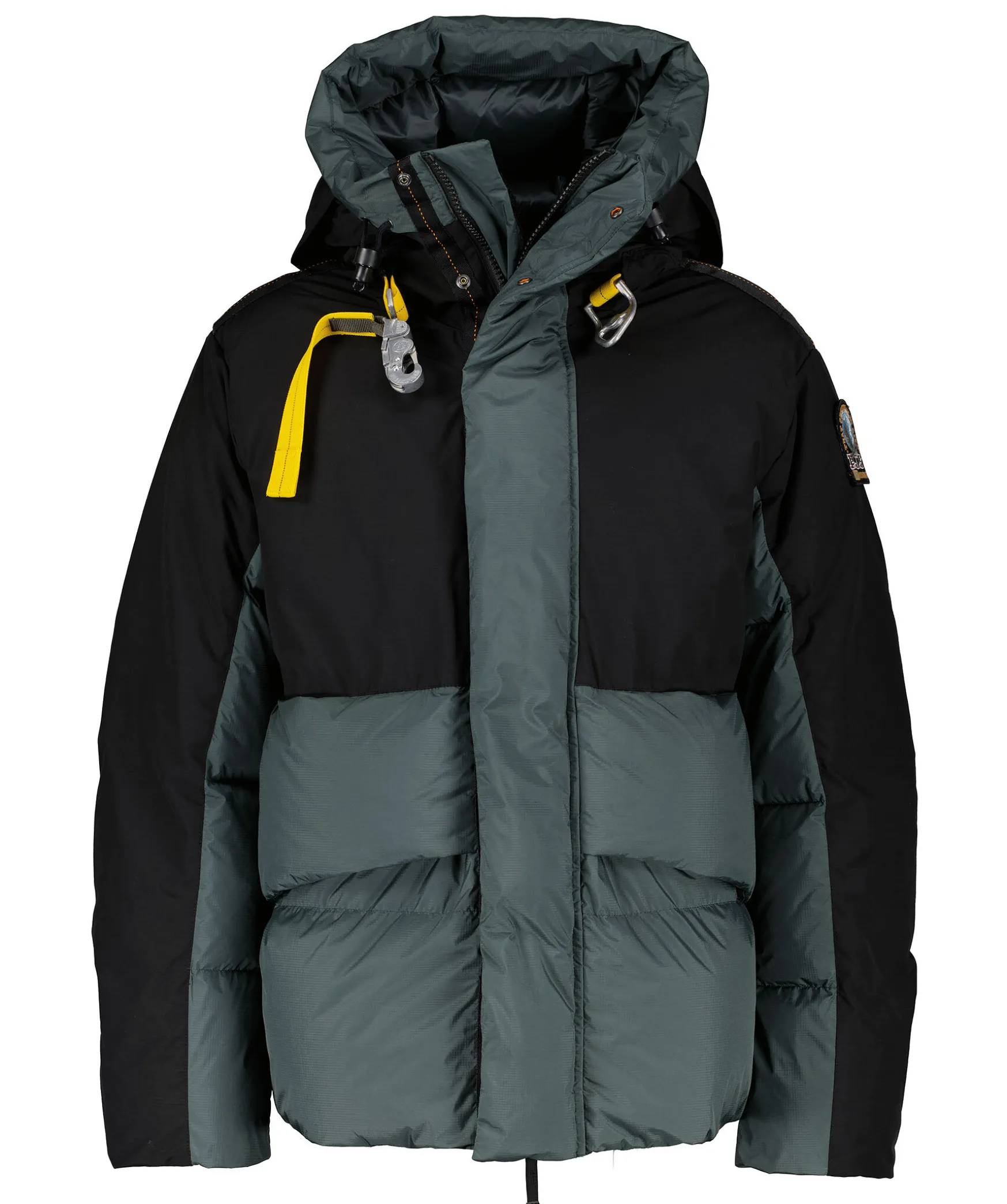 Morkgron Och Svart Dunjacka Fran Parajumpers. Stangs Framtill Med Tvavags Dragkedja Och Tryckknappar. Justerbar Luva Med Dragsko Och Spanne Baktill. Tva Fickor Framtill Med Dold Dragkedja. Innerficka Som Stangs Med Dragkedja.