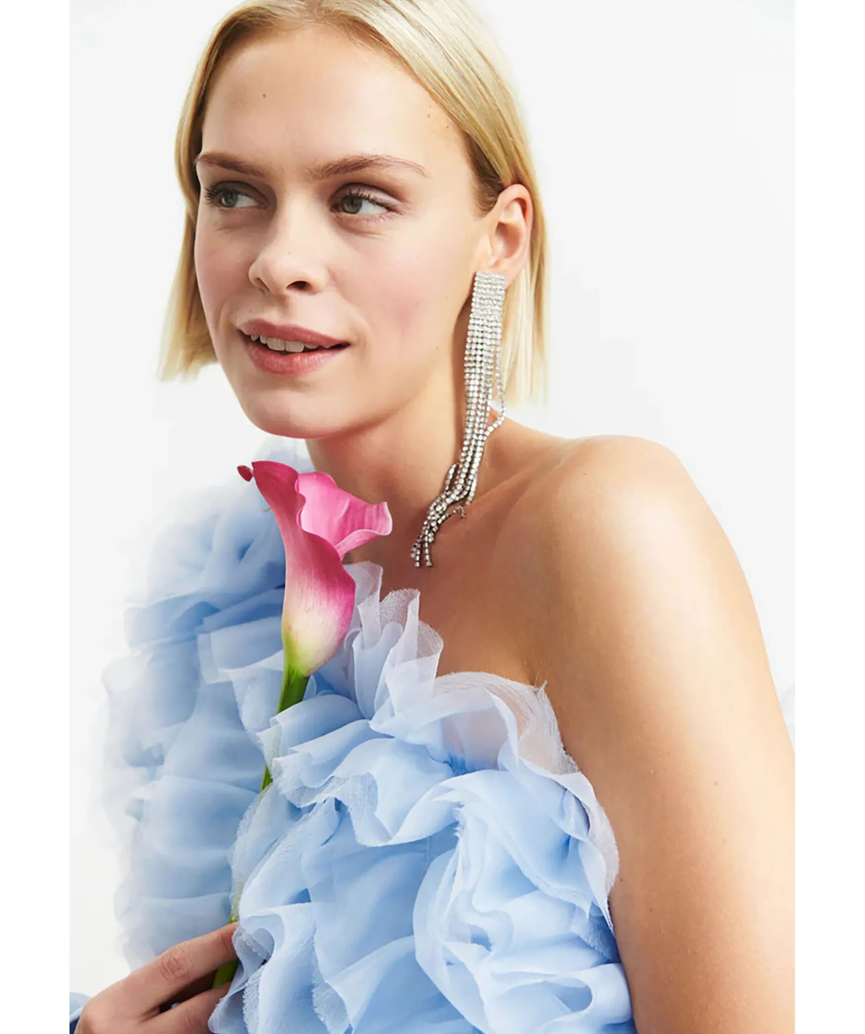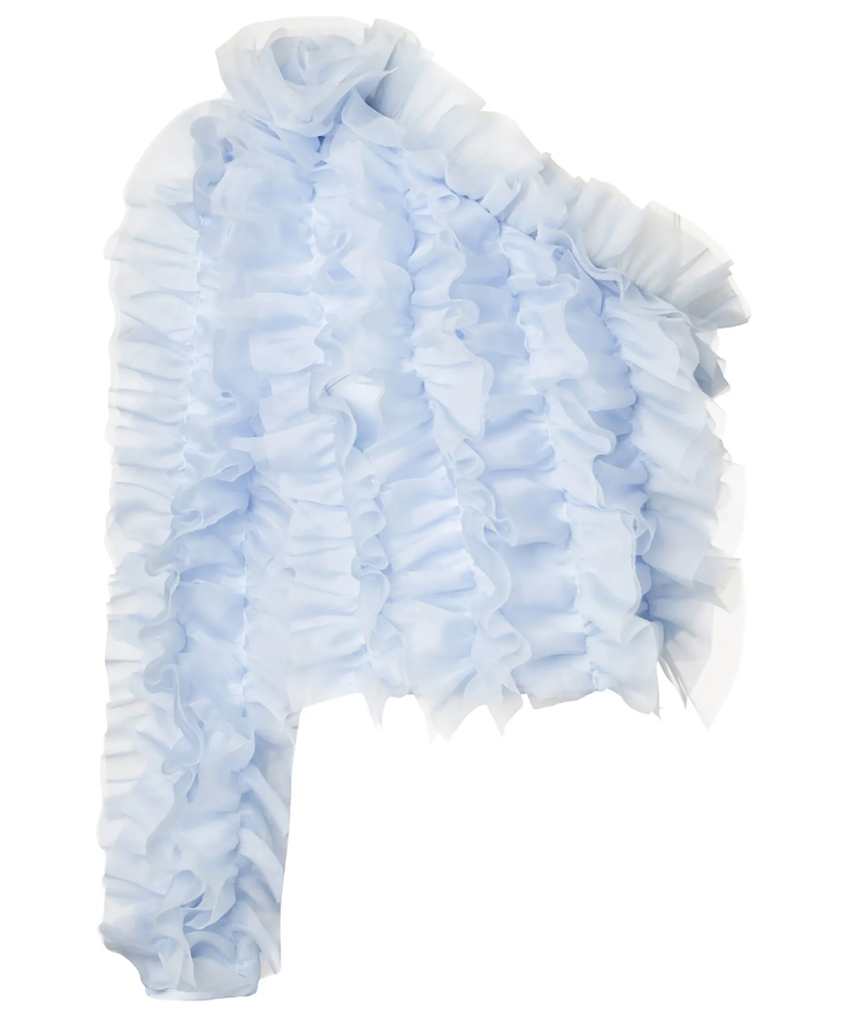 Ljusbla, Puffig Och Rynkad Blus Med En Arm Fran Custommade. Tillverkad I En Silkesblandning.