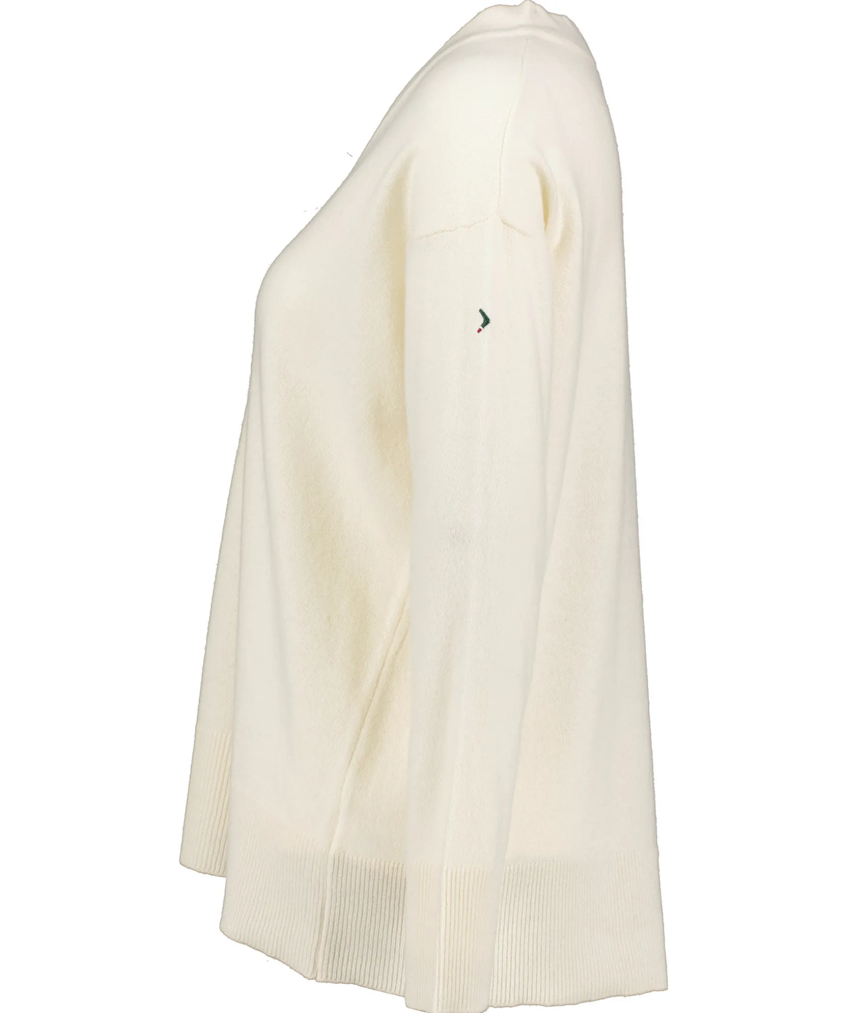Vit Stickad Troja Fran Boomerang. Trojan Har En V-Ringning Och Ar Tillverkad I En Lammulsblandning. Passformen Ar Oversized. Armar, Trojslut Och Ringning Har Ribbade Muddar. Logotyp Pa Vanster Arm.