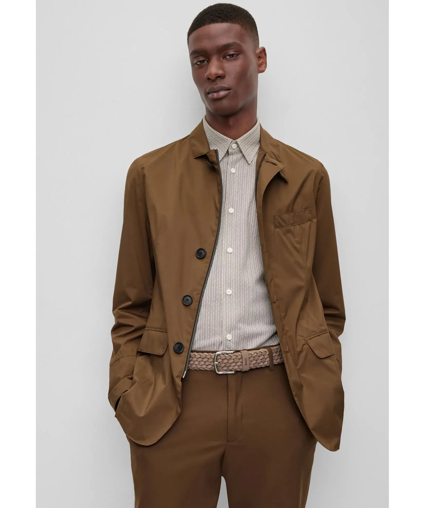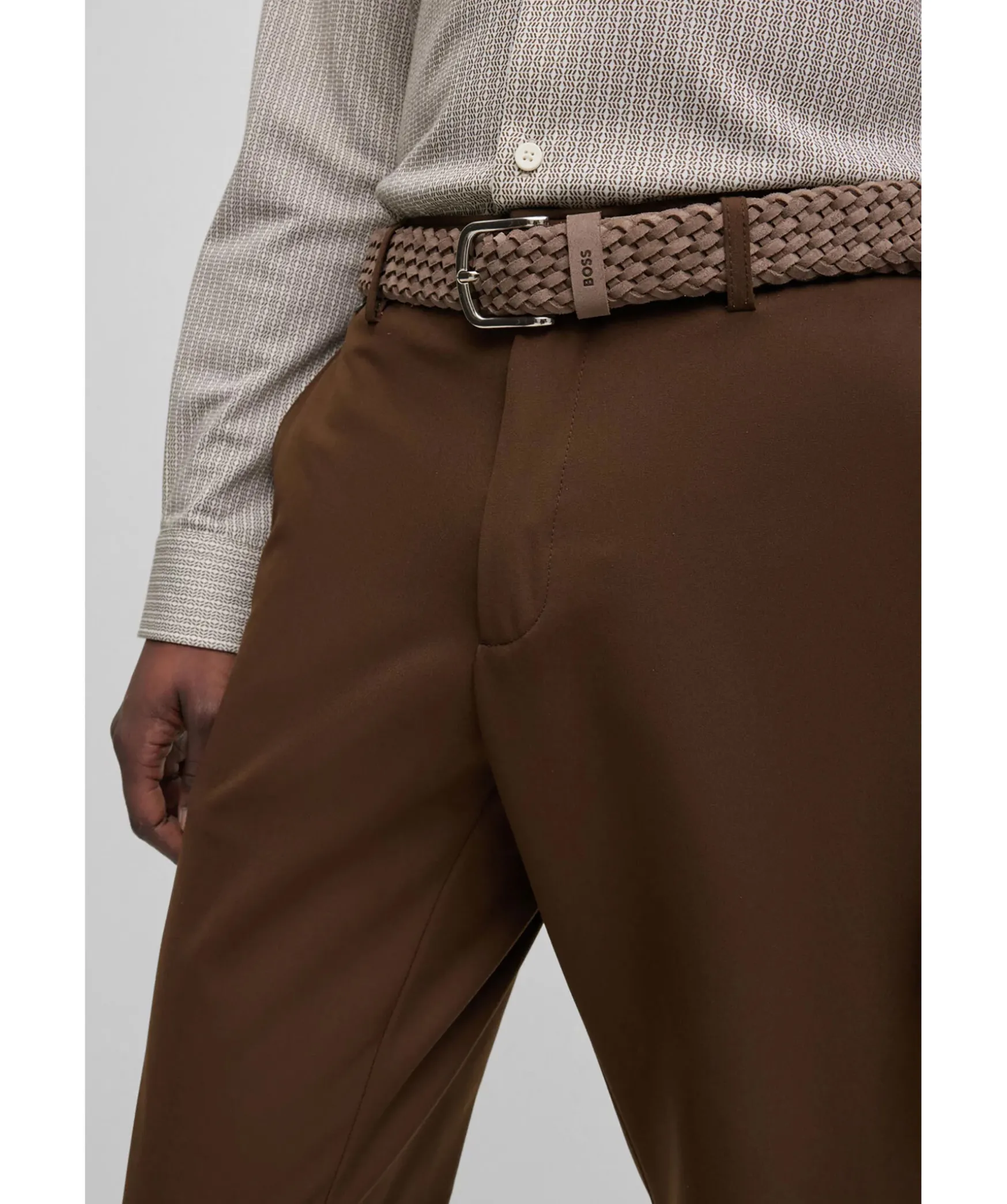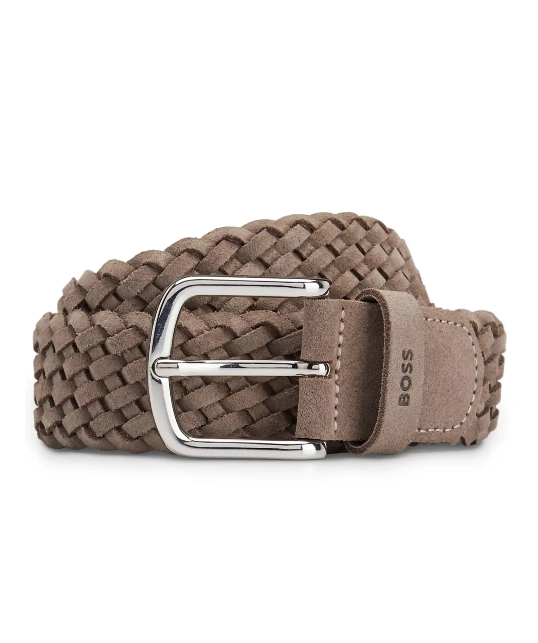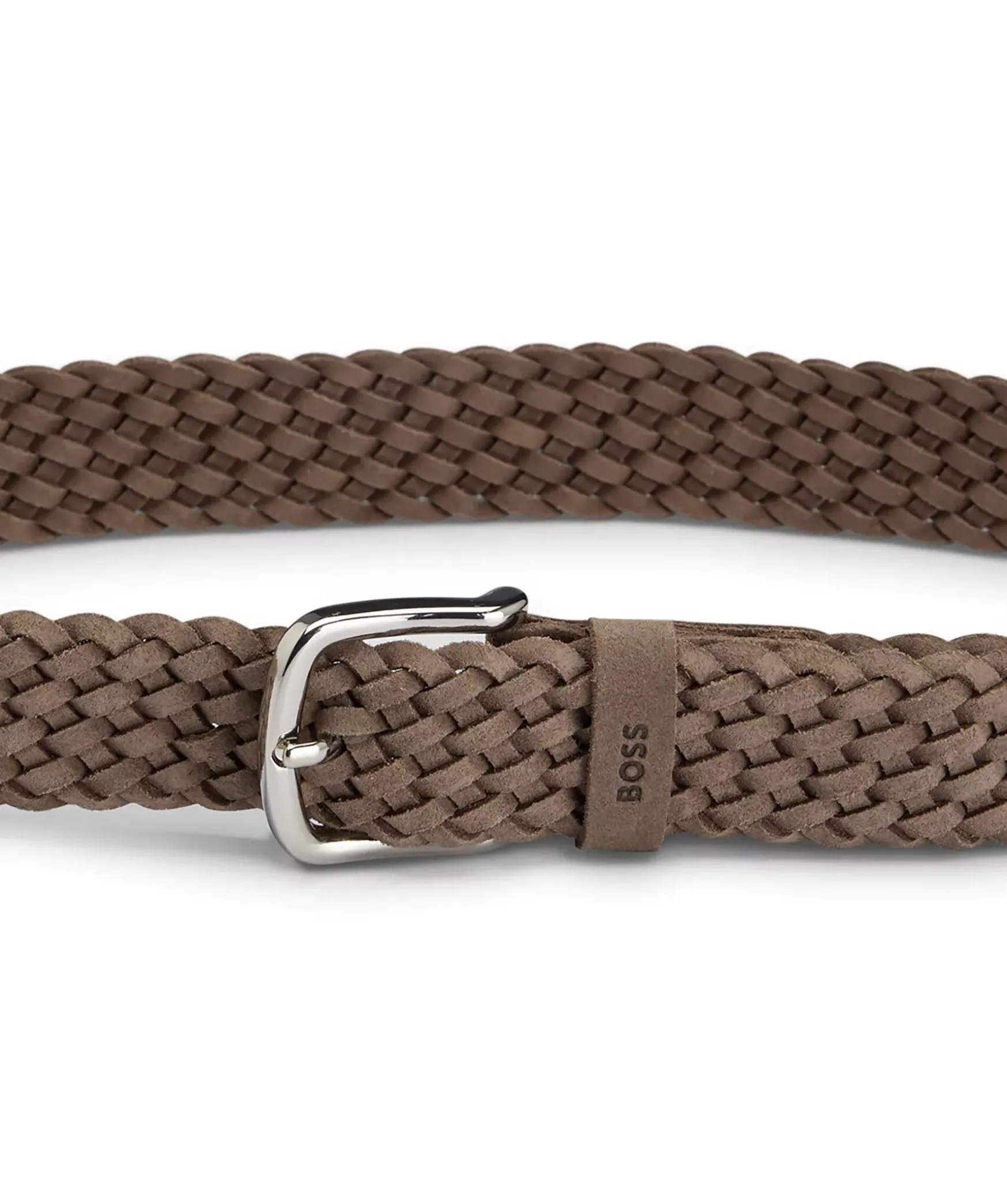 Ett Khakifargat Elegant Balte Fran Boss Black. Saker Med En Markeshallare Och Polerat Spanne. Baltet Ar Tillverkat I Mjuk Mocka For En Rik Effekt. For Basta Passform Rekommenderar Vi Att Du Bestaller Ett Balte En Storlek Storre An Din Midja.