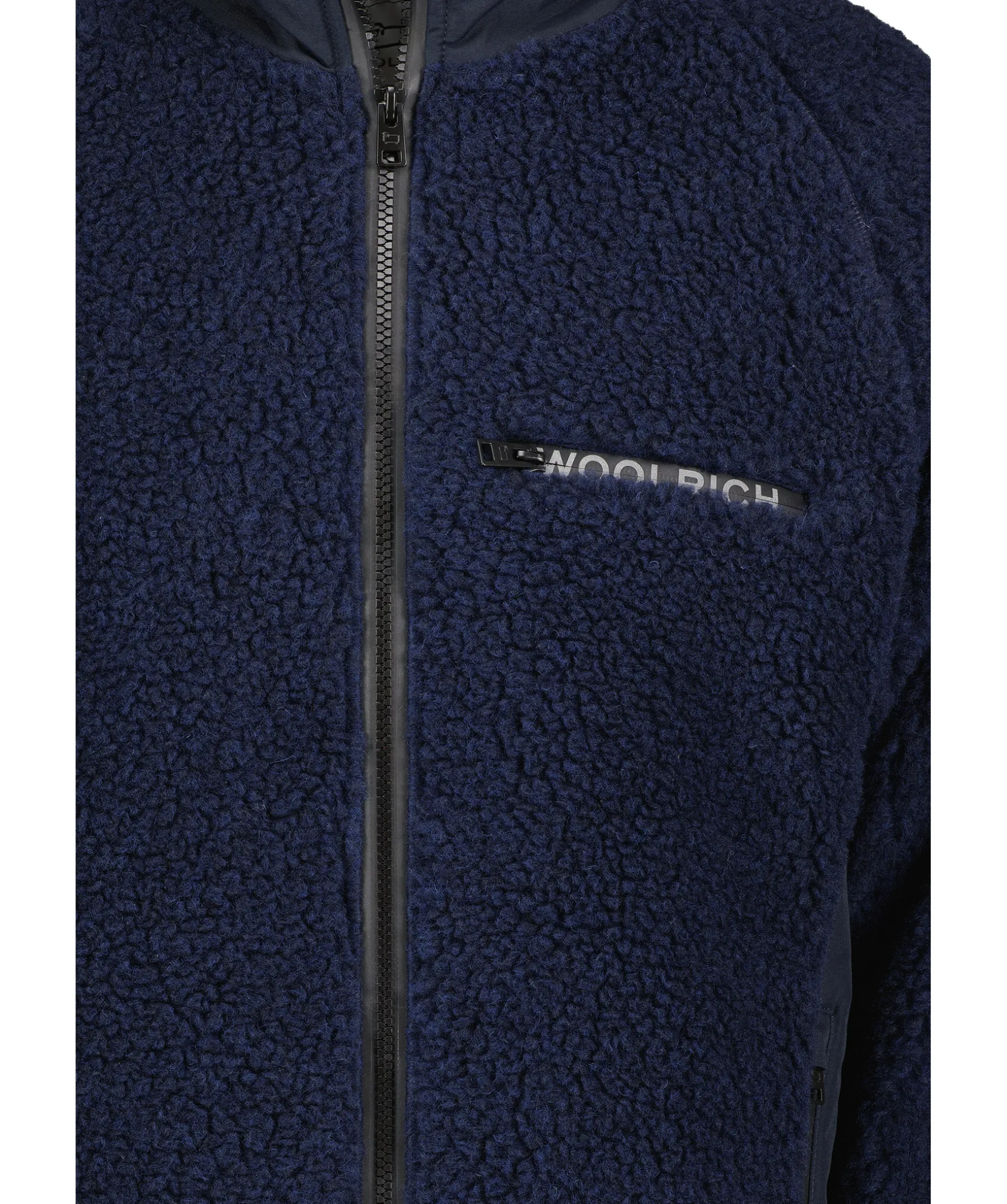 Morkbla Pile Fran Woolrich. Stangs Framtill Med Dragkedja. Brostficka Pa Vanster Sida Med Logotyp I Reflexfarg Pa Dragkedjan. Tva Fickor Framtill Som Stangs Med Dragkedja. Dragkedja Langst Vanster Sida. Vavda Paneler I Sidan Och Pa Underarmarna.