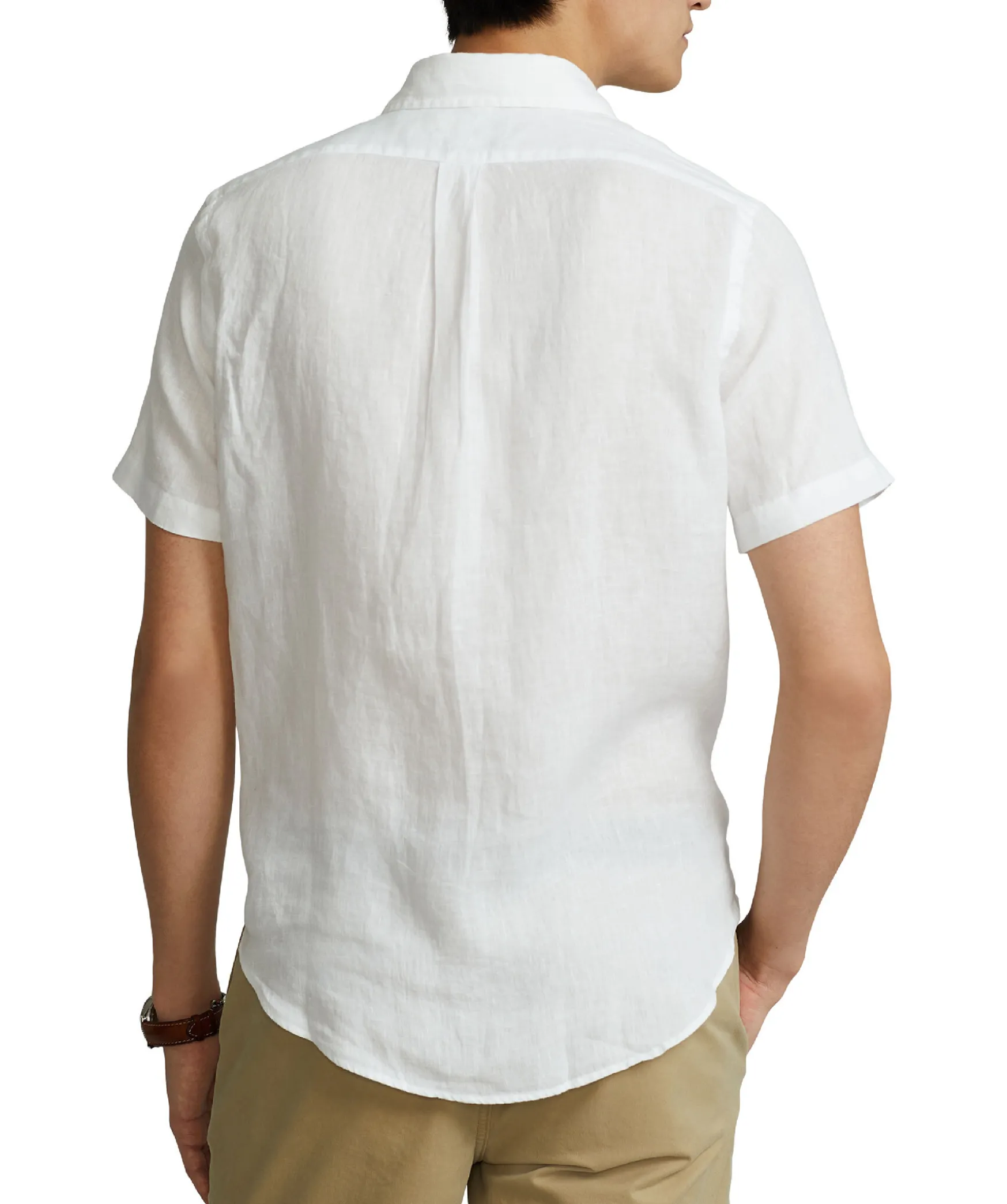 Vit, Kortarmad Skjorta Fran Polo Ralph Lauren. Skjortan Har En Klassisk Passform Och Ar Gjord I Ett Latt Linnematerial. Button Down-Krage Och Broderad Polohast Pa Brostet.