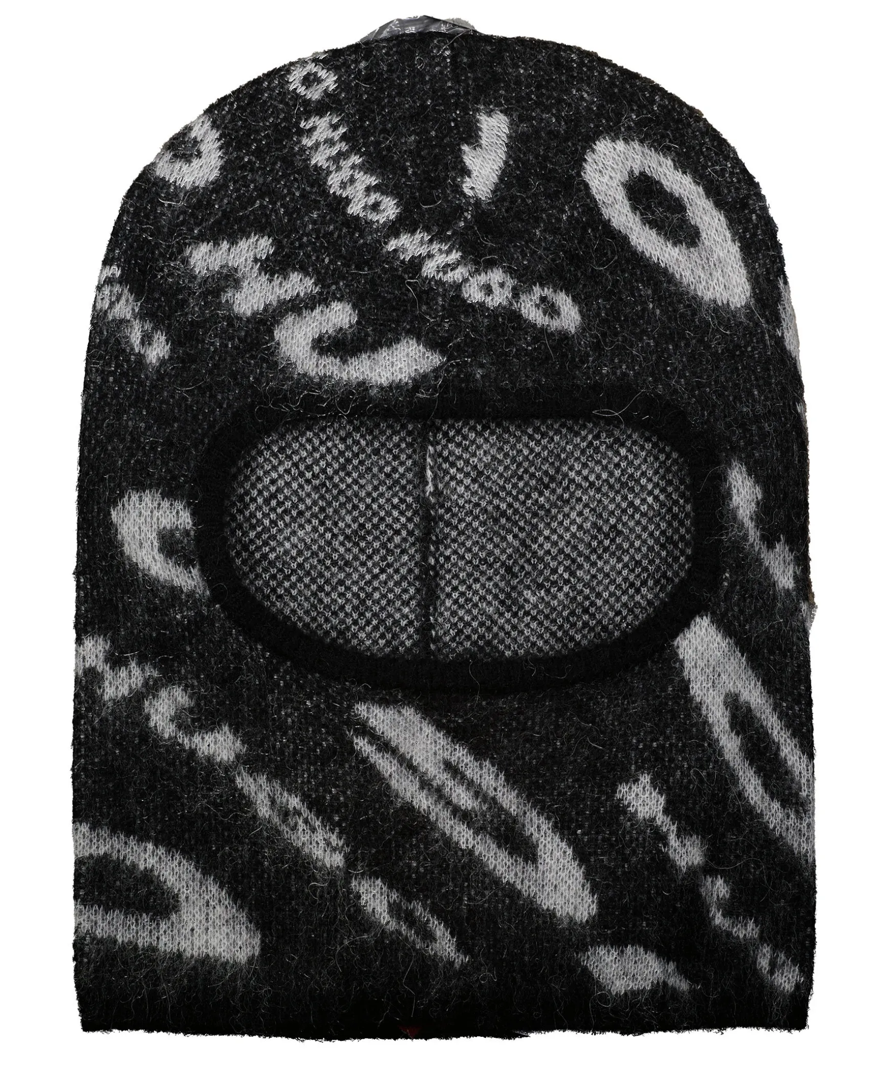Gra Och Svart Logotypmonstrad Balaclava Fran Hugo. Tillverkad I En Polyamid- Och Ullblandning.