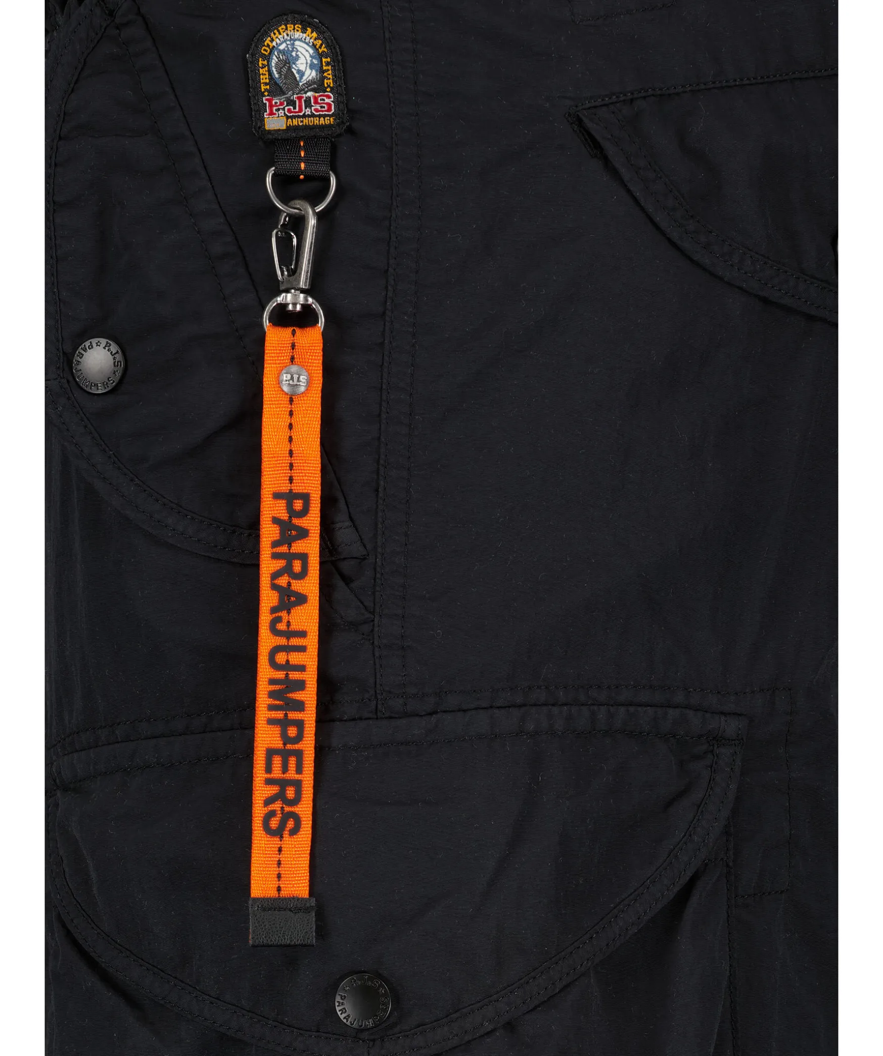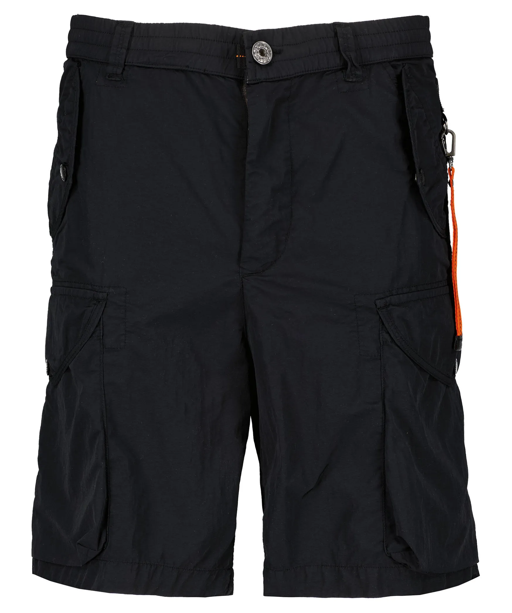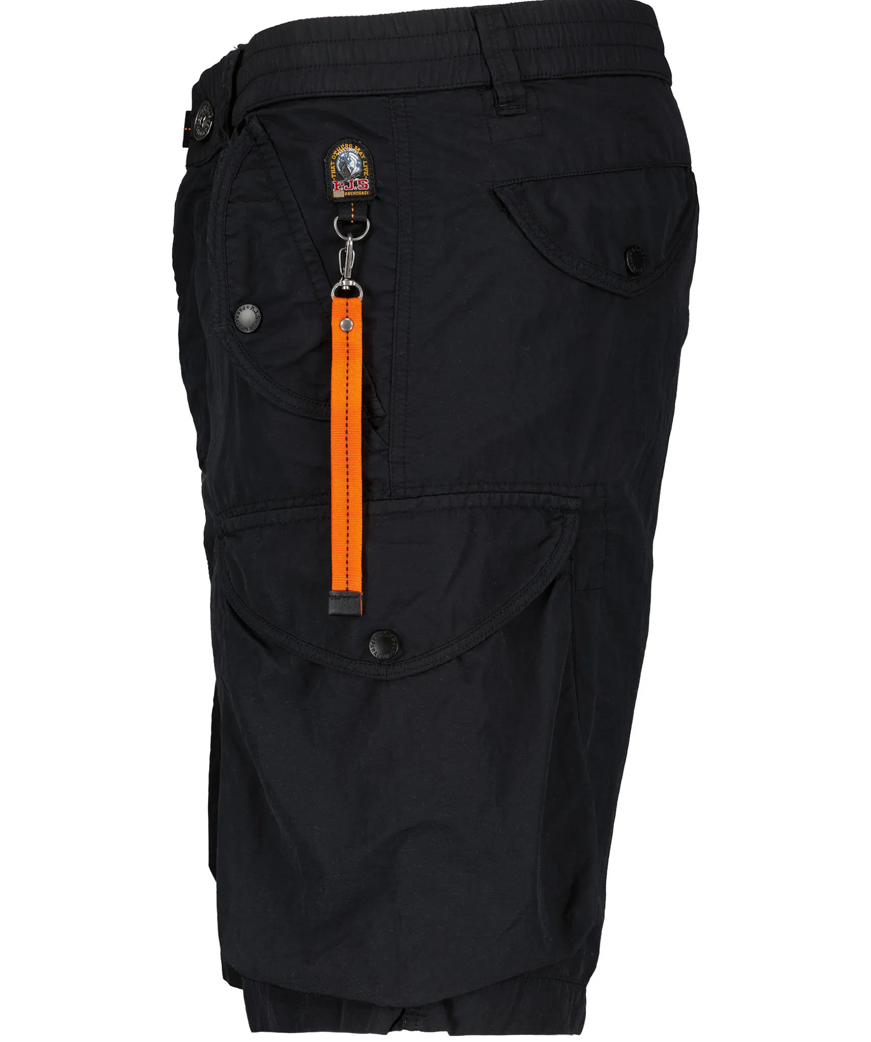 Klassiska Svarta Cargo Shorts Fran Parajumpers. Tillverkad I 100% Polyamid. Normal Passform. Tva Sidfickor Samt Tva Storre Fickor Langre Ner Pa Benet, Stangs Med Knappning. Shortsen Har Aven Tva Bakfickor Som Stangs Med Knappning. Patchlogotyp Pa Vanster Ben Samt Orange Karbinhake Med Gummilogotyp.