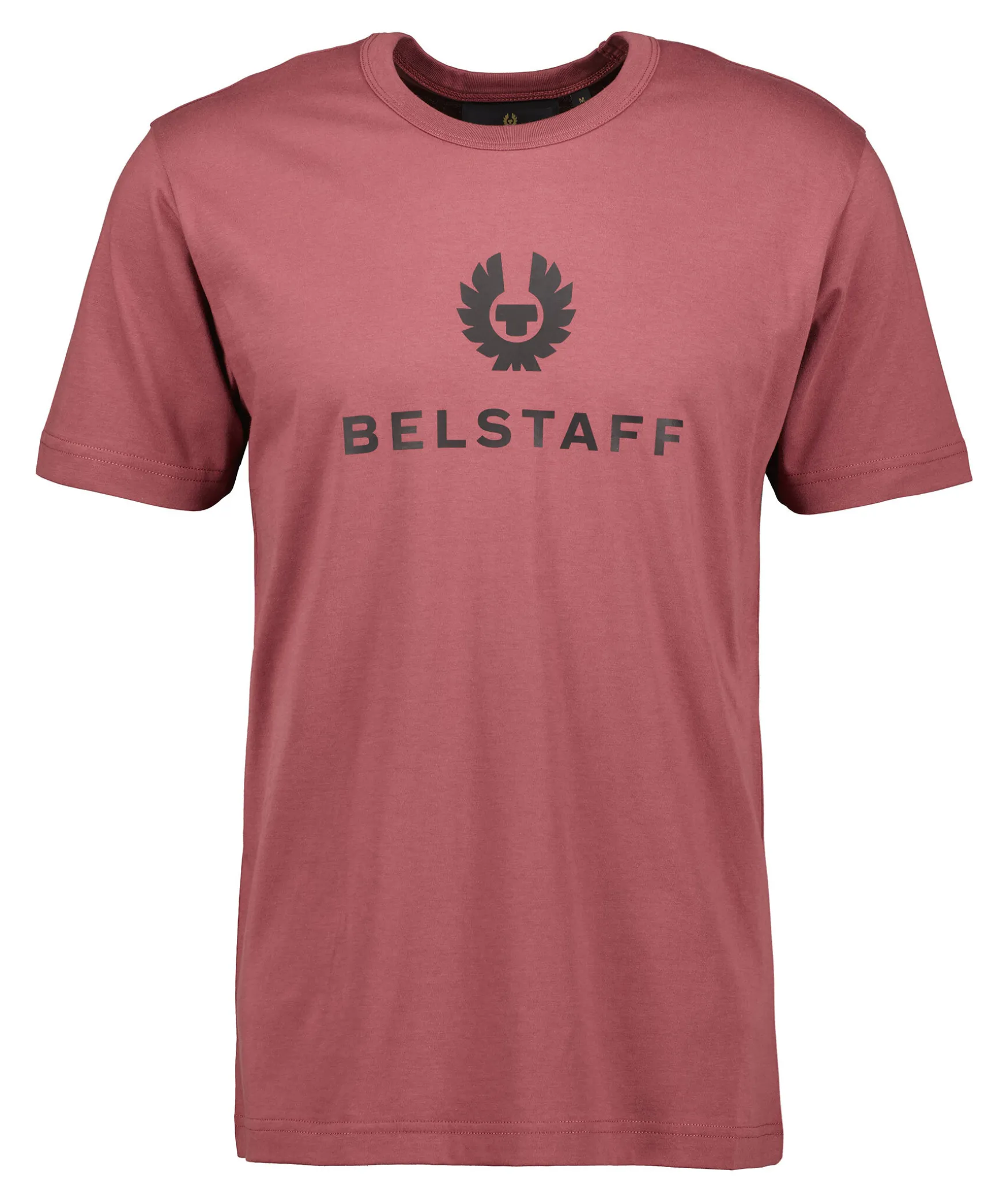 Vinrod T-Shirt Fran Belstaff. Rundad Halsringning. Tryckt Logotyp Over Brostet I Svart. Ribbstickad Halsringning. Tillverkad I 100% Bomull.