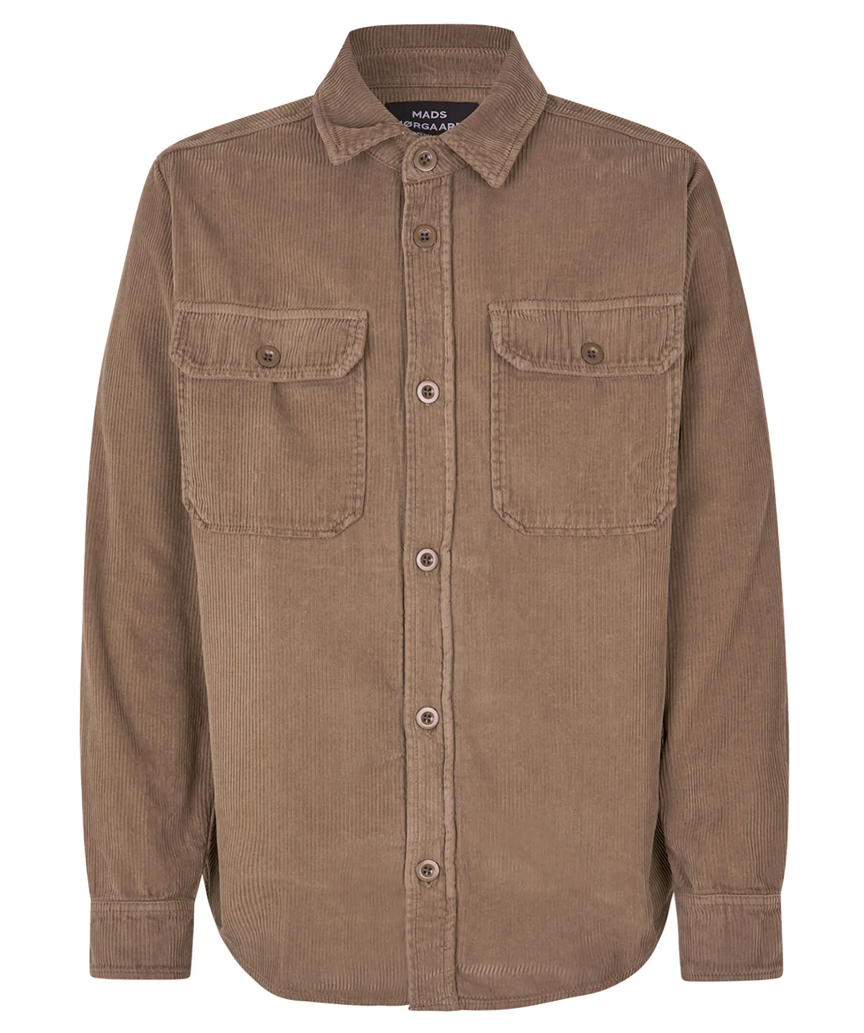 Brun Overshirt I Manchester Fran Mads Norgaard. Deras Skjorta Cotton Corduroy Skyler Shirt Ar Gjord Av 100 % Bomull Som Ar Vavd Till Bred Manchester. Passformen Ar Normal, Kragen Ar Nedfalld Och Den Har Halvstora Knappar, Stora Brostfickor Och Justerbara Muddar.