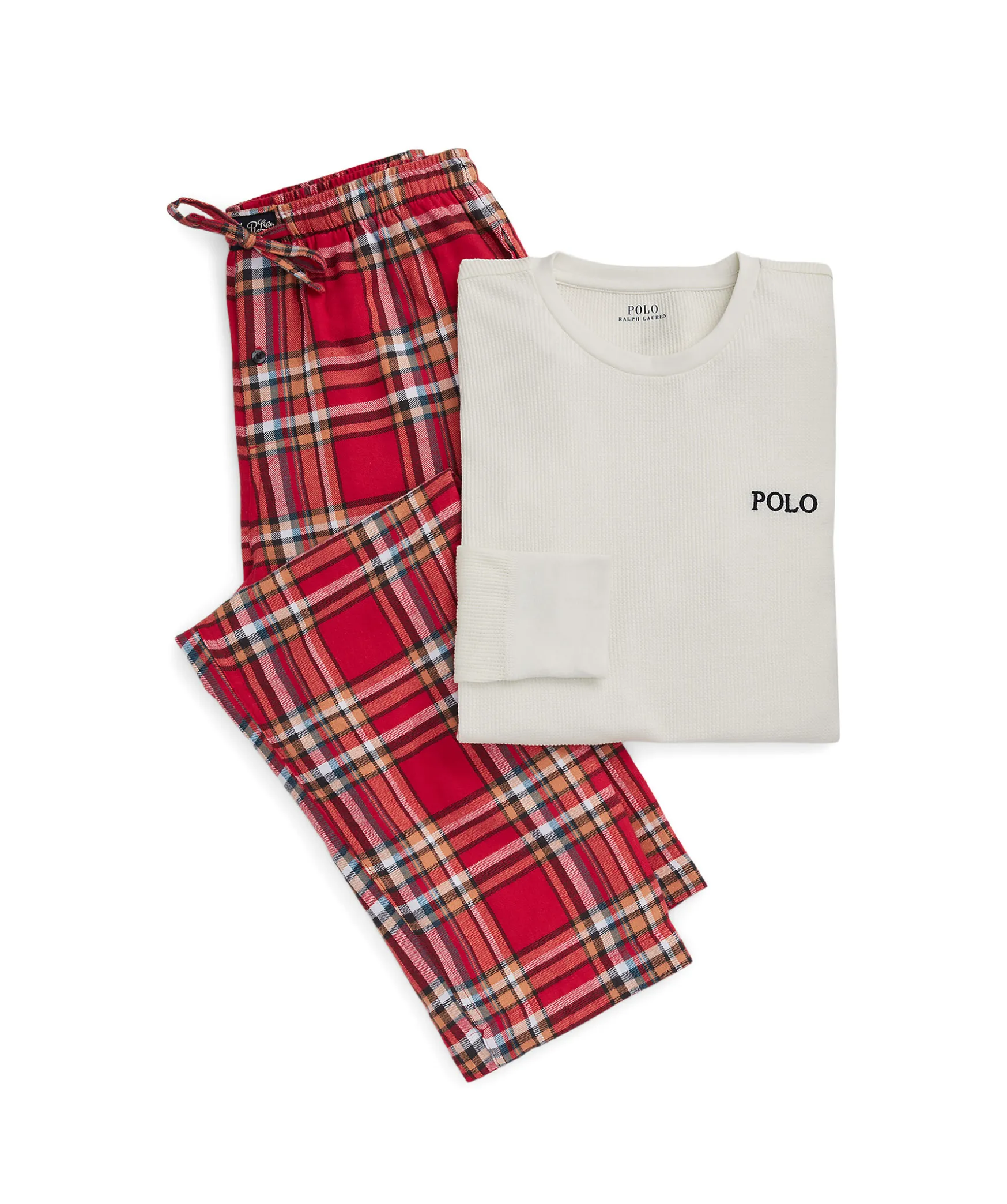 Pyjamas Set Fran Polo Ralph Lauren. Detta Bekvama Set Ar Tillverkat Av Mjuk Bomull Och Forenar En Vaffelstickad Langarmad Sovtroja Med En Rutig Pyjamasbyxa Av Flanell. Ribbstickad Crewneck Med Langa Armar Och Ribbstickade Muddar. ”Polo” Broderad Pa Vanster Brost Samt Signatur Ponny Broderad Pa Vanster Fall. Elastiskt Dragsko I Midjan Pa Byxorna Med Vavd ”Polo Rl”-Etikett Pa Framsidan; Fluga Med En Knapp; Sidfickor Med Sommar.