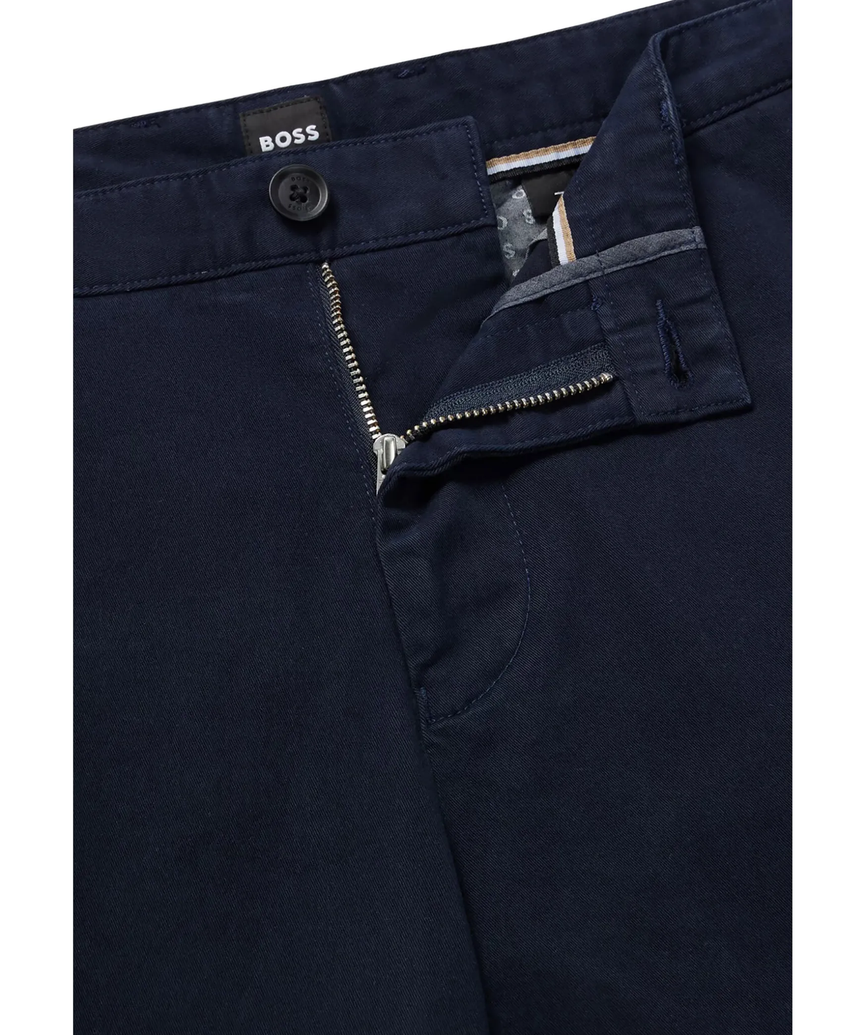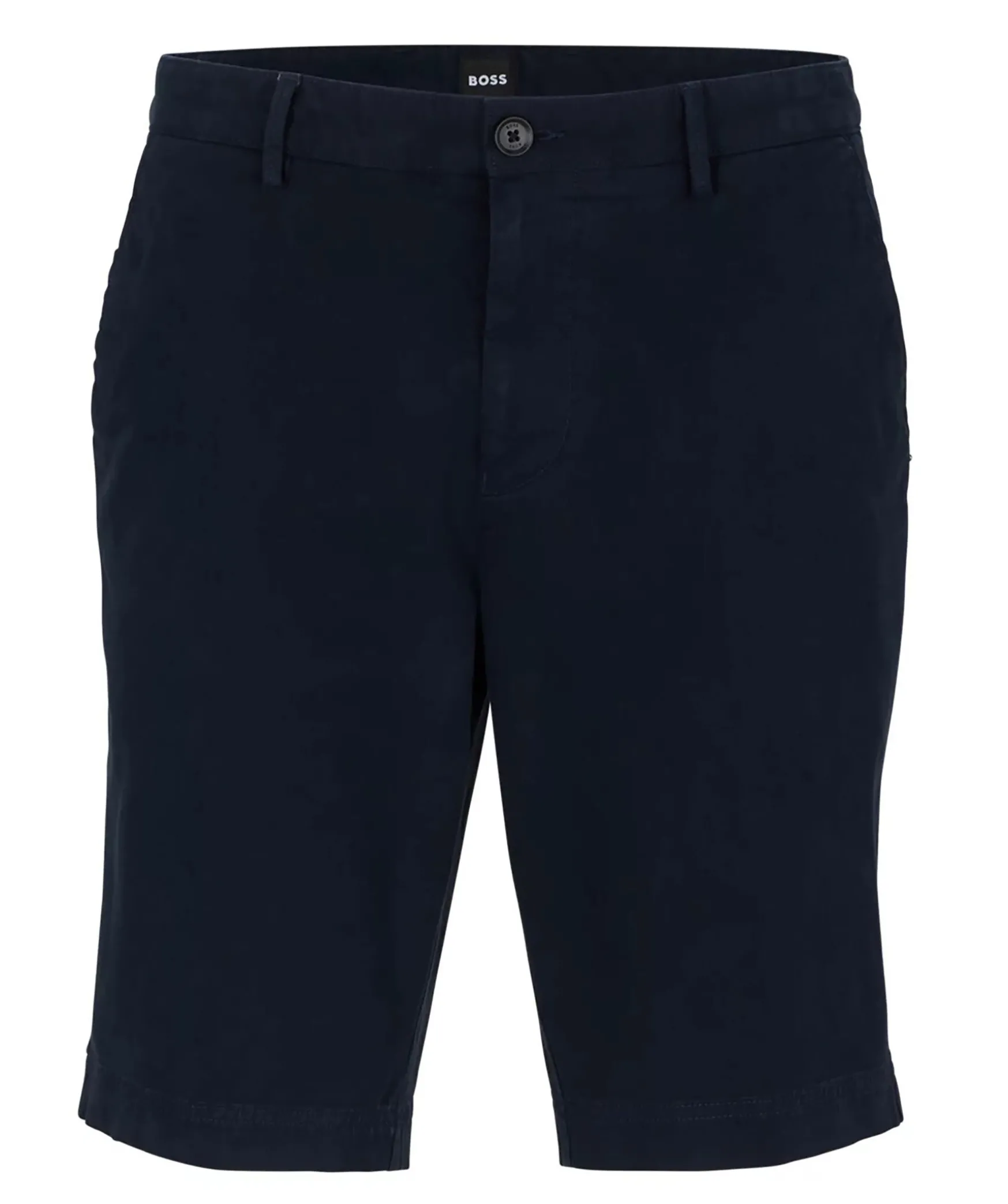 Marinbla Chinosshorts Fran Boss Black. Smal Passform Med En Normal Hog Midja. Tva Fickor Framtilloch Tva Bakfickor Med Knapp.