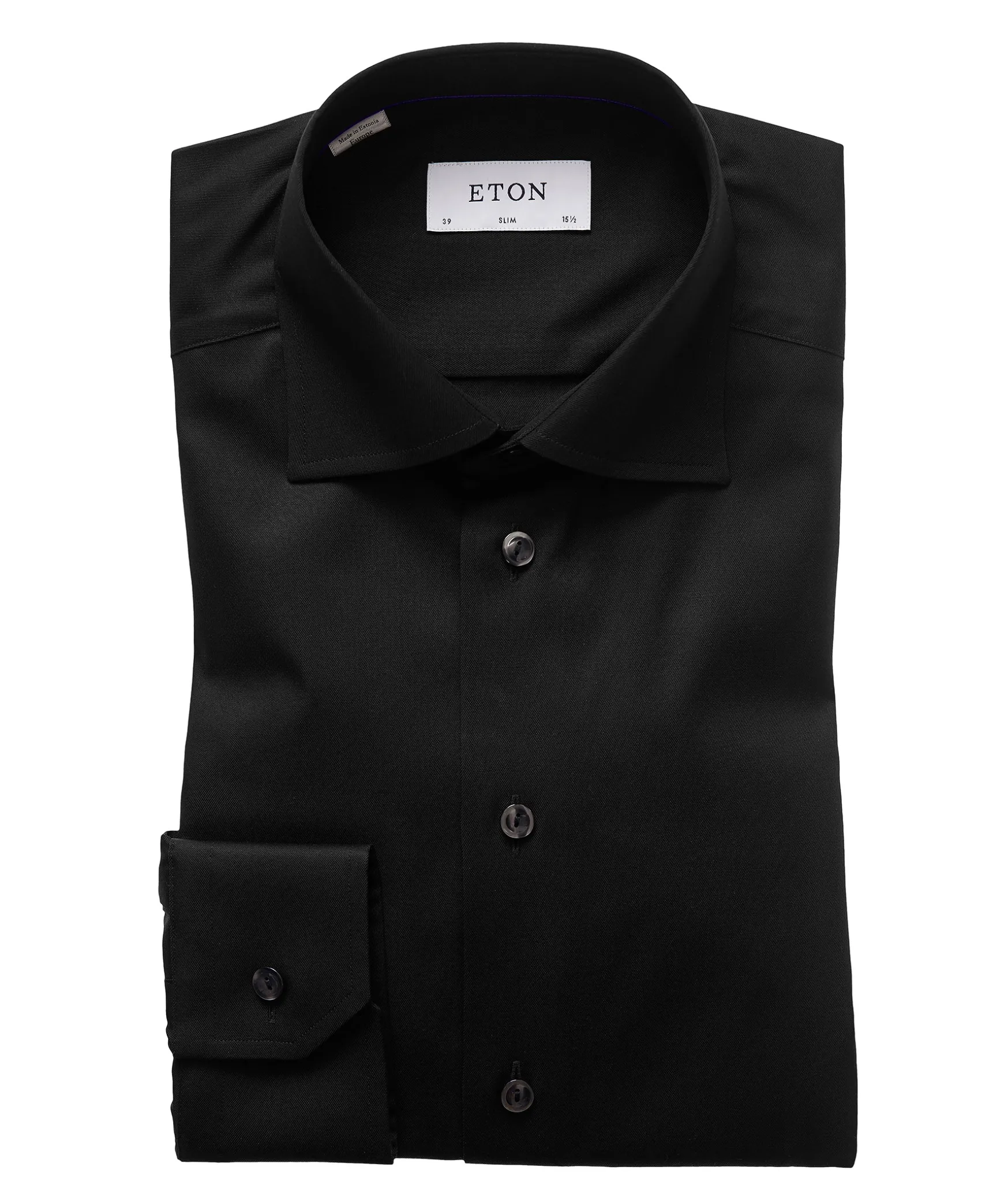 Klassisk, Svart Bomullsskjorta I Smal Passform, Fran Eton.