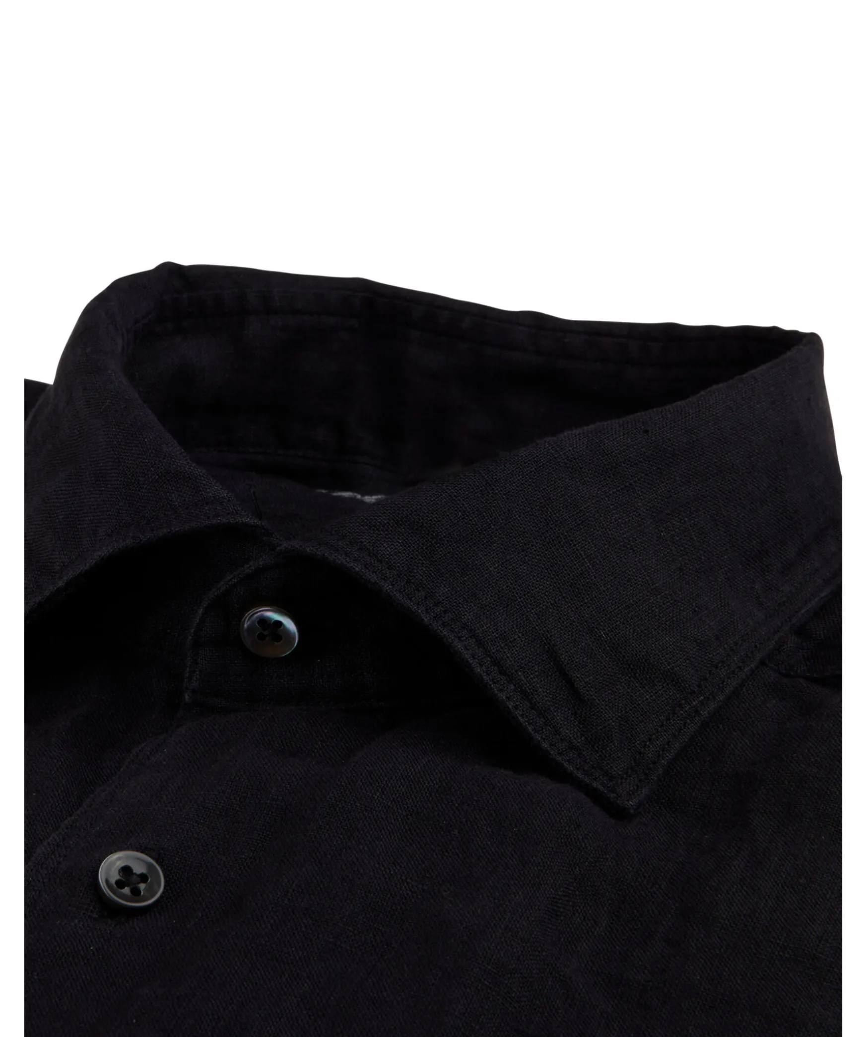Svart Skjorta, I Slimlinemodell Tillverkad Av 100% Linne. Detaljerad Med Parlemorknappar, Har Enkla Manschetter Och En Cutaway Krage.