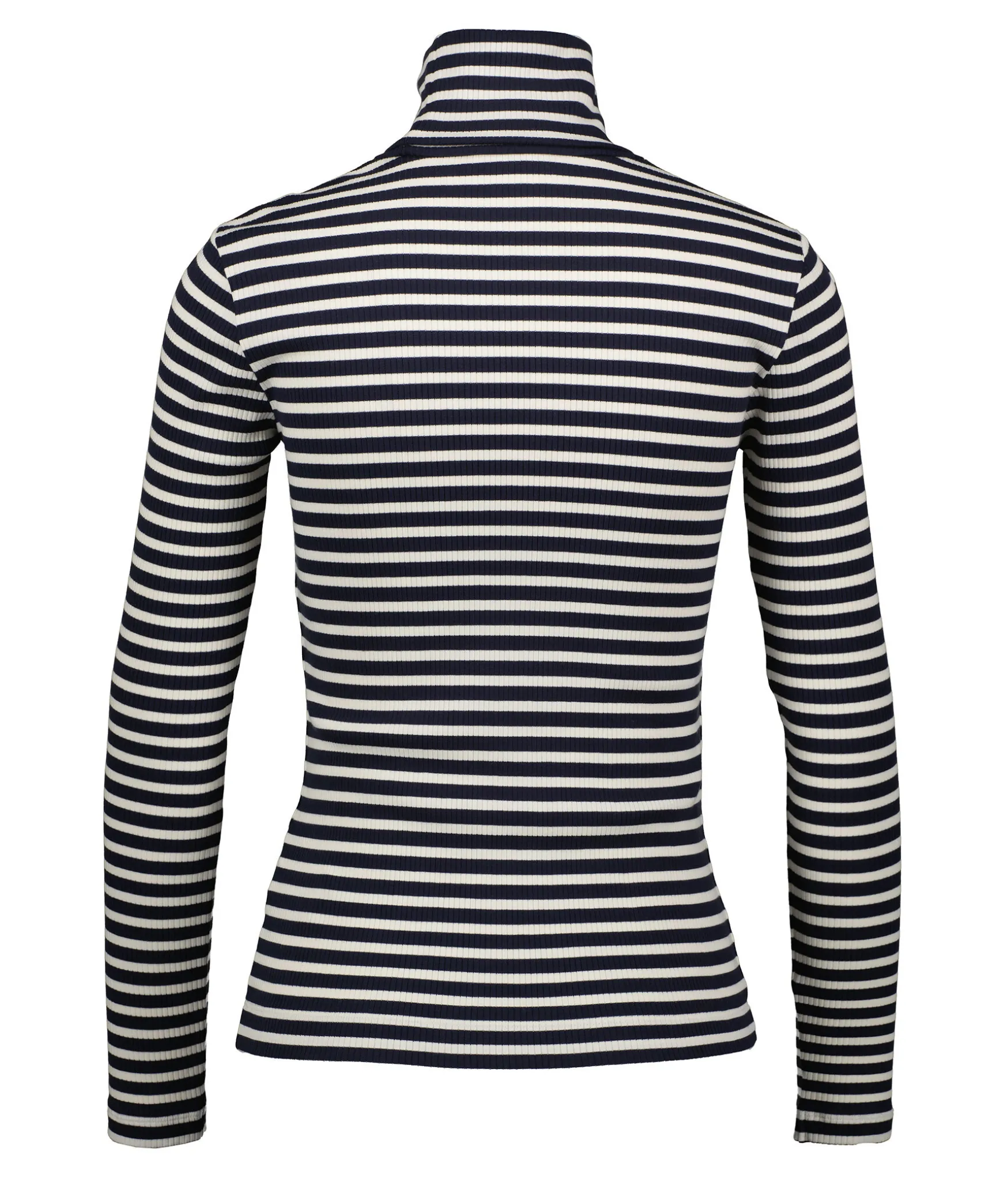 Marinbla Och Vitrandig Polotroja Fran Gant. Kan Baras Separat Eller Anvandas Som Ett Extra Lager Och Snabbt Blir En Garderobsfavorit. Den Ar Framtagen I Ribbstickad Bomulls- Och Modalblandning Med Latt Stretch For Okad Foljsamhet, Och Har En Smal Passform, Langa Armar Och En Gant-Logotyp Broderad Ton I Ton Pa Armen.