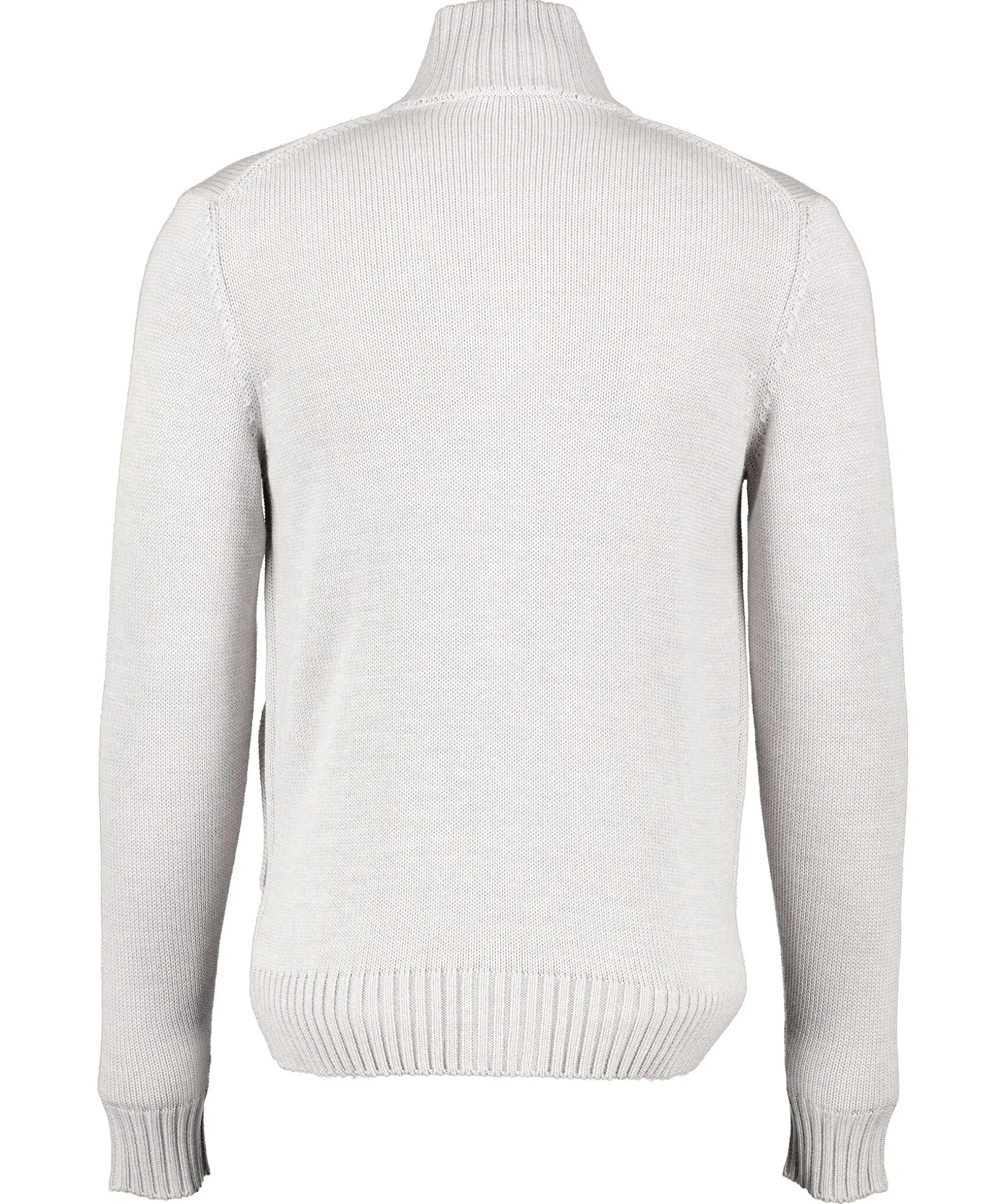Gra Stickad Cardigan Fran Zanone. Stangs Framtill Med Svarta Knappar. Tva Fickor Framtill. Ribbstickad Krage, Muddar Vid Arm- Och Plaggslut. Tillverkad I 100% Virgin Wool.