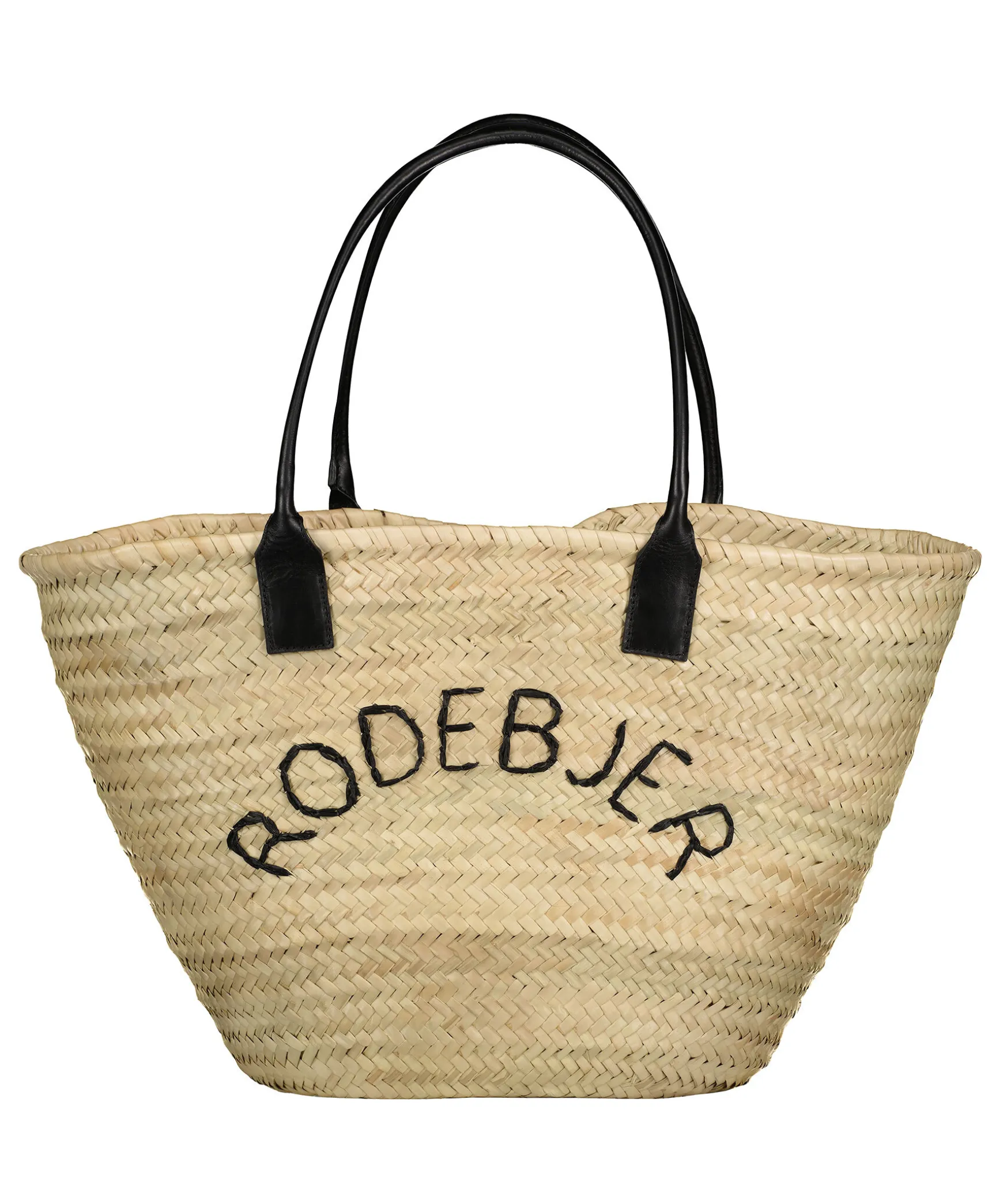 Tote Bag I Stra Material Fran Rodebjer. Laderhandtag I Svart, Handtagets Hojd Ar 16Cm. Broderad Logotyp Pa Vaskans Framsida. Vaskans Matt: B 50Cm H 33Cm D 15Cm.