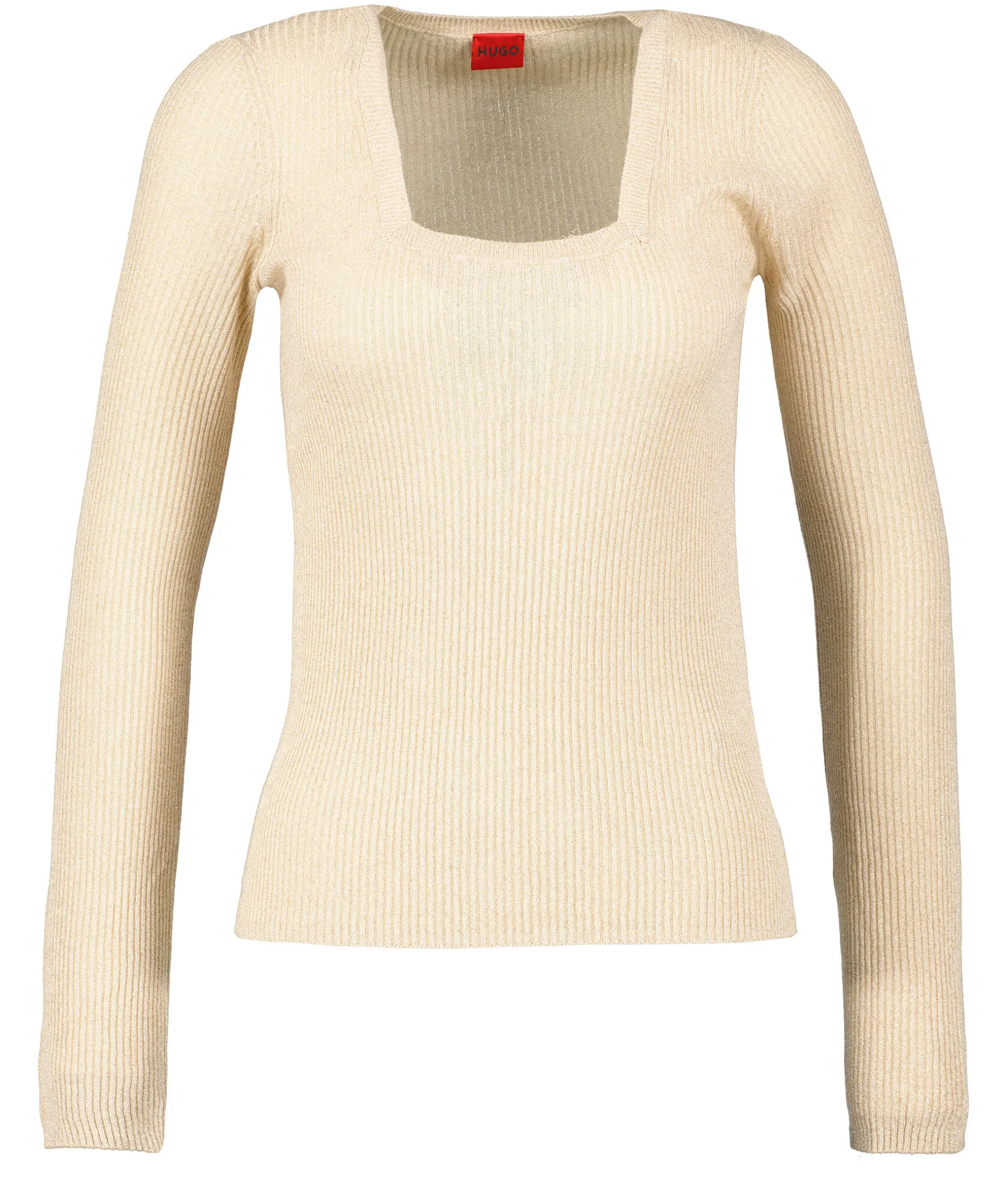 Guldfargad Finstickad Ribbad Troja Fran Hugo. Fyrkantig Halsringning. Tillverkad I Viskos Blandning.