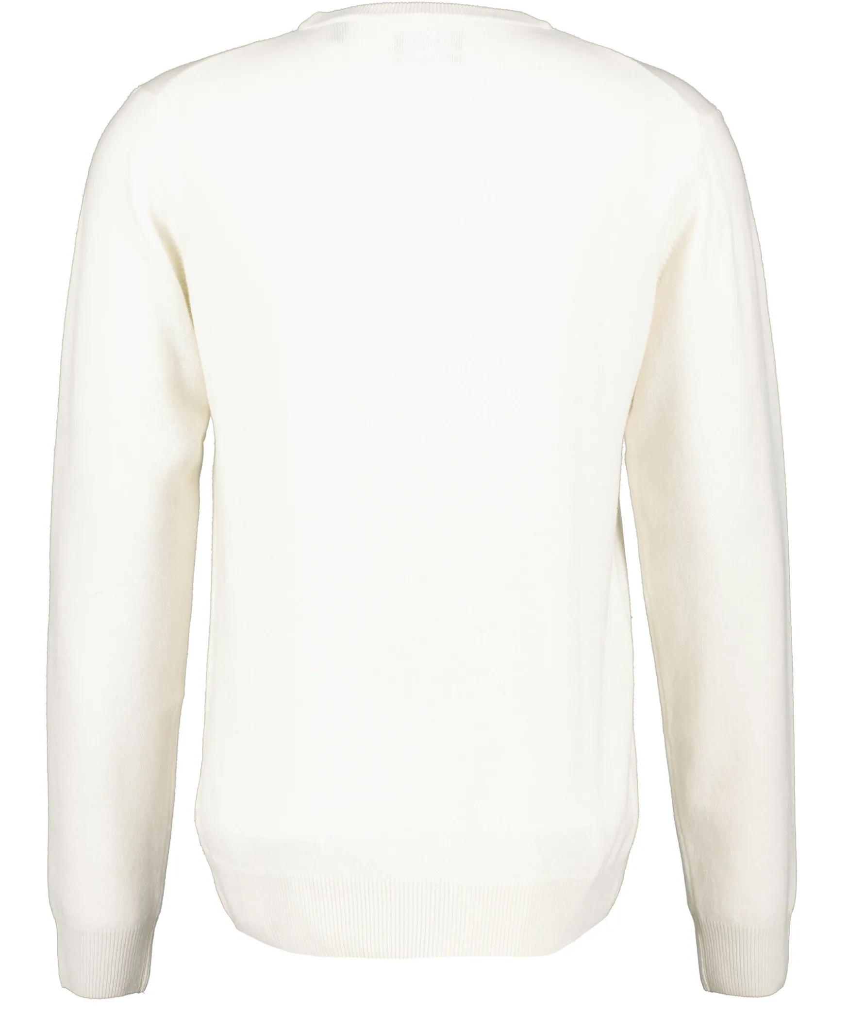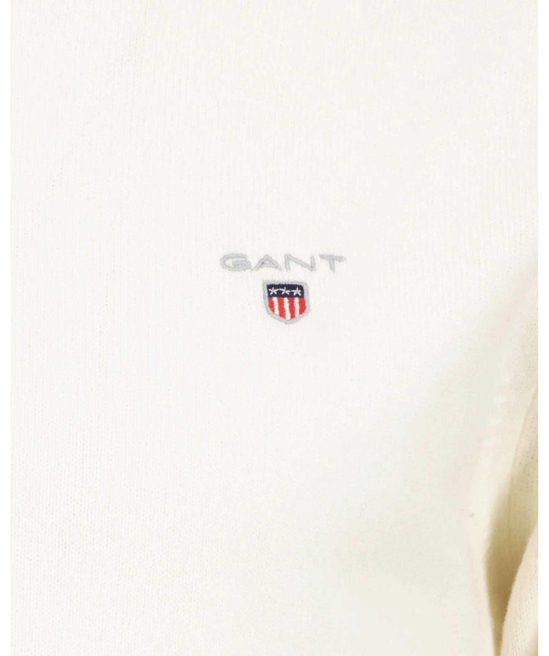 Vit Finstickad Ulltroja Fran Gant. Trojan Ar Gjord I Fint Lammull. Broderad Logotyp Med Skold Pa Brostet. Ribbstickade Muddar.