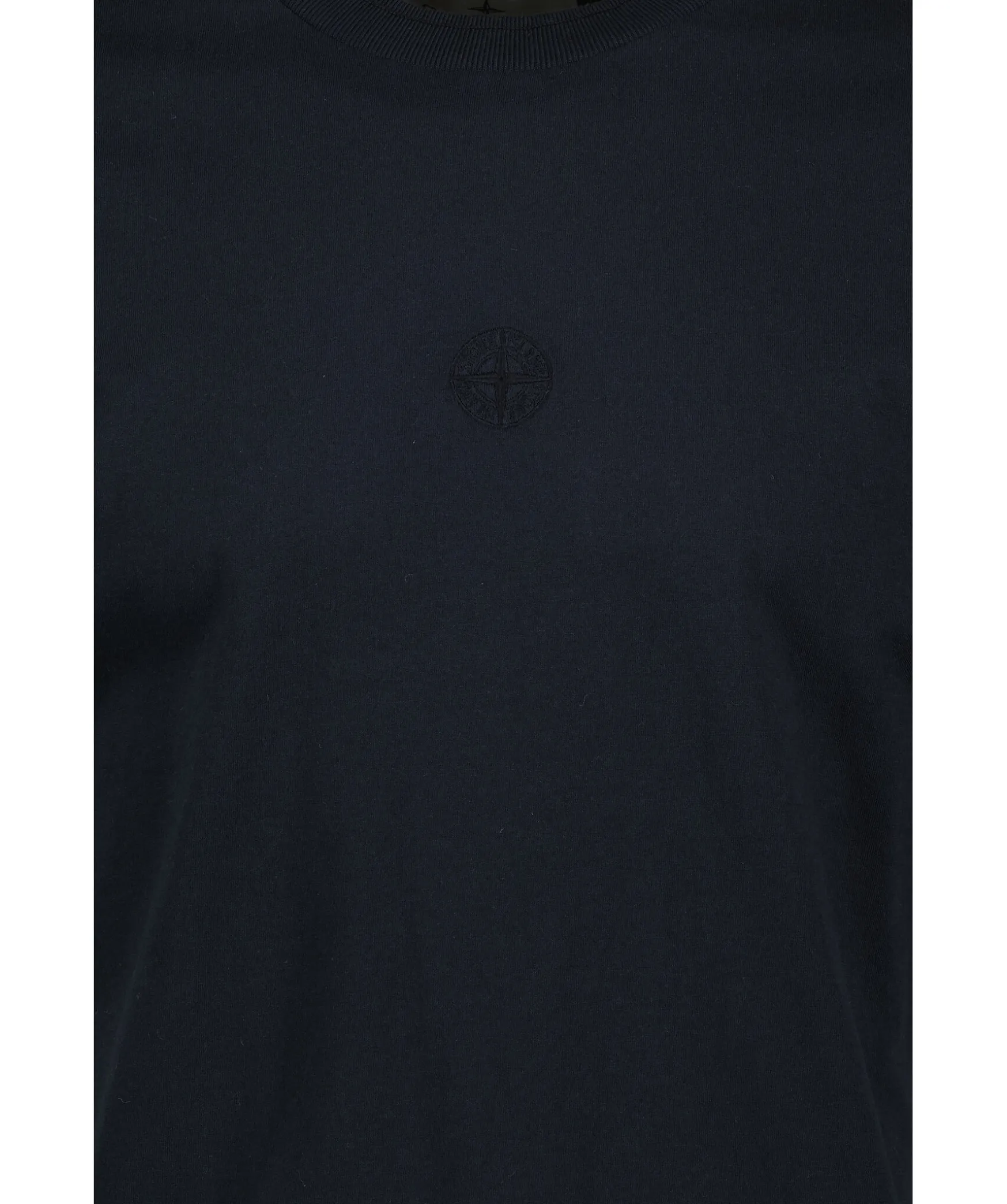 Morkbla T-Shirt Fran Stone Island. Rundad Halsringning Med Ribbstickad Mudd. Broderad Logotyp Mitt Pa Brostet. Tillverkad I 100% Bomull.