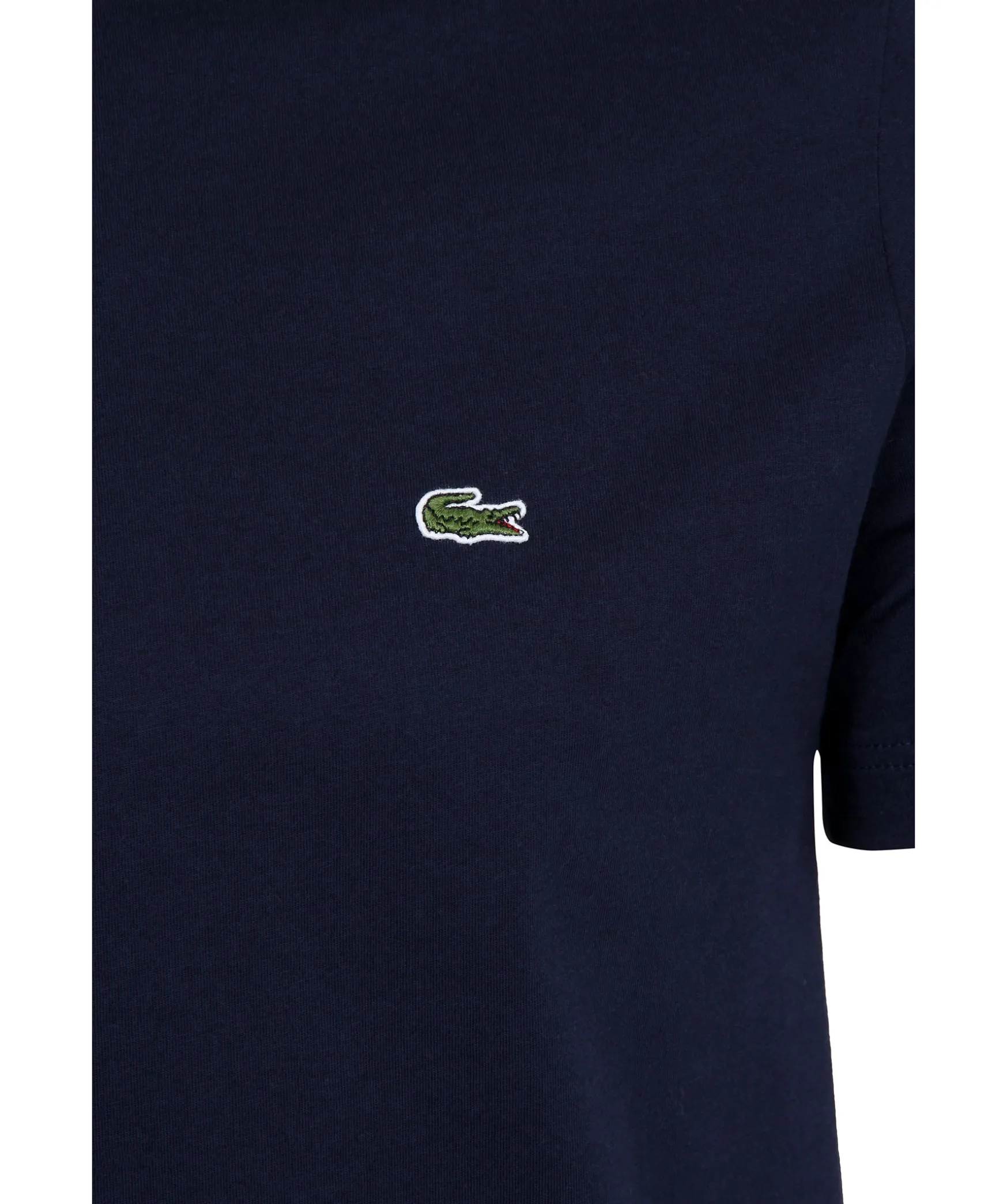 Marinbla T-Shirt Fran Lacoste Med Broderad Krokodil Pa Brostet. Rundad Halsringning Med Ribbstickad Mudd. Tillverkad I 100% Bomull.