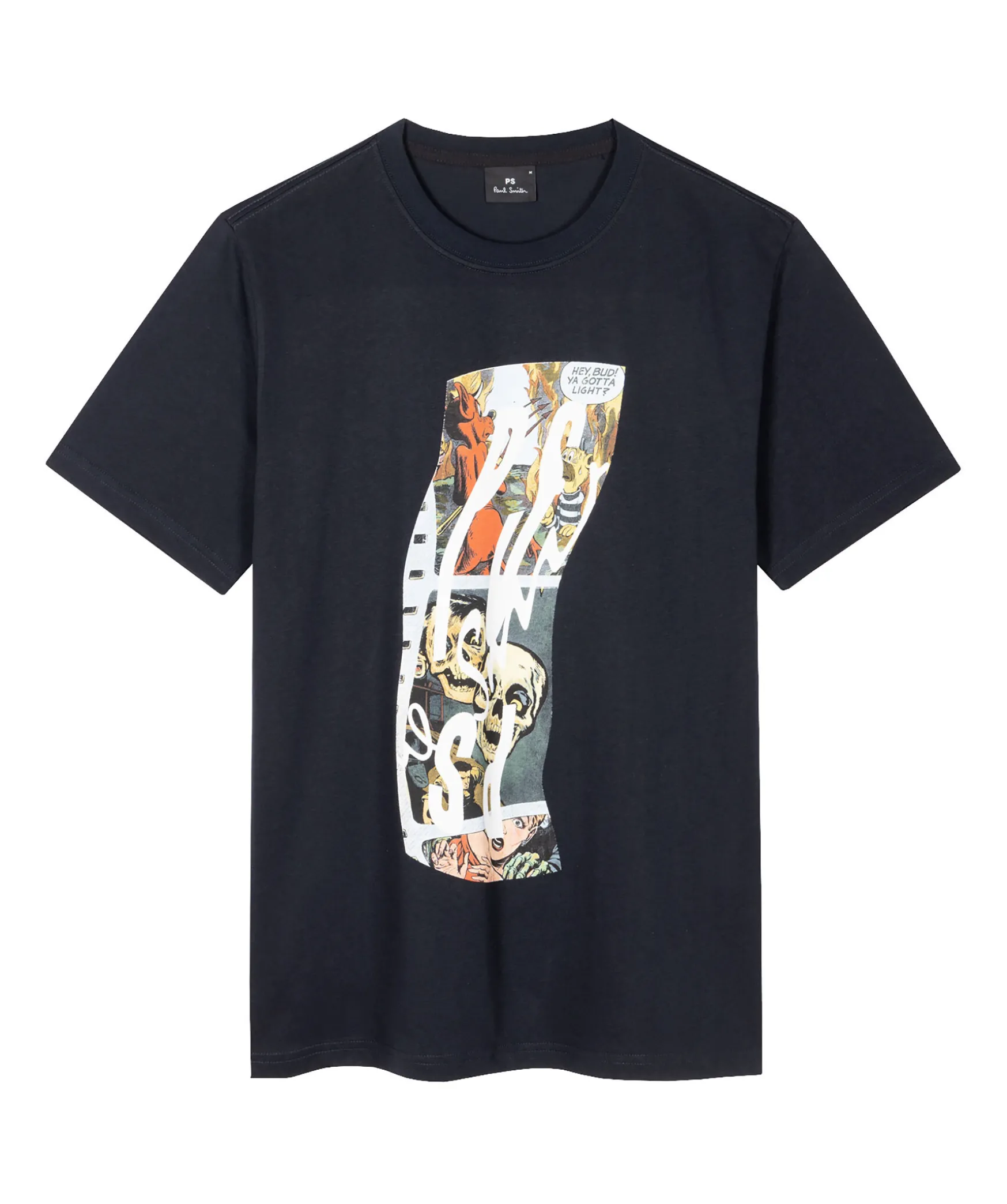 Morkbla T-Shirt Fran Ps Paul Smith. Tillverkad Av 100% Mjuk Organisk Bomull. T-Shirten Med Rund Hals Har Ett Lekfullt ”Comic Strip”-Monster Pa Framsidan. Komplett Med Deras Signatur, Ps Av Paul Smith-Logotyp Inkorporerad I Grafiken, Ar Denna T-Shirt Den Perfekta Pjasen For Att Lyfta En Avslappnad Outfit.