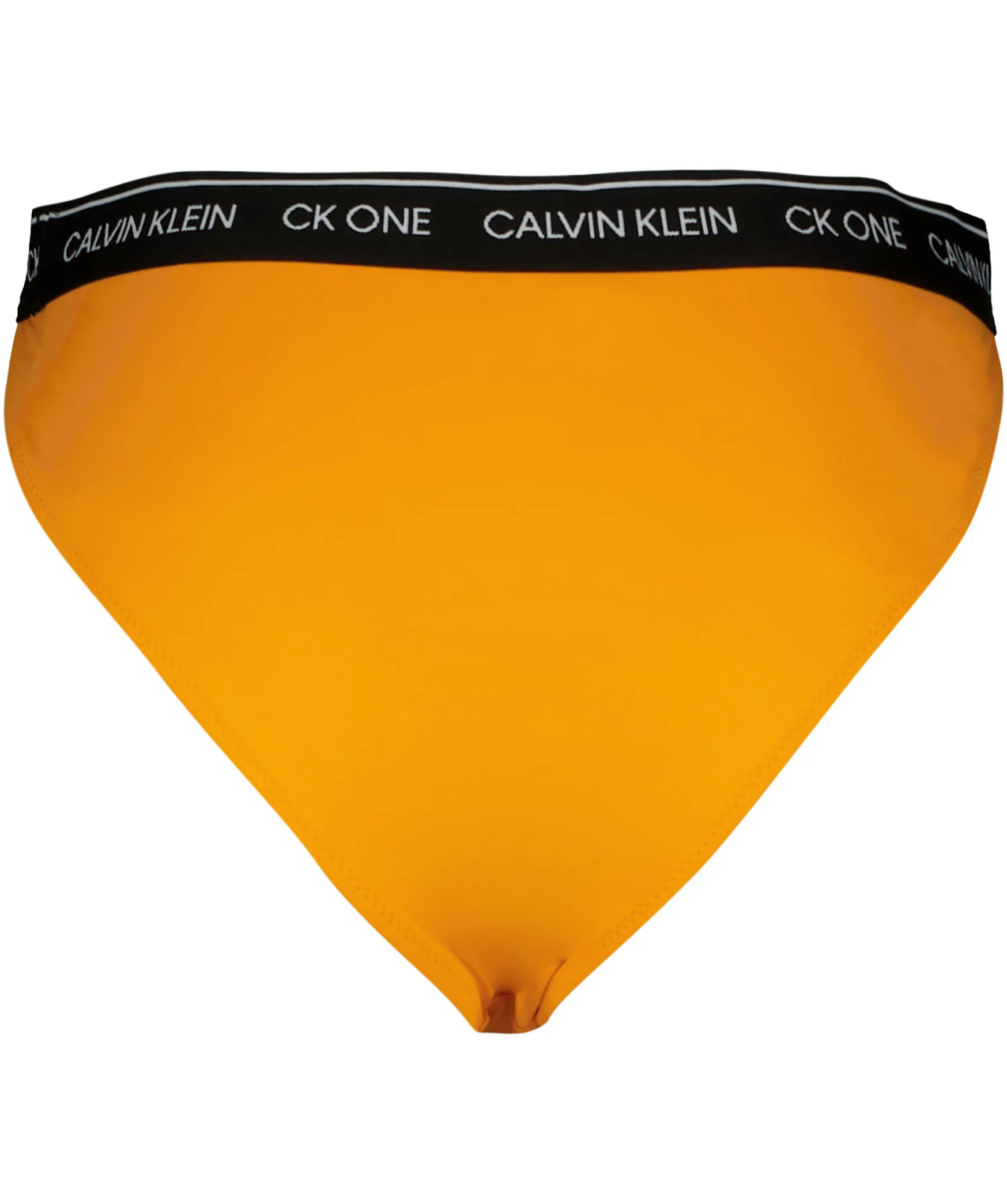 Orange Bikinitrosor I Tanga Modell Fran Calvin Klein. Svart Stretchigt Elastiskt Band Med Logotyper Runt Midjan. Gjorda I En Blandning Av Polyamid Och Elastan.