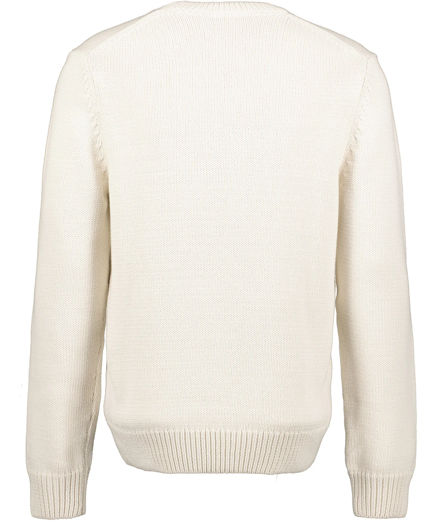 Benvit Stockad Troja Fran Lacoste. Stickad Och Broderad Logotyp Over Brostet. Ribbstickad Mudd Vid. Halsringning, Arm- Och Plaggslut. Tillverkad I Bomullsblandning.