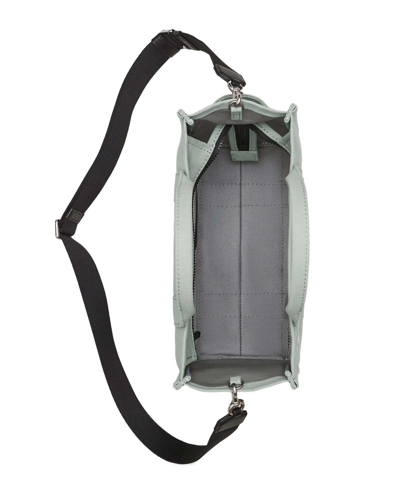 Gra, Medelstor Canvas-Tote Fran Marc Jacobs. Vit Tryckt Logotyp Fram Och Liten Patch Med Logotyp Pa Baksidan. Stangs Med Blixtlas Och Har En Innerficka Med Blixtlas. Matt: 25 Cm Hog, 14 Cm Djup, 33 Cm Bred. Handtaget Ar 12 Cm Hogt.