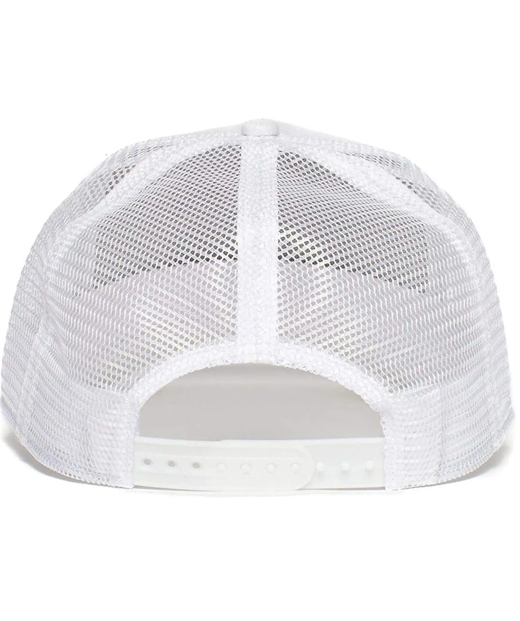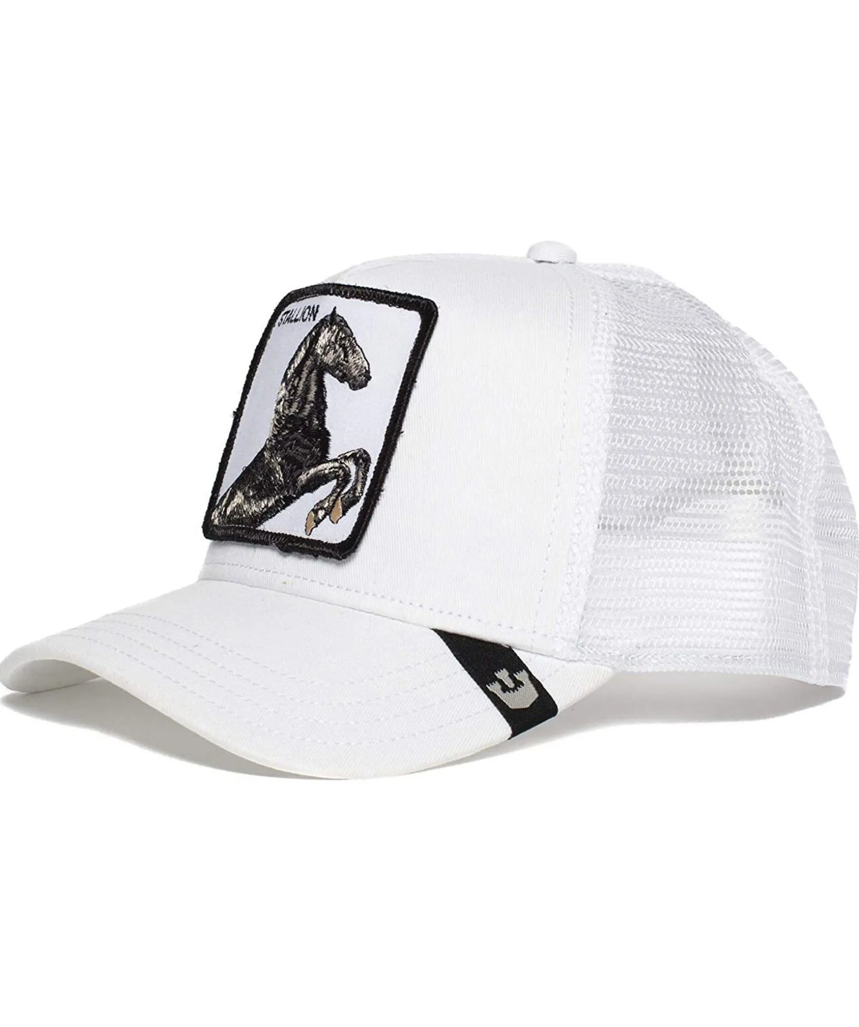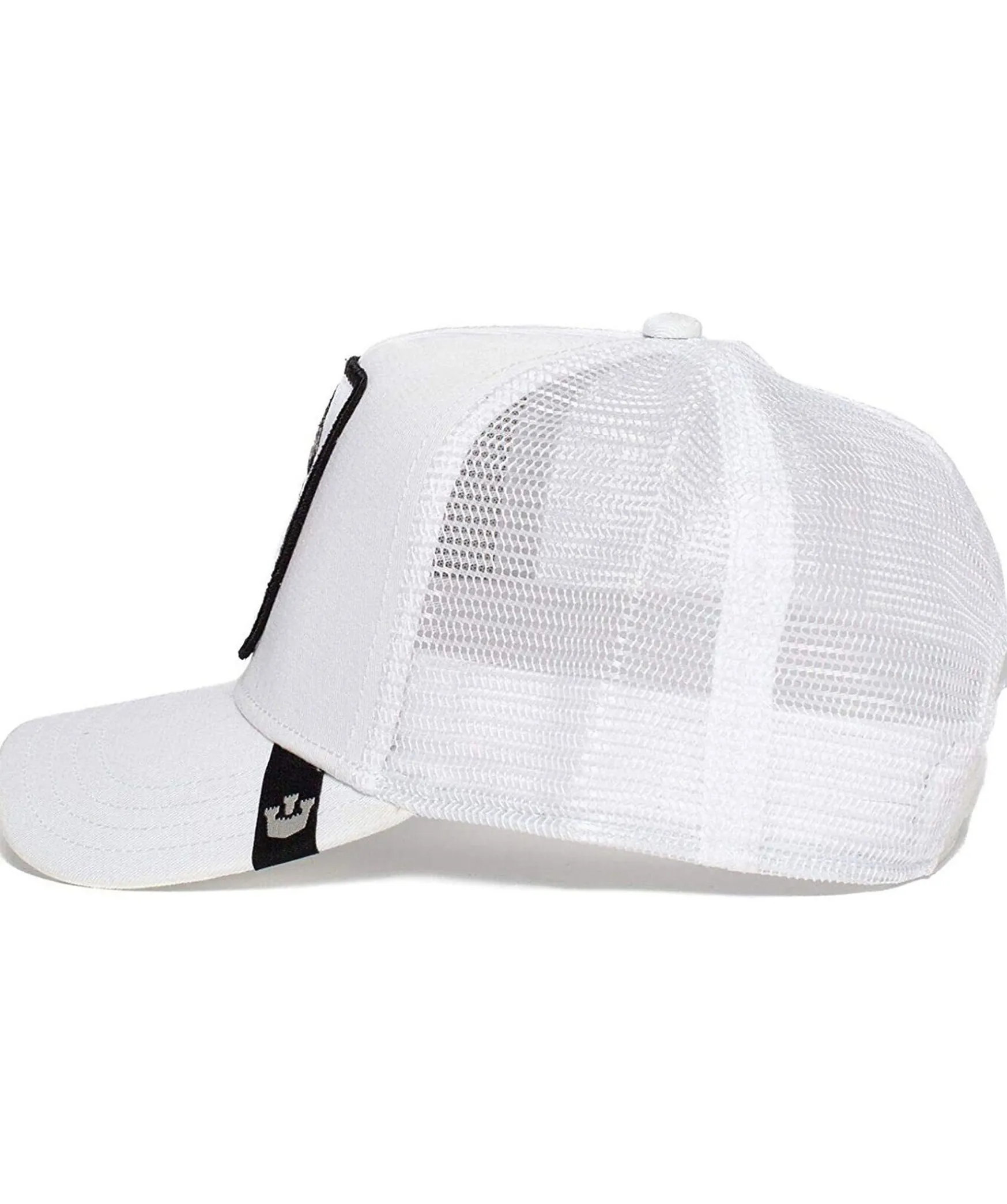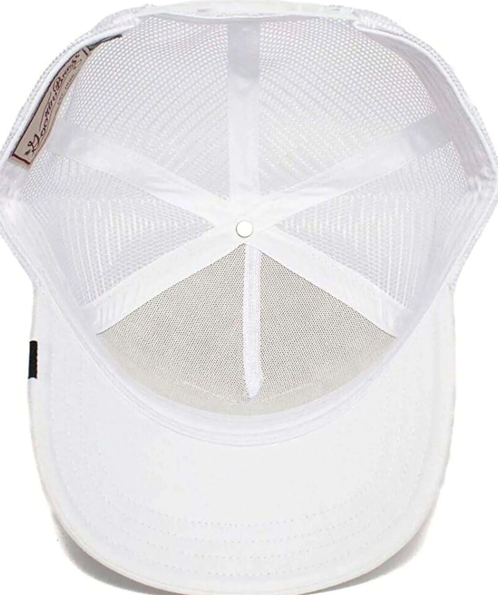 Vit Keps I Trucker-Basebollmodell Med Fyrkantig Patch Med En Hast Framtill Fran Goorin Bros. Onesize Storlek Med Ett Justerbart 4-Snap-In-Rem, Vilket Betyder Att Storleksintervallet Ar 55 Cm-61 Cm Med 58 Cm I Mitten. Ett Bomullssvettband Finns Fastsytt Pa Insidan. Tillverkad I Polyester Bak Och Polyuretan Pa Framsidan.