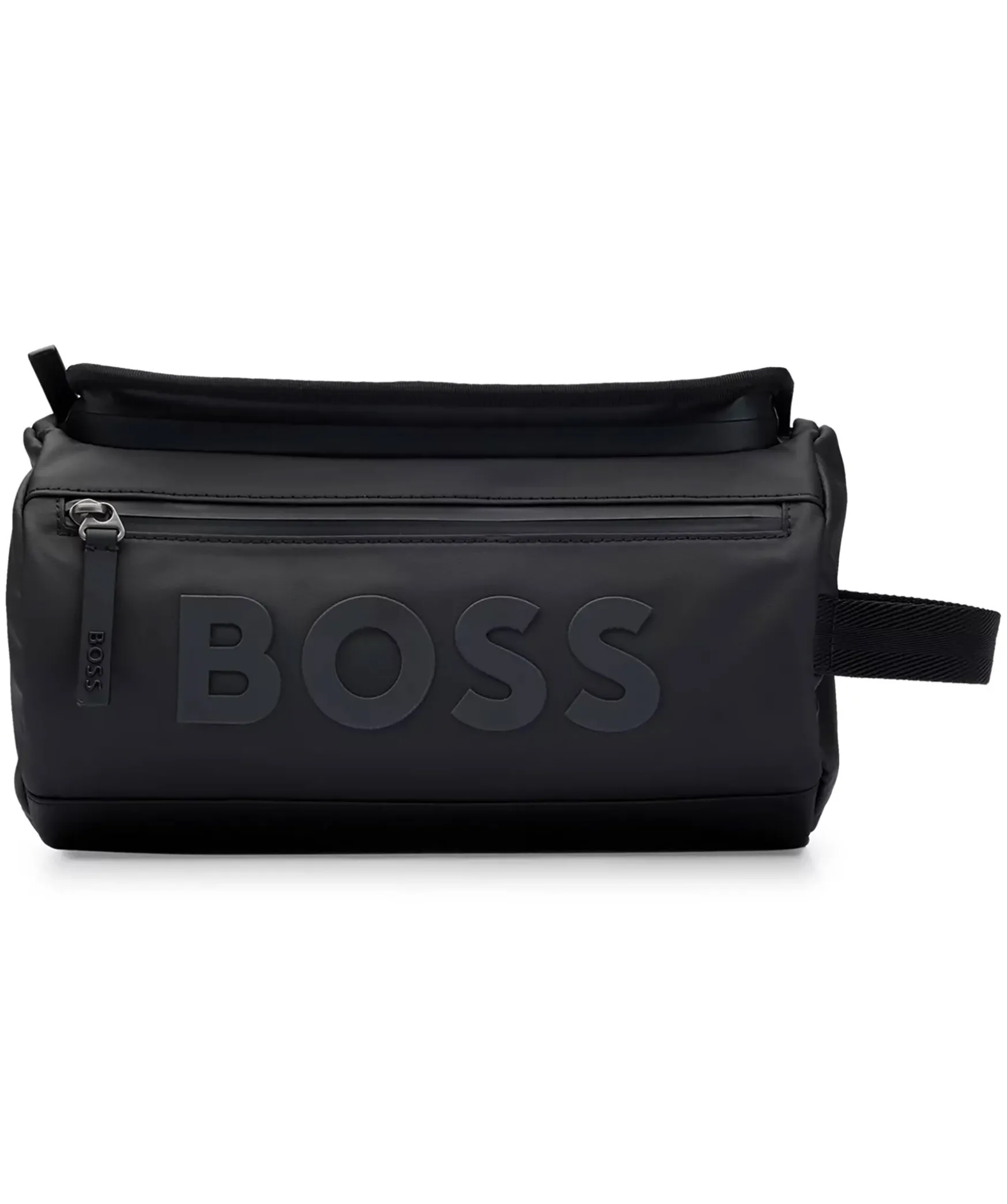 Svart Necessar Fran Boss Black. Huvudfacket Stangs Med Dragkedja, Ytterfack Som Stangs Med Dragkedja. Gummerad Logotyp Pa Necessarens Framsida. Ogla Pa Vanster Kortsida. Necessarens Matt: 27 X 15 X 15 Cm