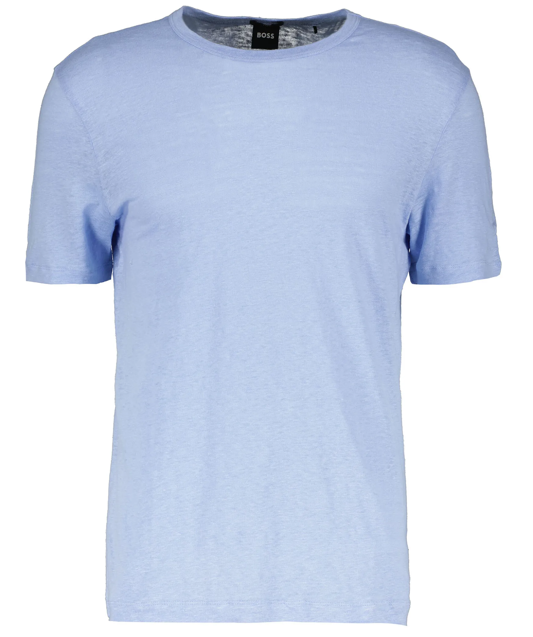 Ljusbla Melerad T-Shirt Fran Boss Black. Tillverkad I 100% Linne. Rundad Halsring. Normal Passform.